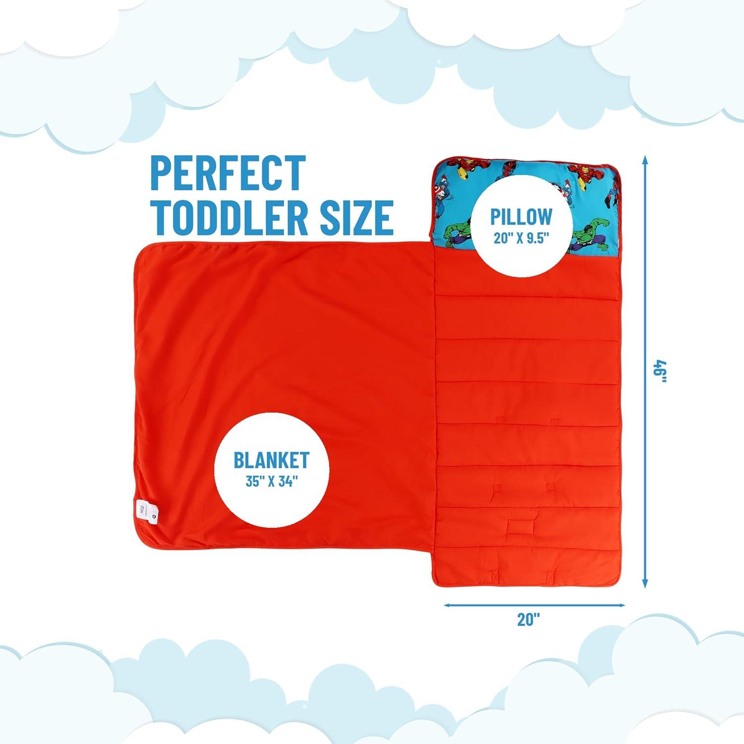 Jay Franco Kids Nap Mat with Embedded Pillow & Blanket – Soft 46″x20″ Microfiber Sleeping Bag with Name Tag & Handle for School, Travel, Sleepover, Blue – Marvel Comics(Blue – Marvel Comics)