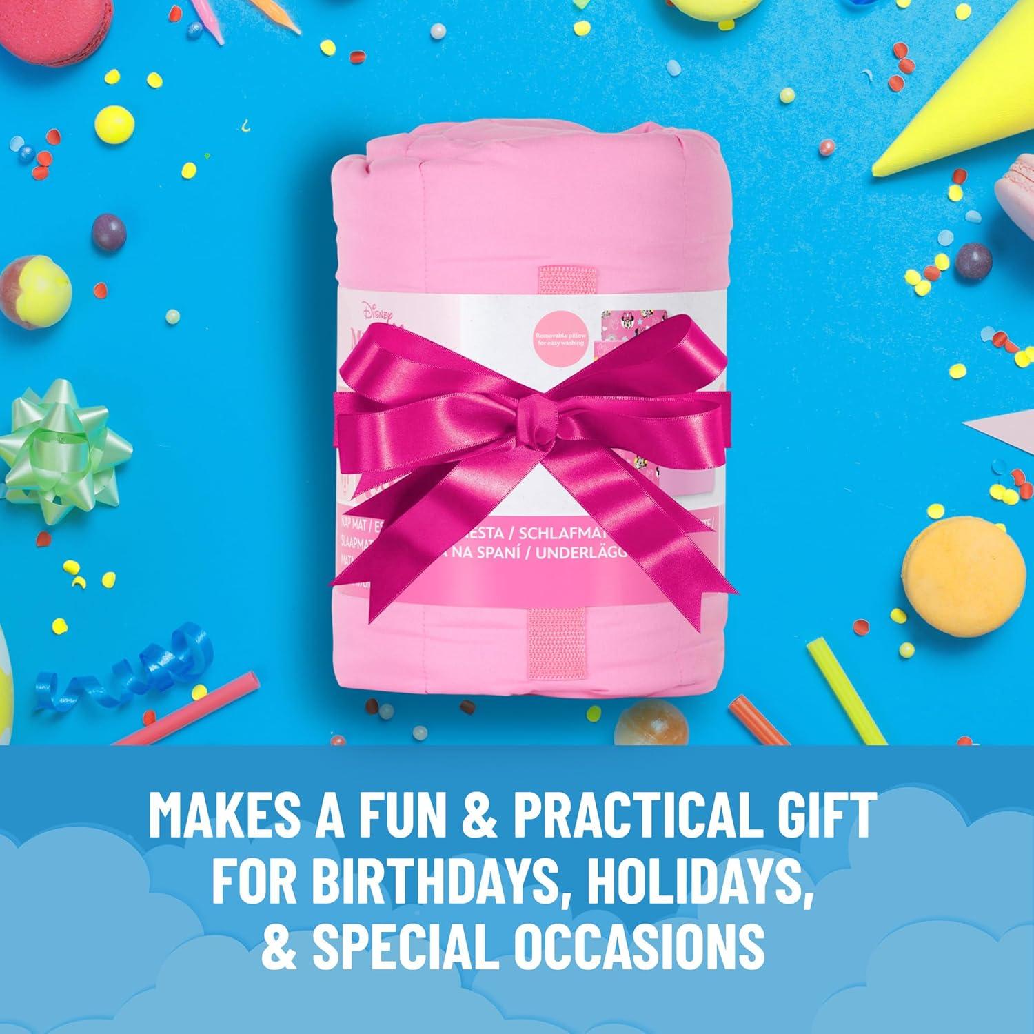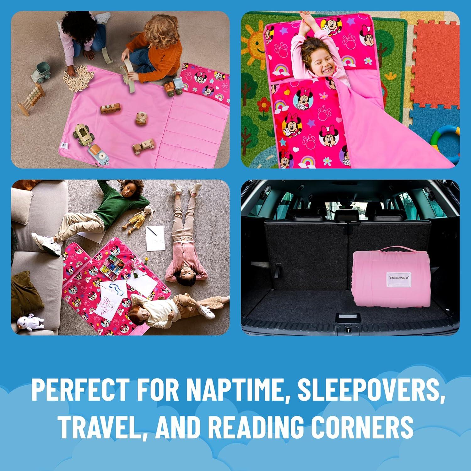 Jay Franco Kids Nap Mat with Embedded Pillow & Blanket – Soft 46″x20″ Microfiber Sleeping Bag with Name Tag & Handle for School, Travel, Sleepover, Blue – Marvel Comics(Pink – Minnie Mouse)