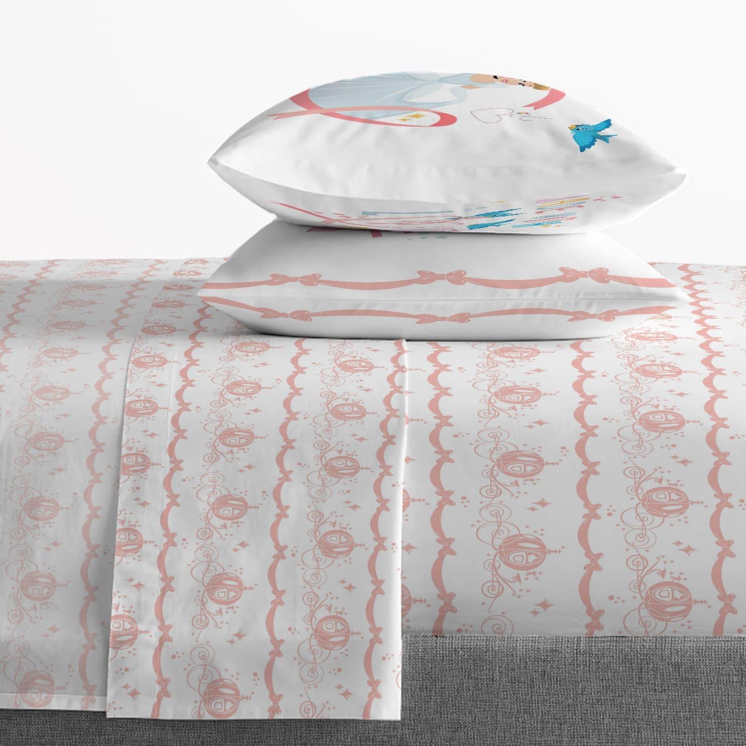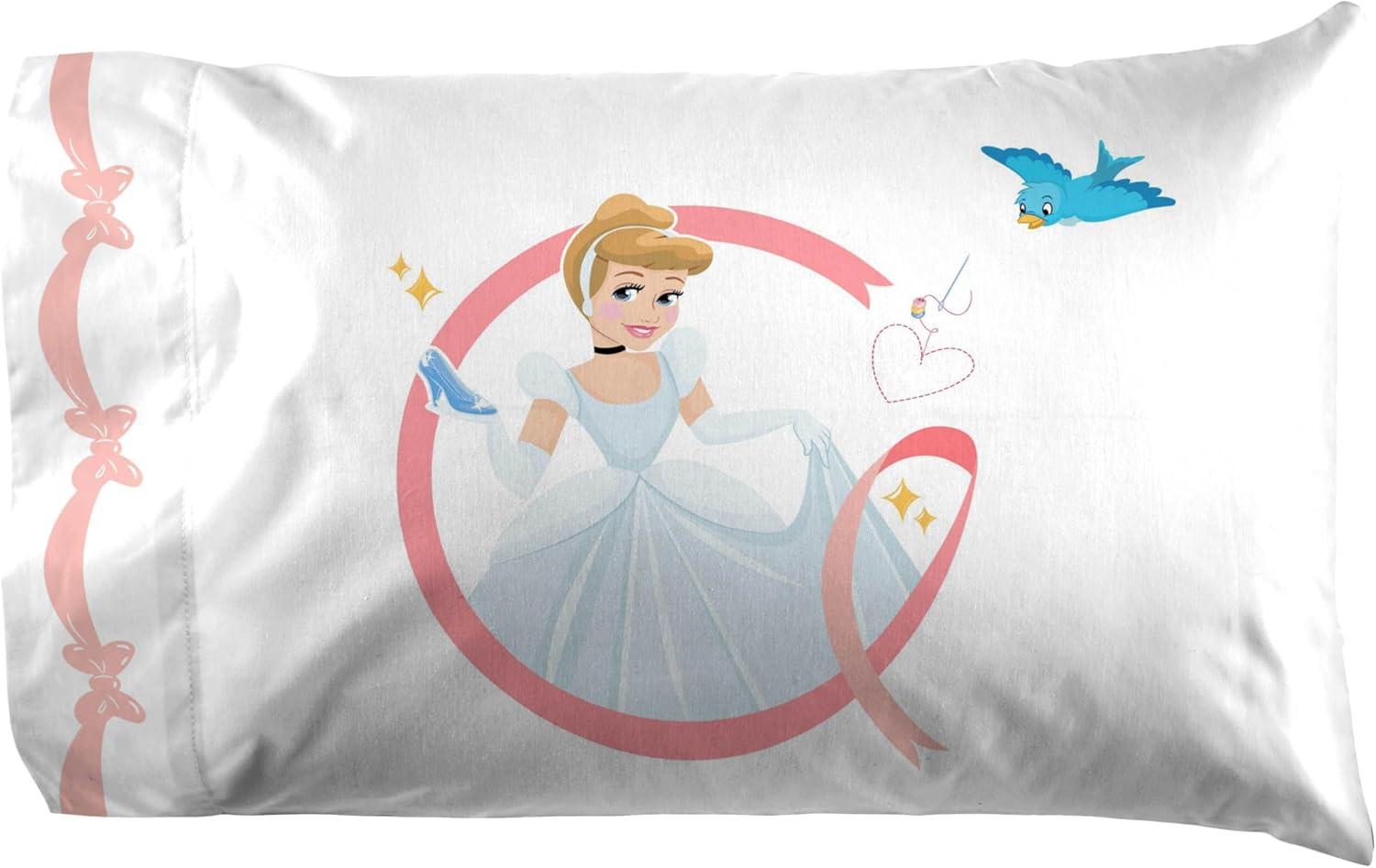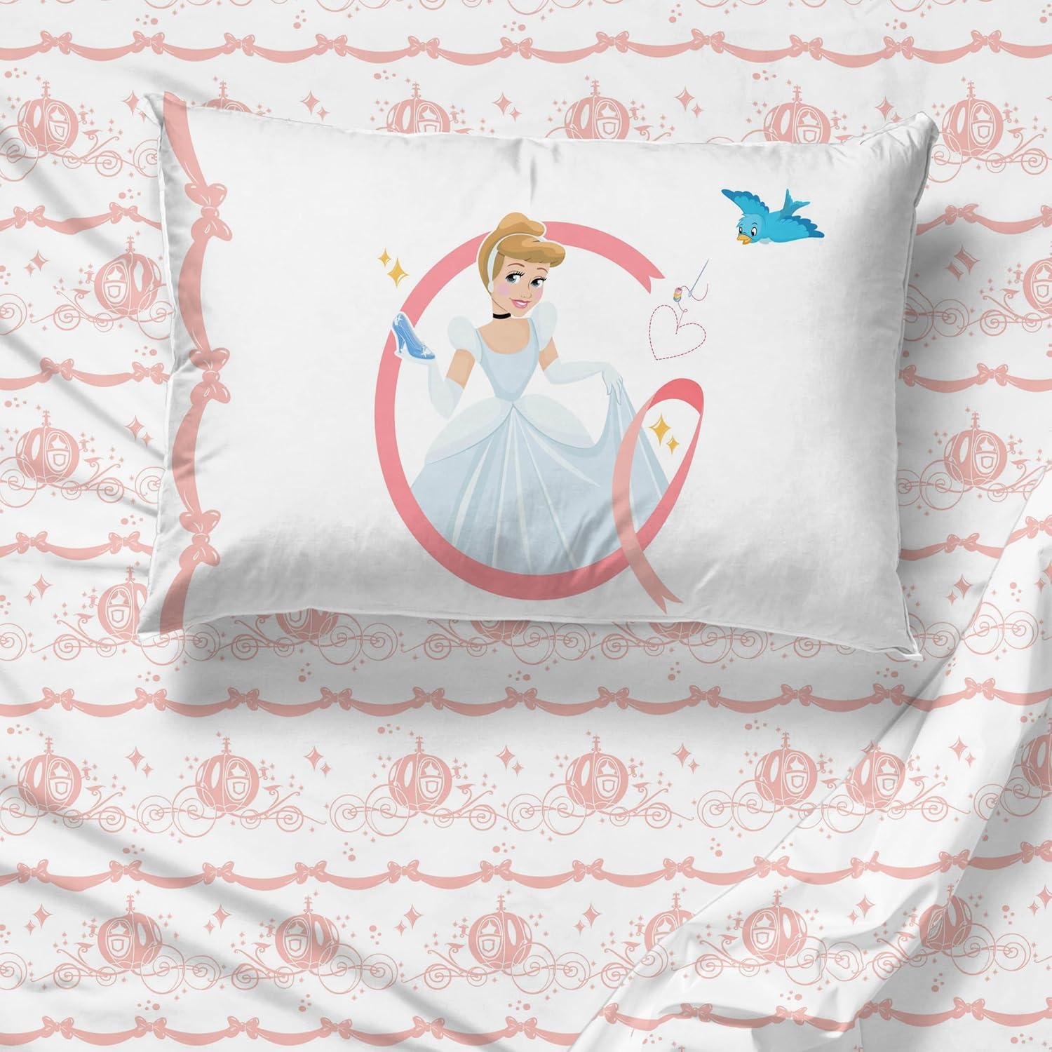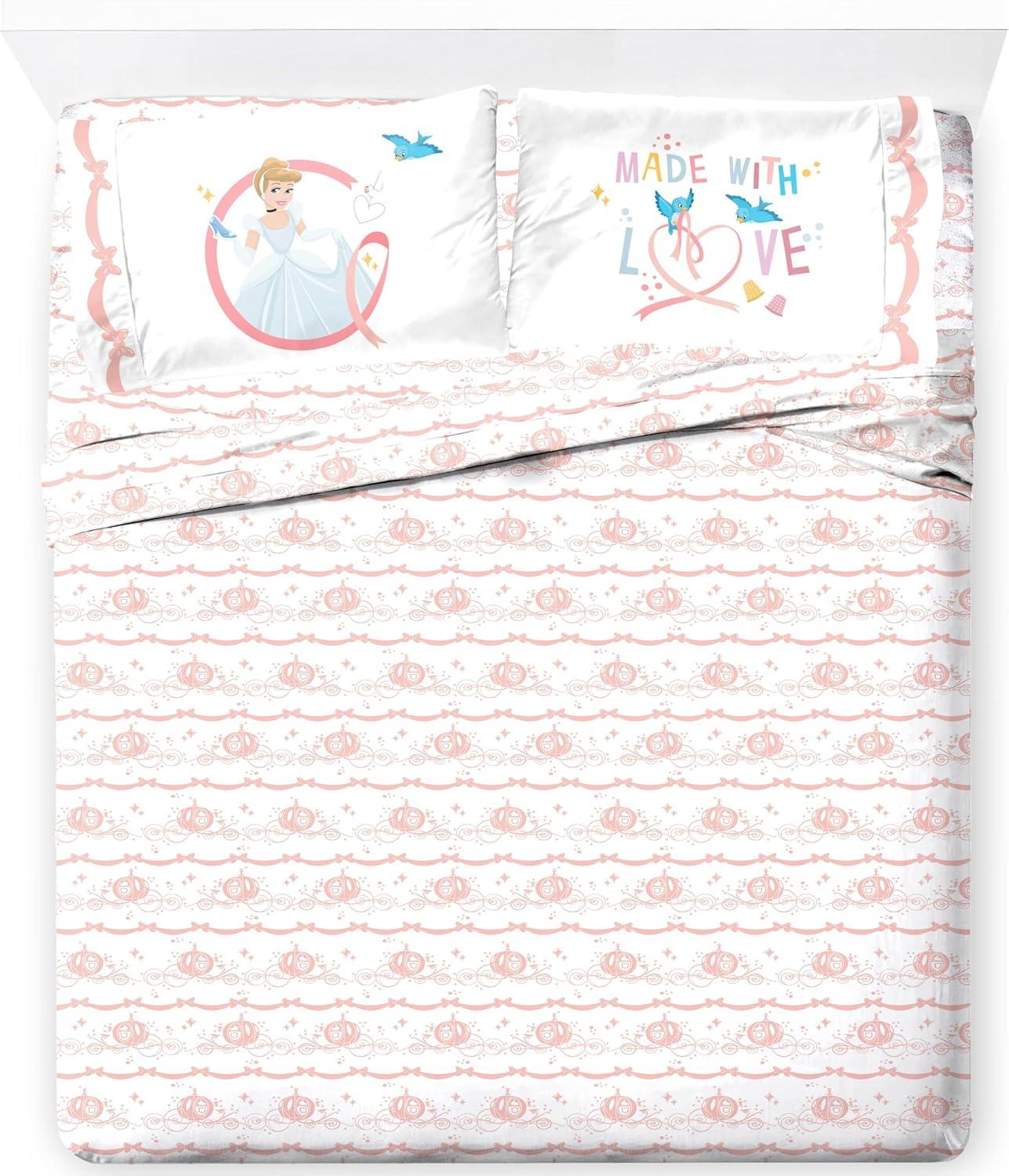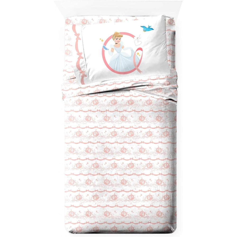 Jay Franco Kids Sheet Set with Fitted, Flat Sheets & Pillow Cover – Ultra-Soft Bedding with Pillowcase for Room Decor, White – Avengers, 4 Piece Queen(White – Princess Cinderella)