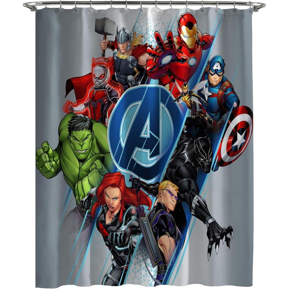 Jay Franco Marvel Avengers Assembled Shower Curtain & Easy Care Fabric Kids Bath Curtain (Official Marvel Product)(Gray – Avengers)