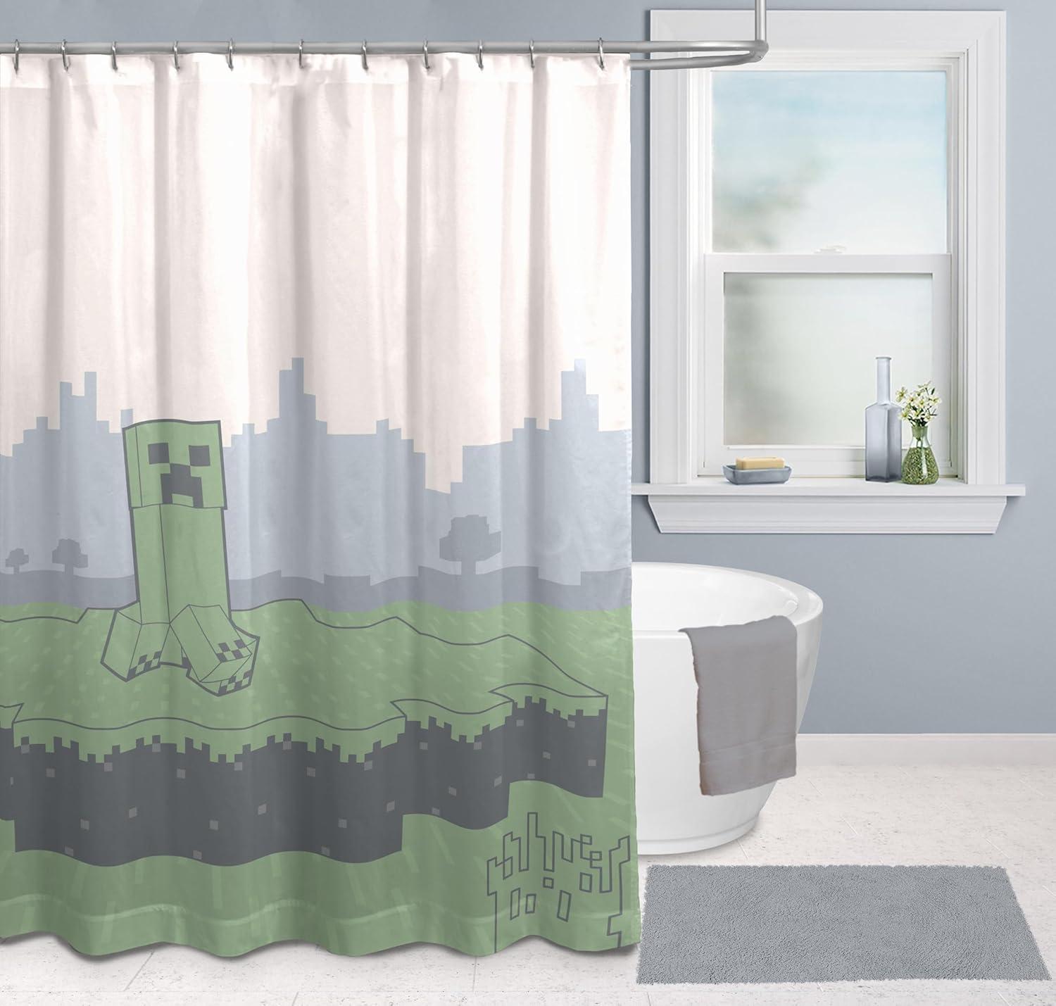 Jay Franco Marvel Avengers Assembled Shower Curtain & Easy Care Fabric Kids Bath Curtain (Official Marvel Product)(Multi - Minecraft)