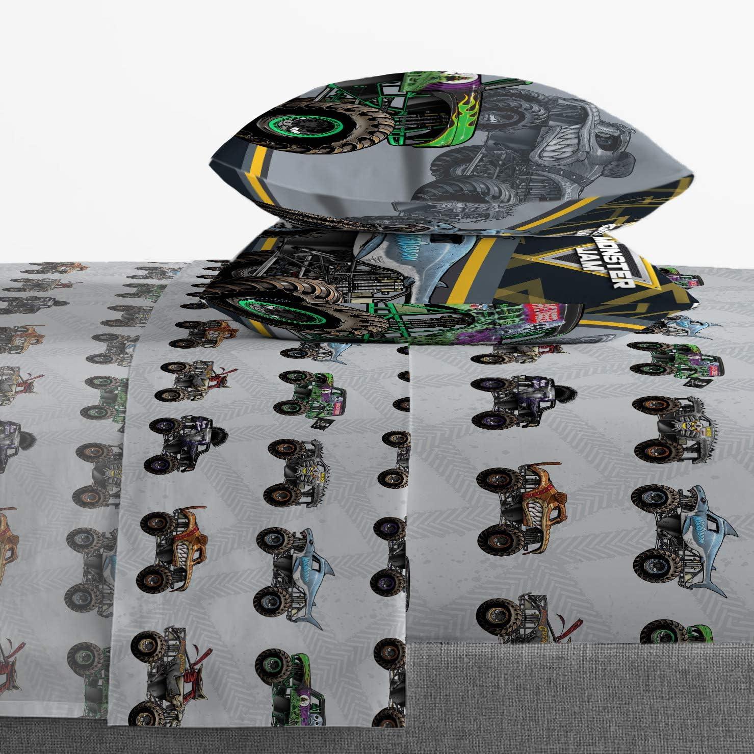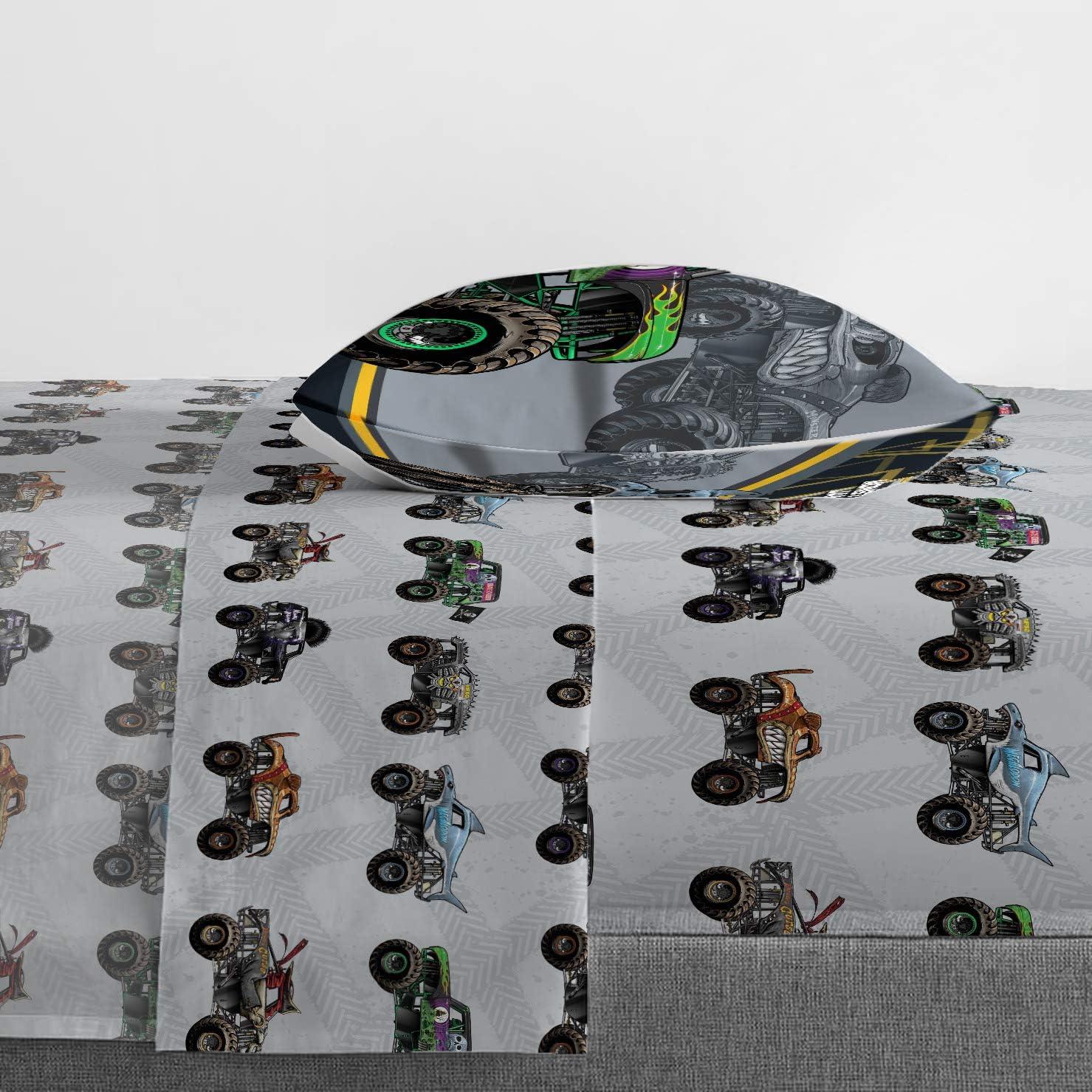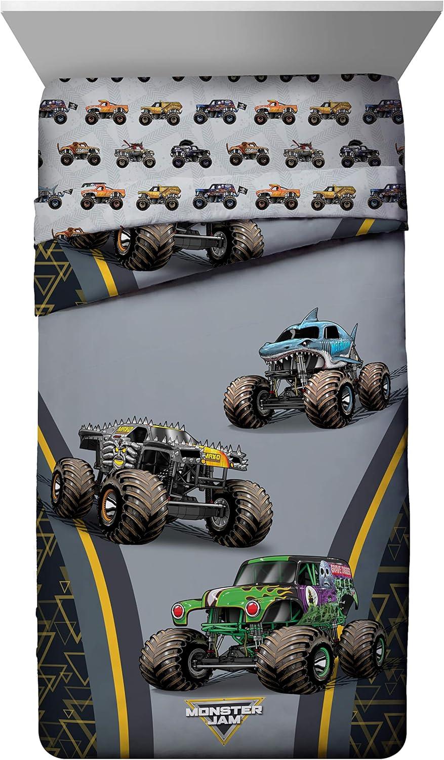 Jay Franco Marvel Avengers Fighting Team 5 Piece Queen Bed Set - Includes Reversible Comforter & Sheet Set Bedding - Super Soft Fade Resistant Microfiber (Official Marvel Product)(Gray - Monster Jam)