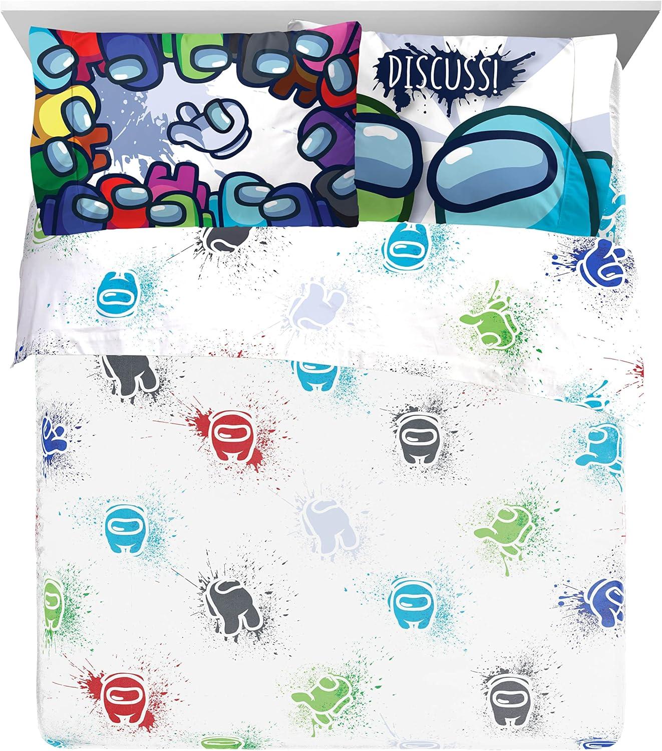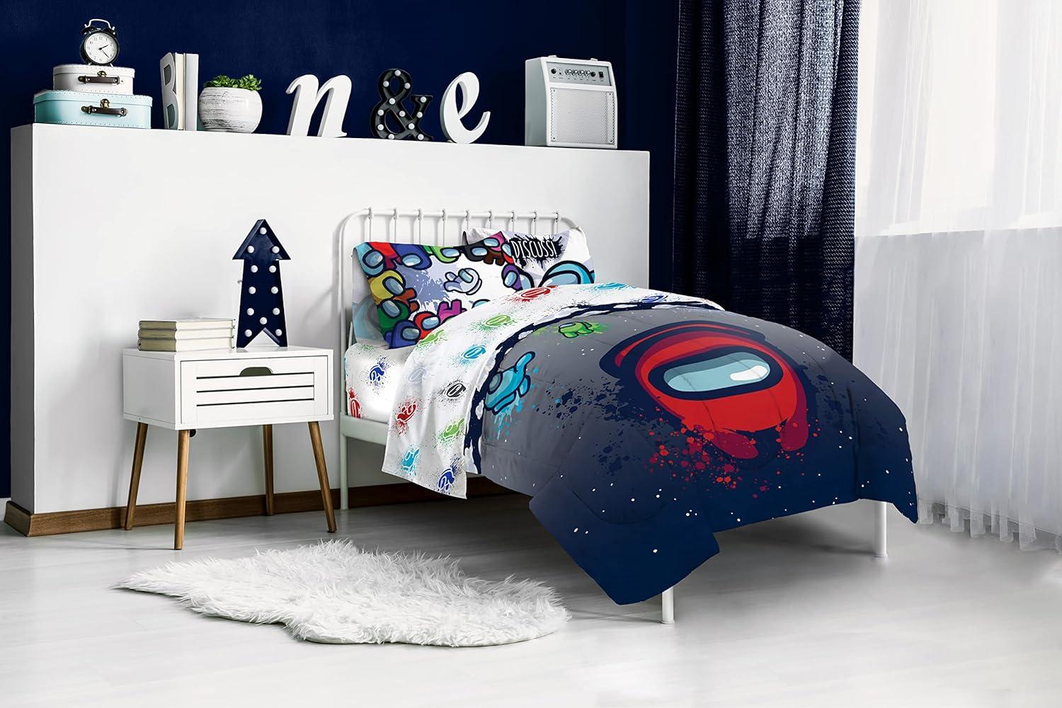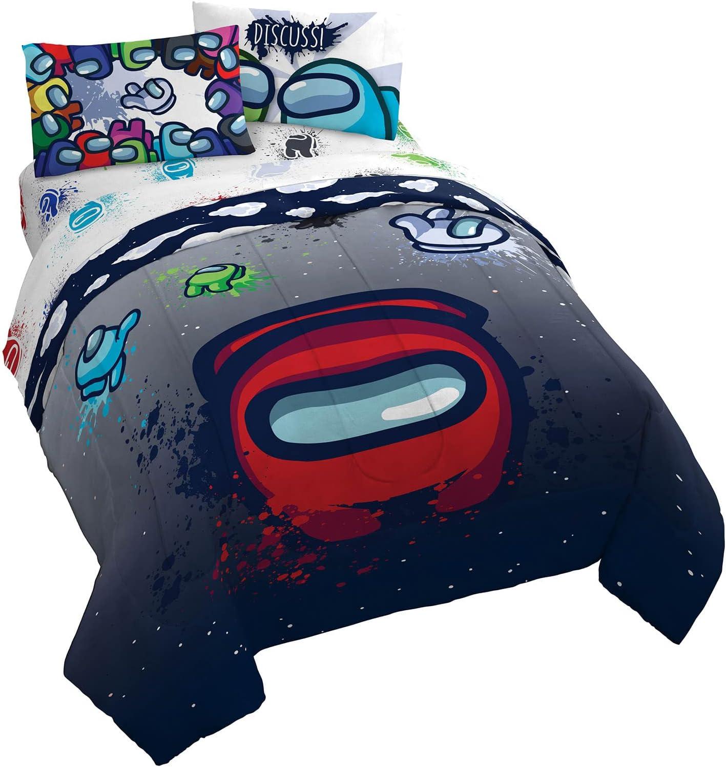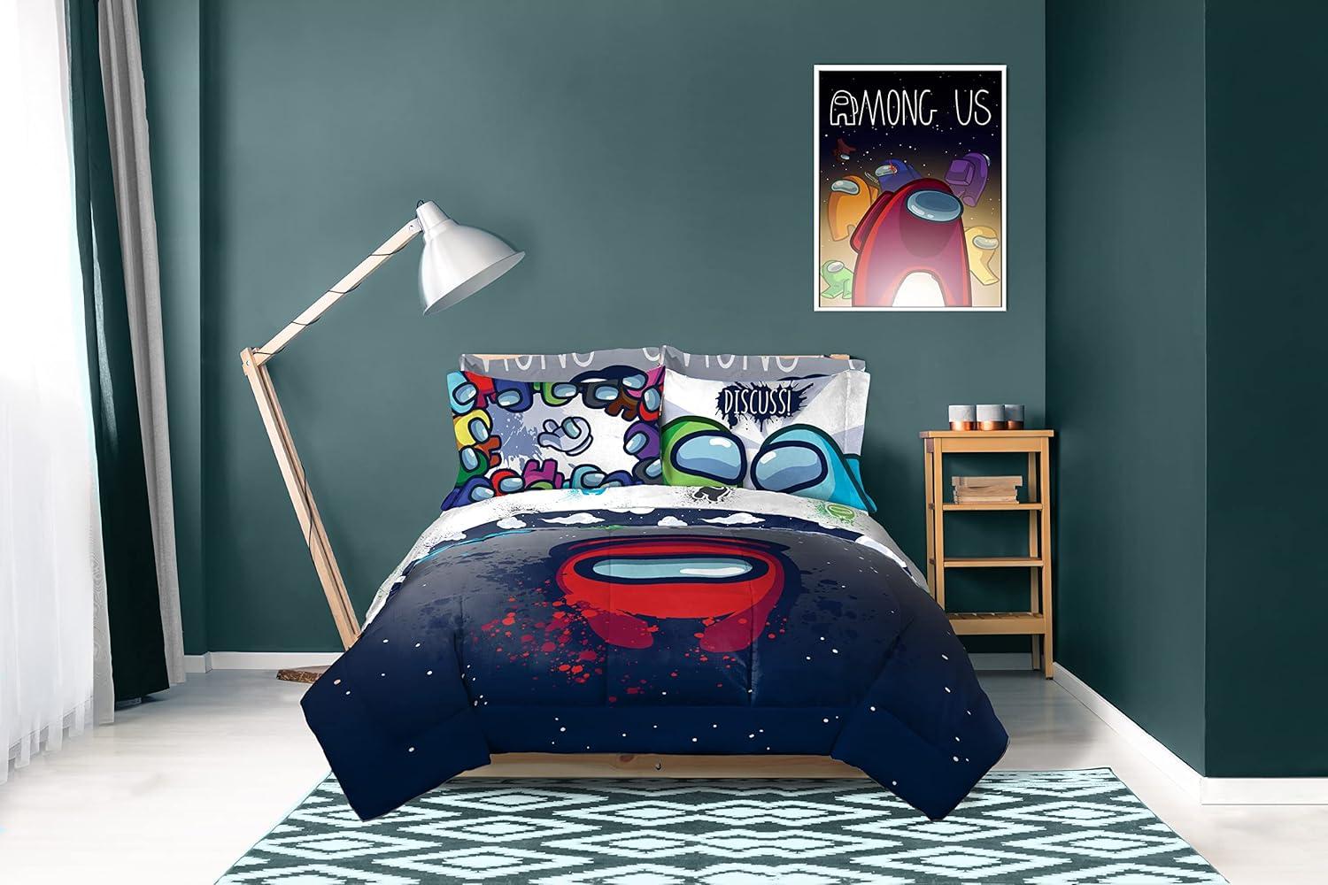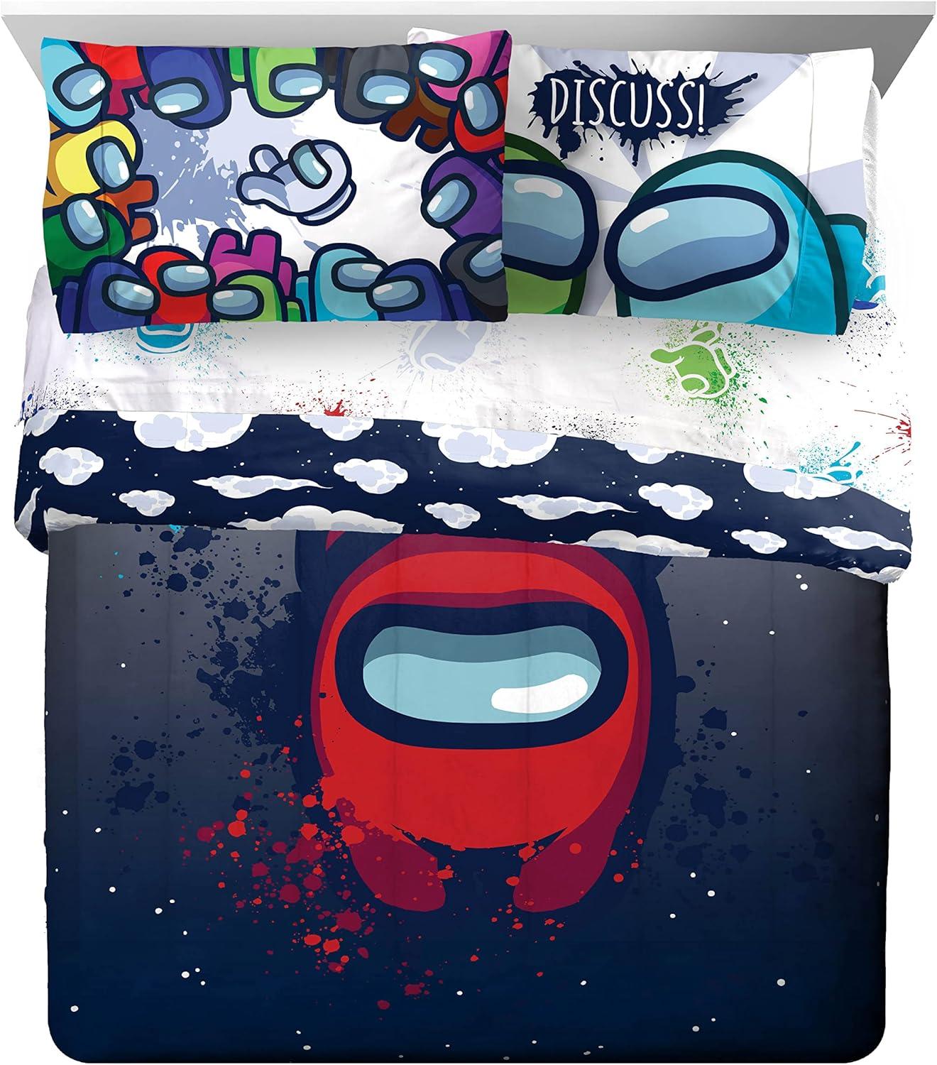 Jay Franco Marvel Avengers Fighting Team 5 Piece Queen Bed Set - Includes Reversible Comforter & Sheet Set Bedding - Super Soft Fade Resistant Microfiber (Official Marvel Product)(Multi - Among Us)