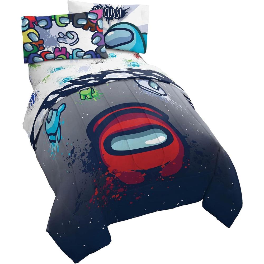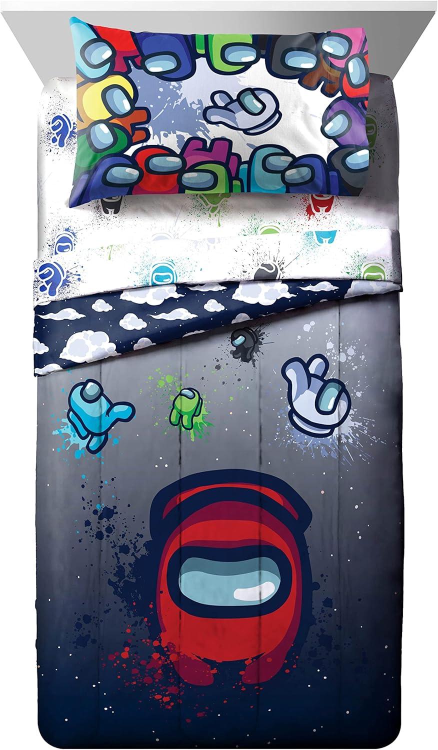 Jay Franco Marvel Avengers Fighting Team 5 Piece Queen Bed Set – Includes Reversible Comforter & Sheet Set Bedding – Super Soft Fade Resistant Microfiber (Official Marvel Product)(Multi – Among Us)