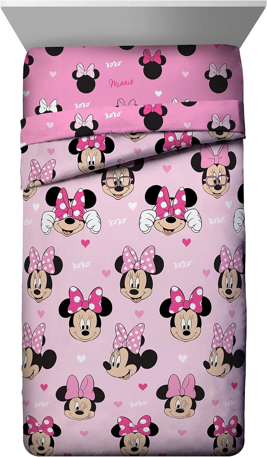 Jay Franco Marvel Avengers Fighting Team 5 Piece Queen Bed Set - Includes Reversible Comforter & Sheet Set Bedding - Super Soft Fade Resistant Microfiber (Official Marvel Product)(Pink - Minnie Mouse)