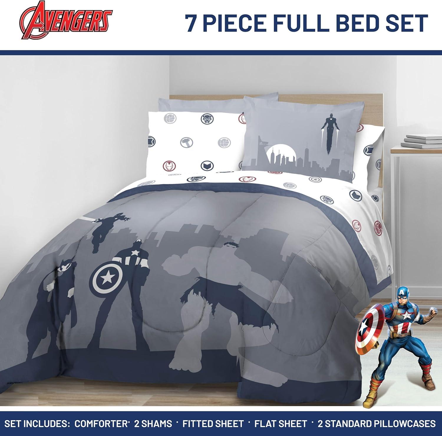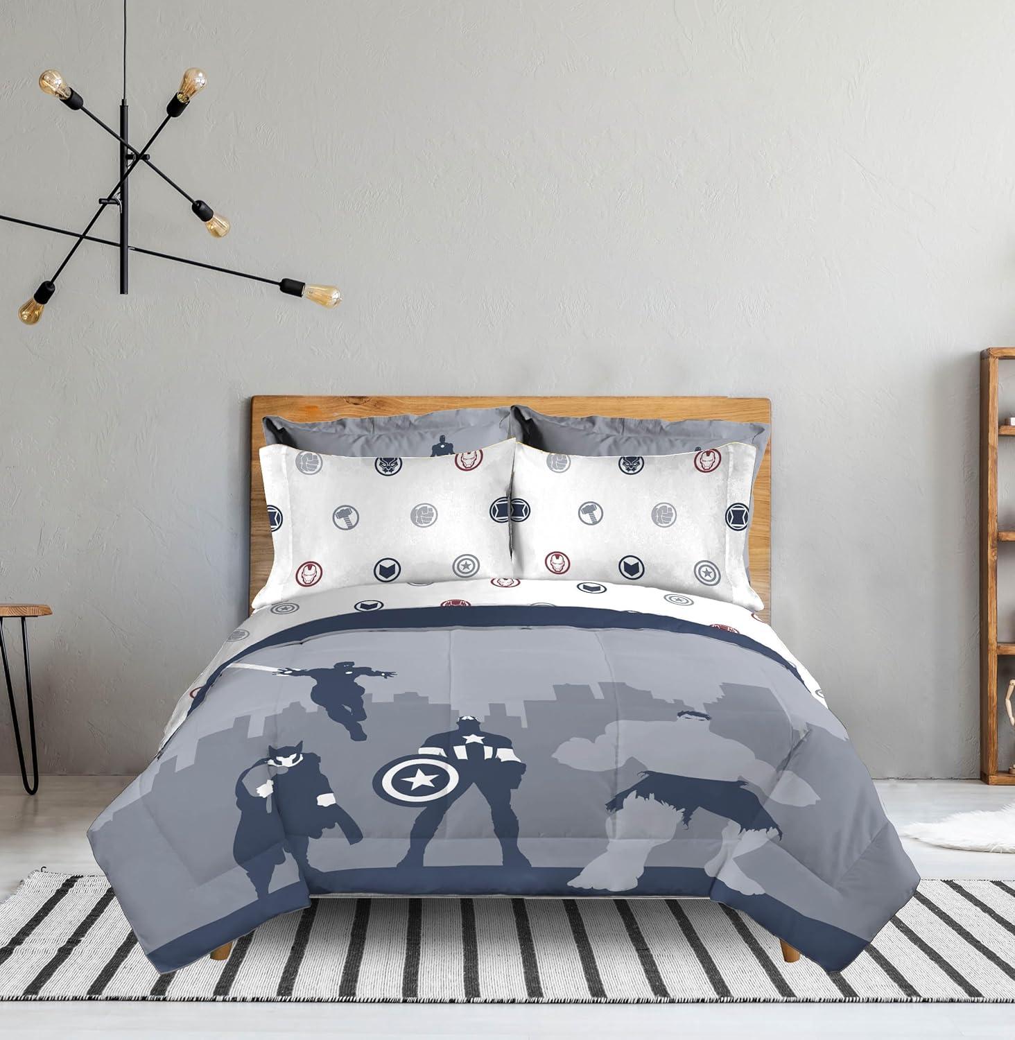 Jay Franco Marvel Avengers Twin Size Comforter Set – 5 Piece Bedding Includes Sheet Set & Pillow Covers – Super Soft Cozy Bedding with Captain America, Hulk, Iron Man and Thor(Blue – Avengers 01)
