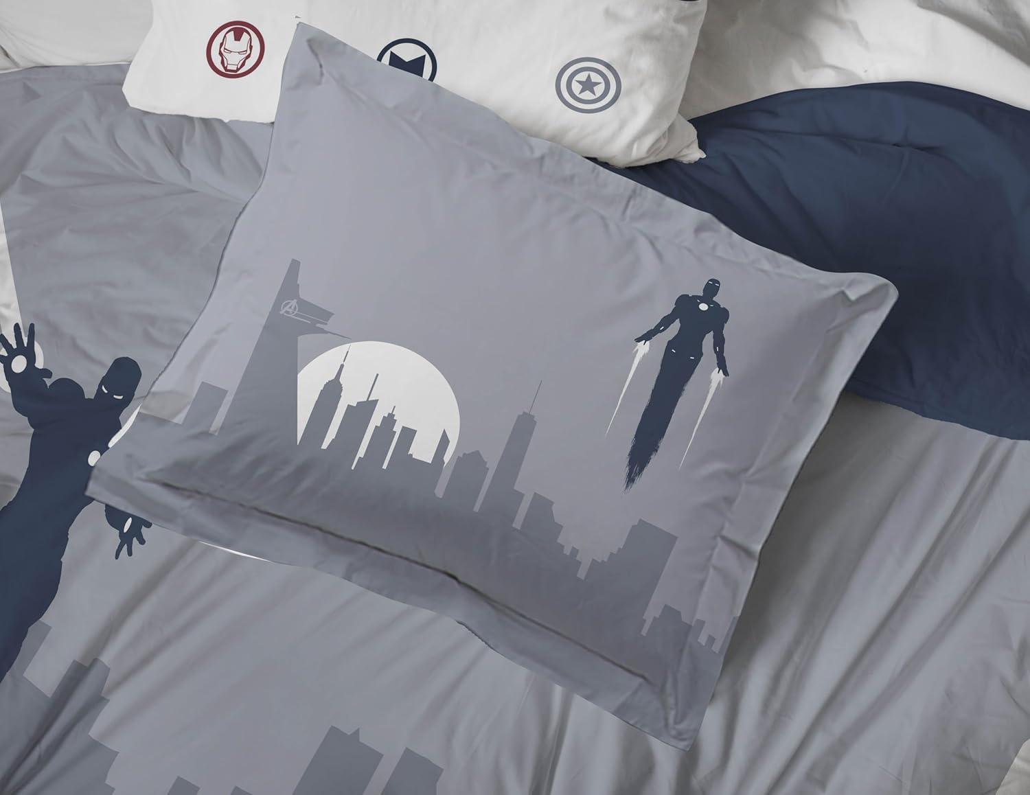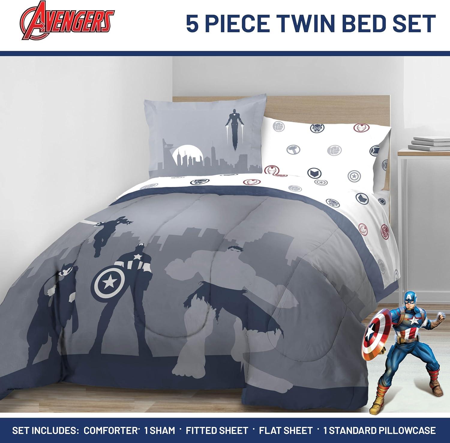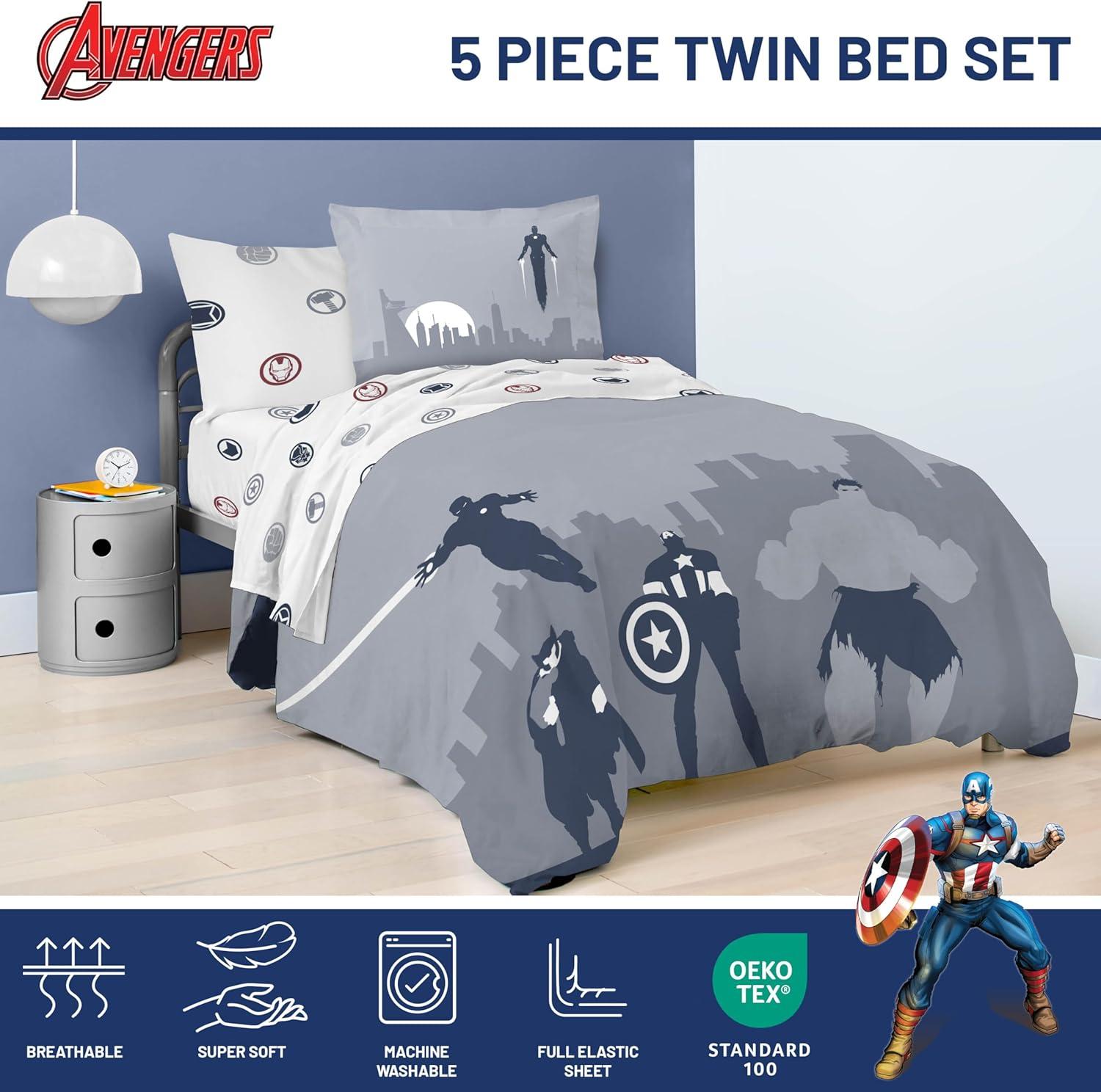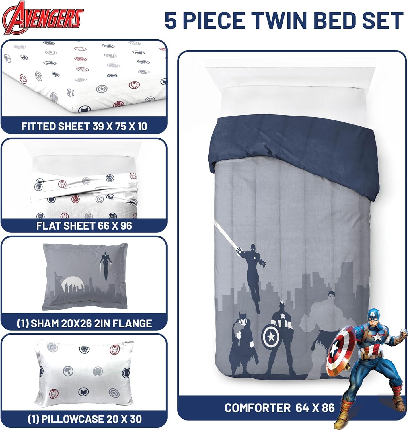 Jay Franco Marvel Avengers Twin Size Comforter Set - 5 Piece Bedding Includes Sheet Set & Pillow Covers - Super Soft Cozy Bedding with Captain America, Hulk, Iron Man and Thor(Blue - Avengers 01)