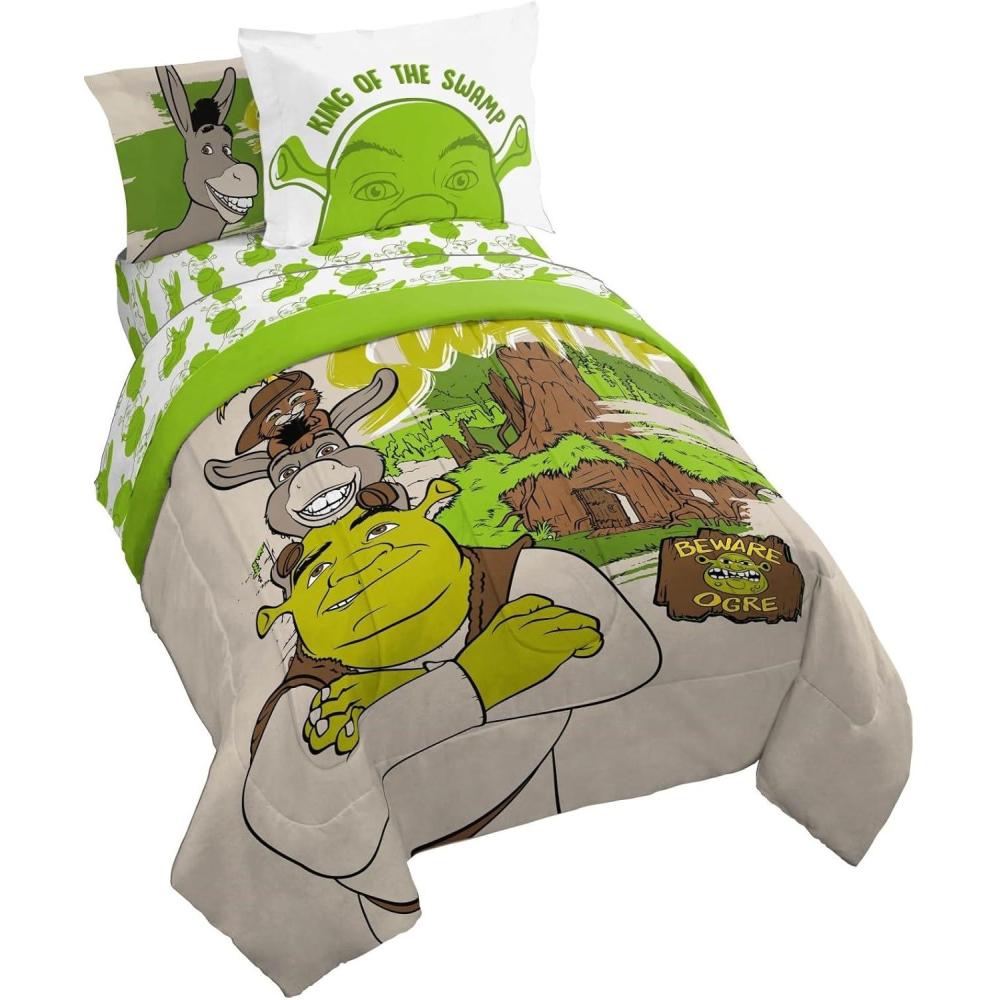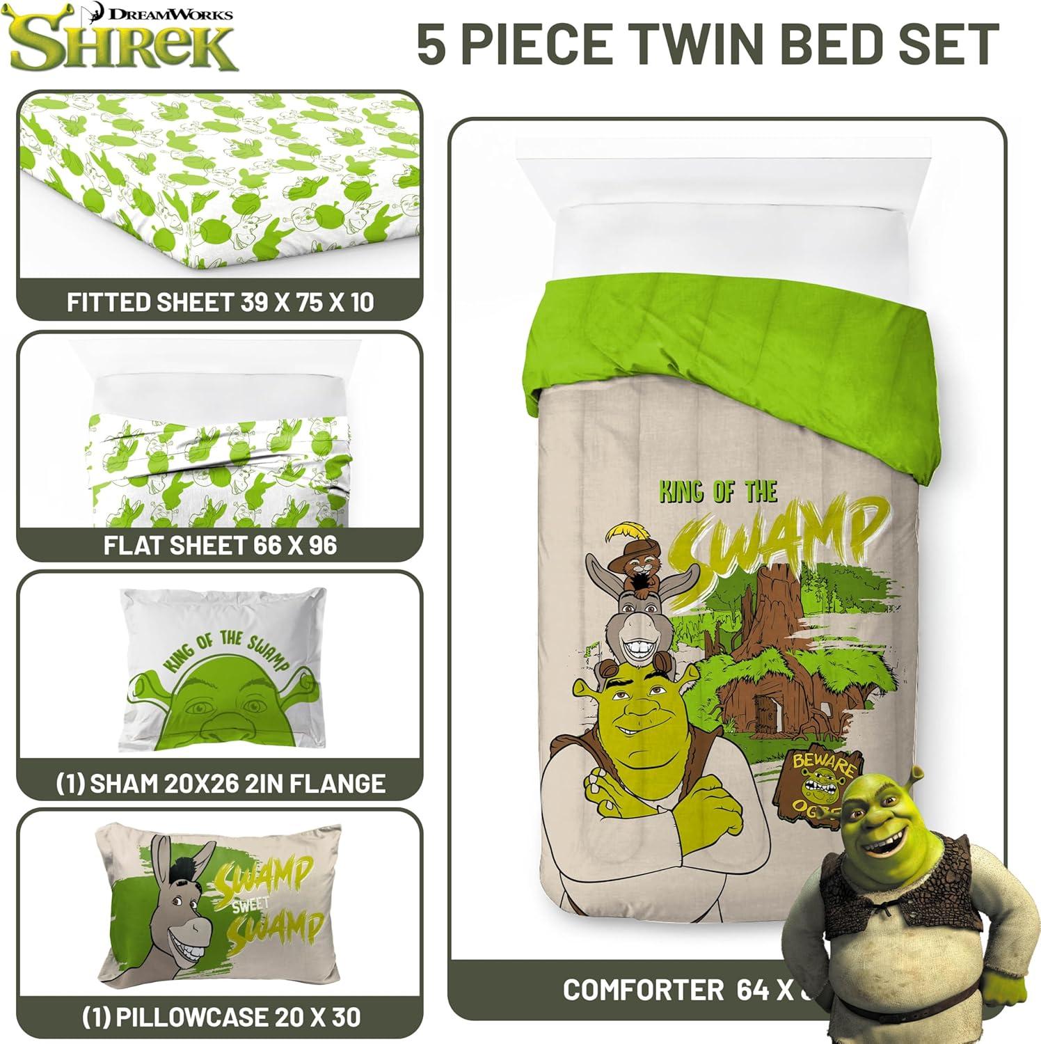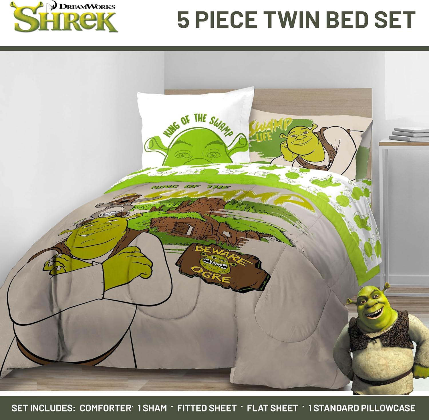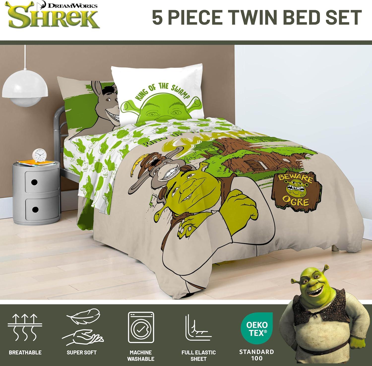 Jay Franco Marvel Avengers Twin Size Comforter Set - 5 Piece Bedding Includes Sheet Set & Pillow Covers - Super Soft Cozy Bedding with Captain America, Hulk, Iron Man and Thor(Brown - Shrek)