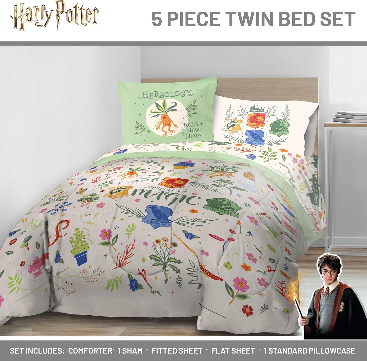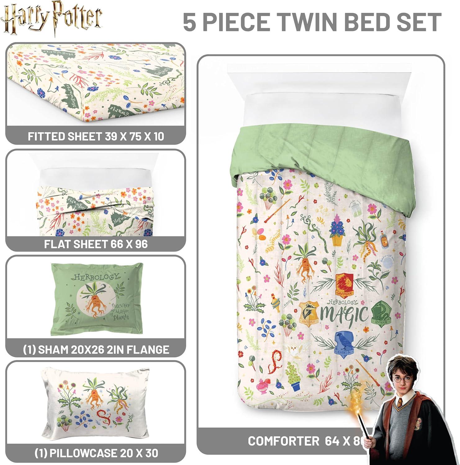 Jay Franco Marvel Avengers Twin Size Comforter Set - 5 Piece Bedding Includes Sheet Set & Pillow Covers - Super Soft Cozy Bedding with Captain America, Hulk, Iron Man and Thor(Multi - Harry Potter 01)