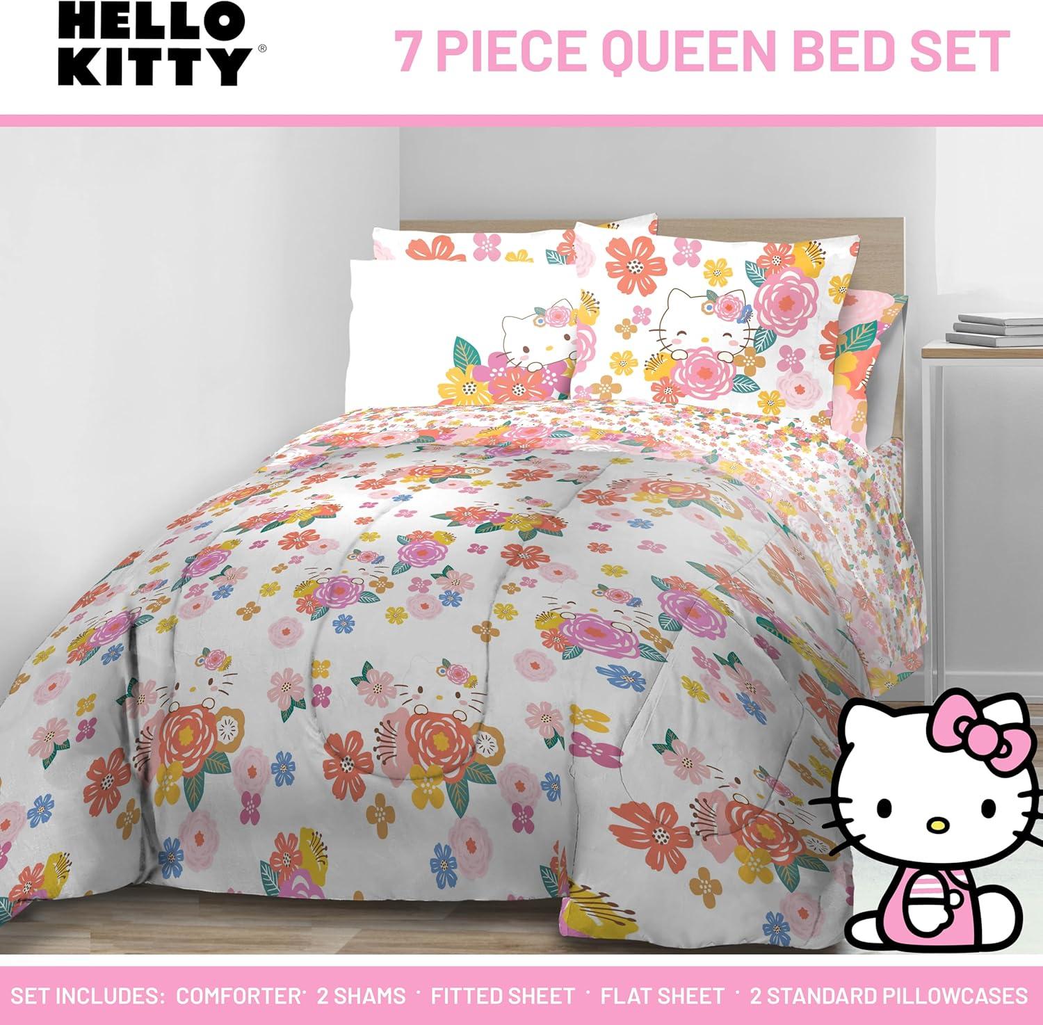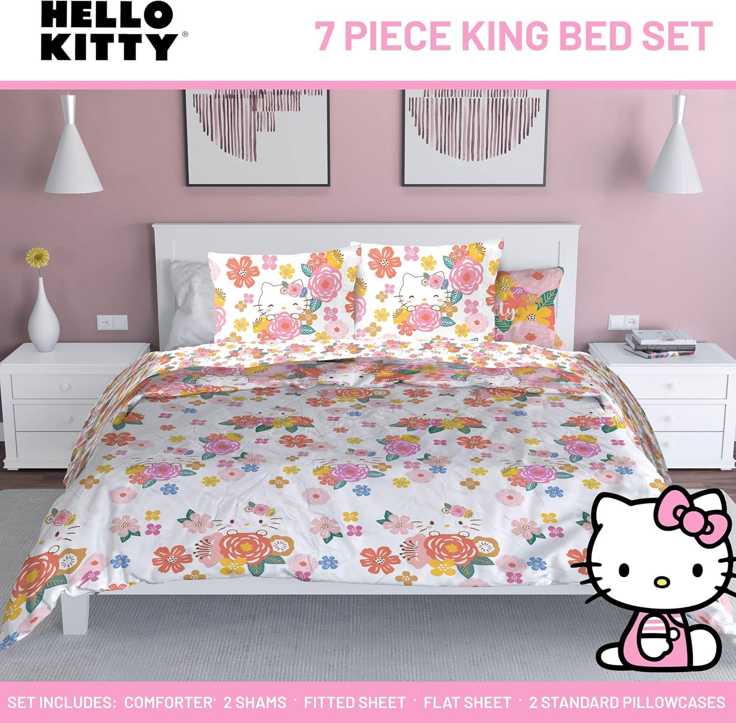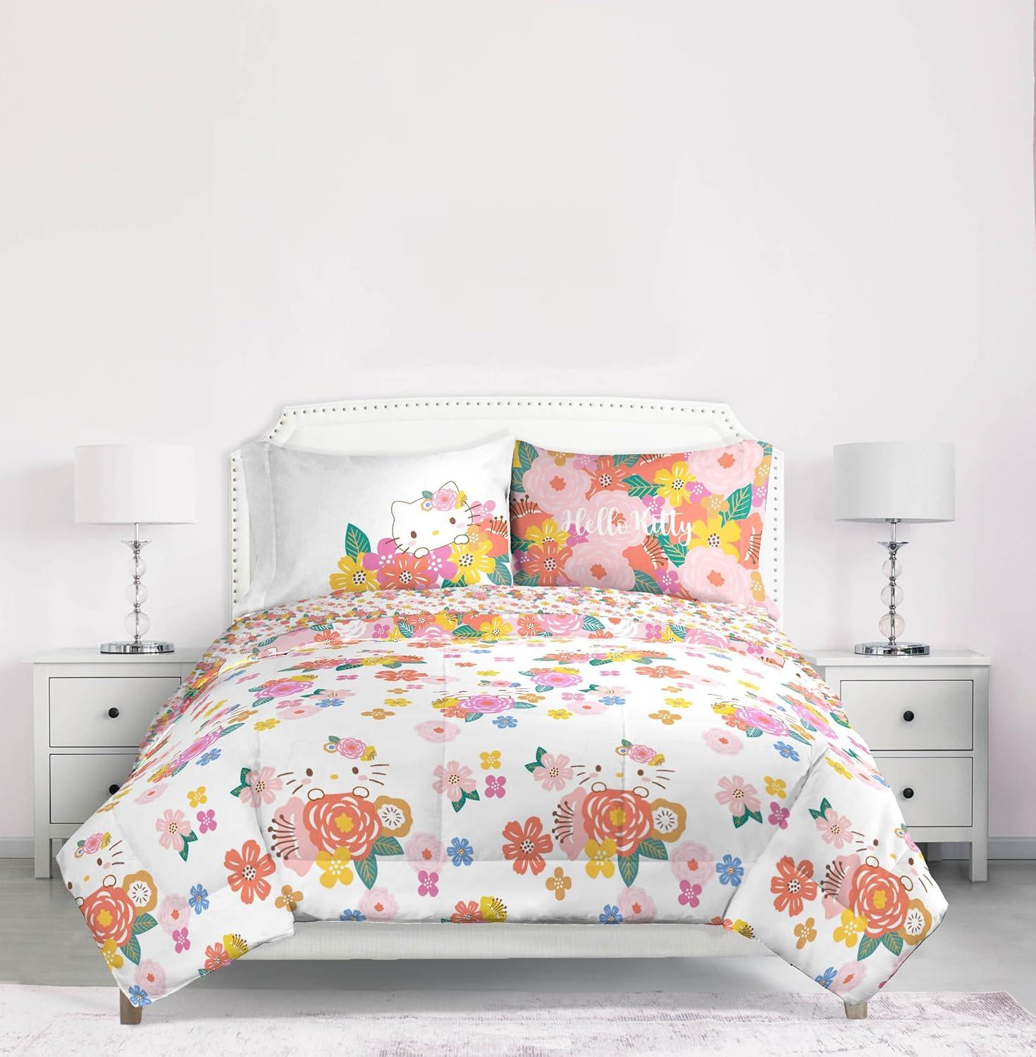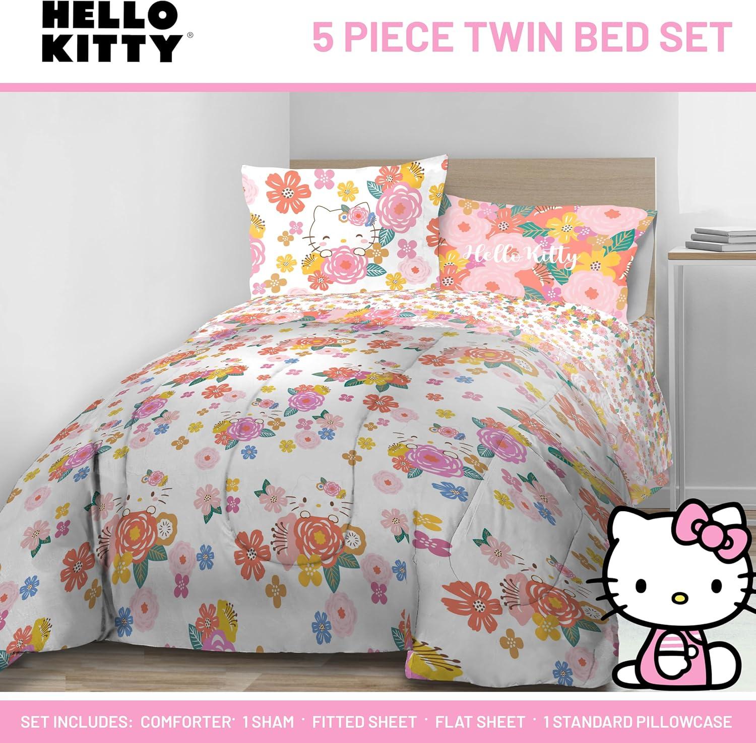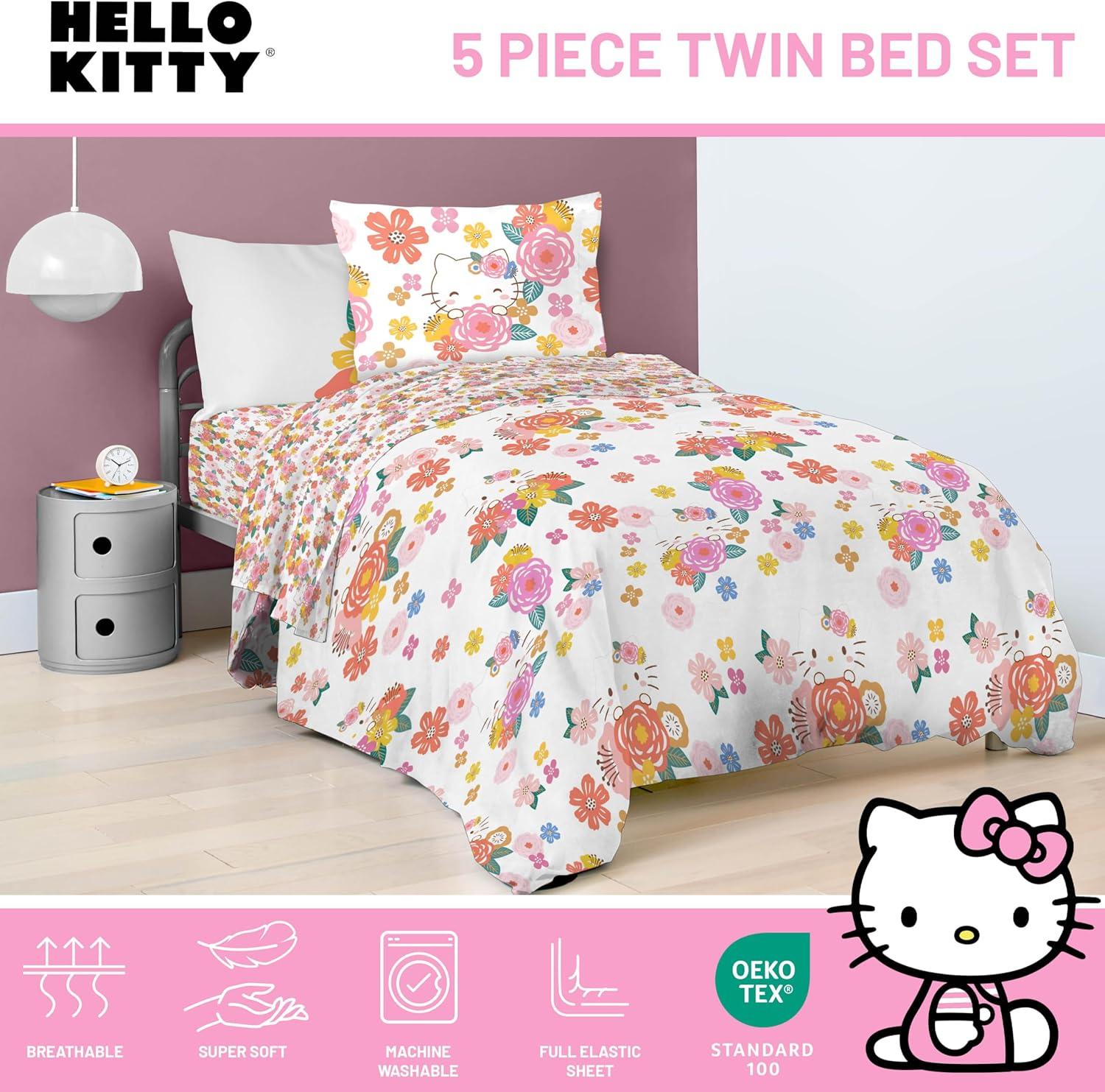 Jay Franco Marvel Avengers Twin Size Comforter Set - 5 Piece Bedding Includes Sheet Set & Pillow Covers - Super Soft Cozy Bedding with Captain America, Hulk, Iron Man and Thor(Multi - Hello Kitty)