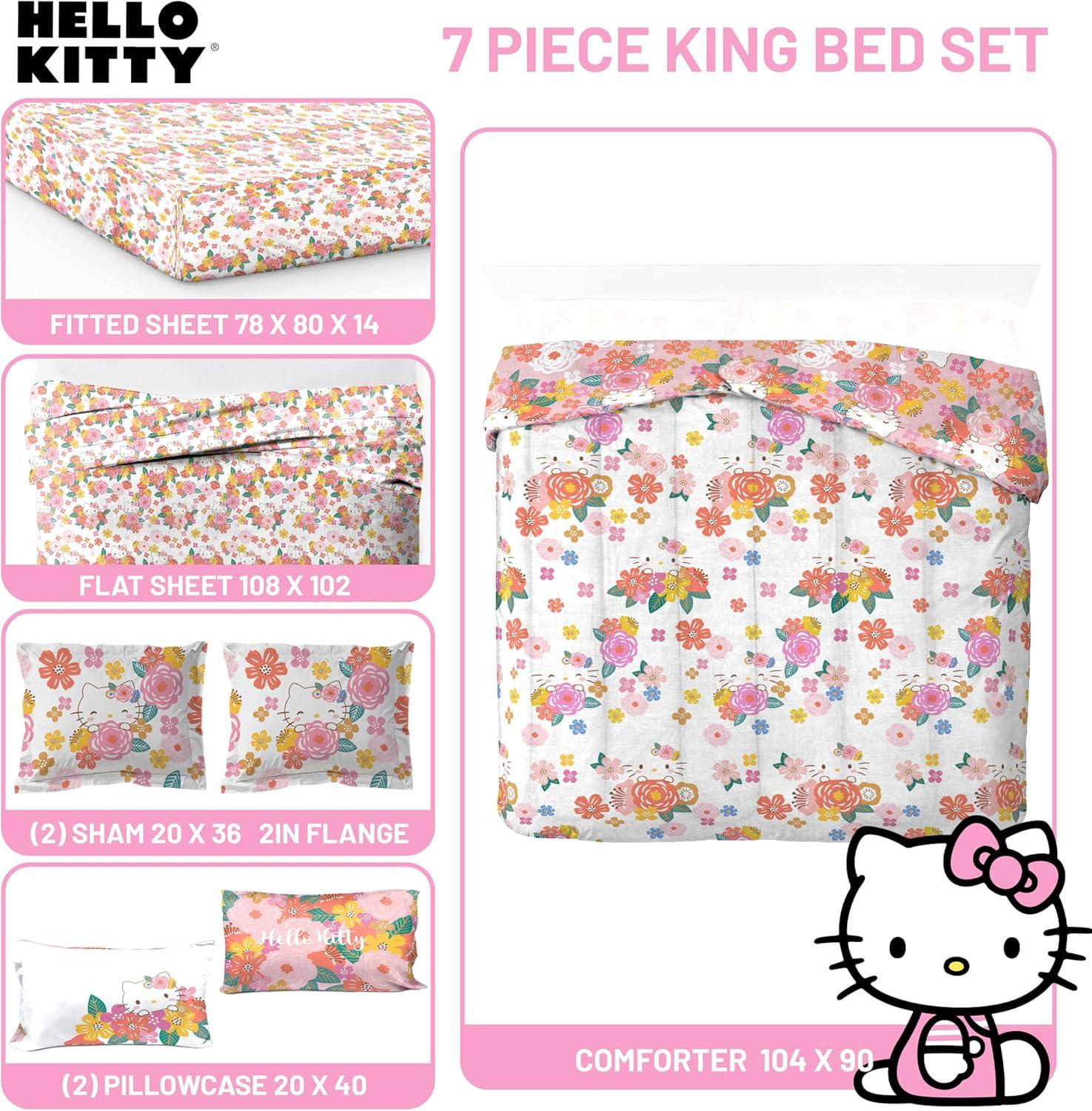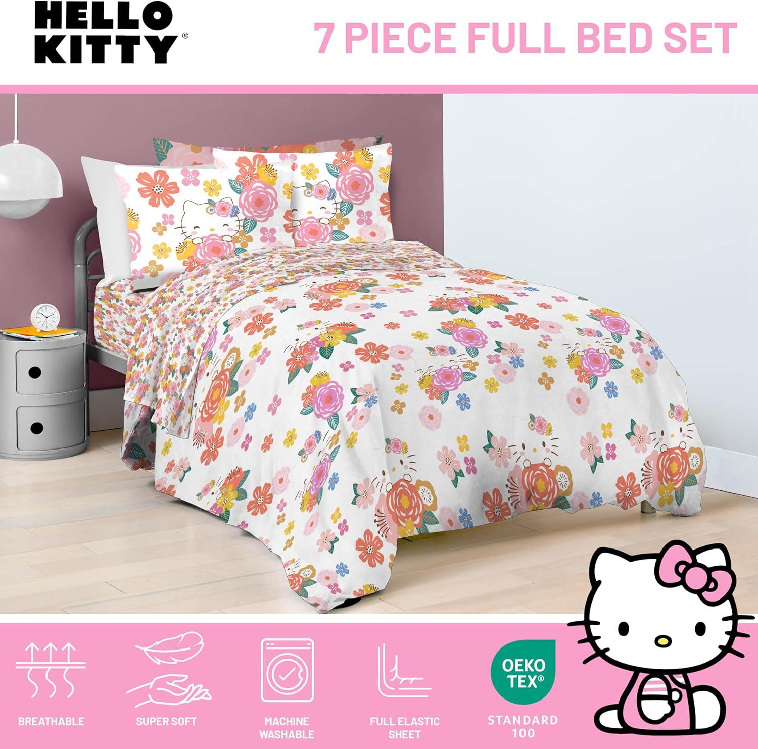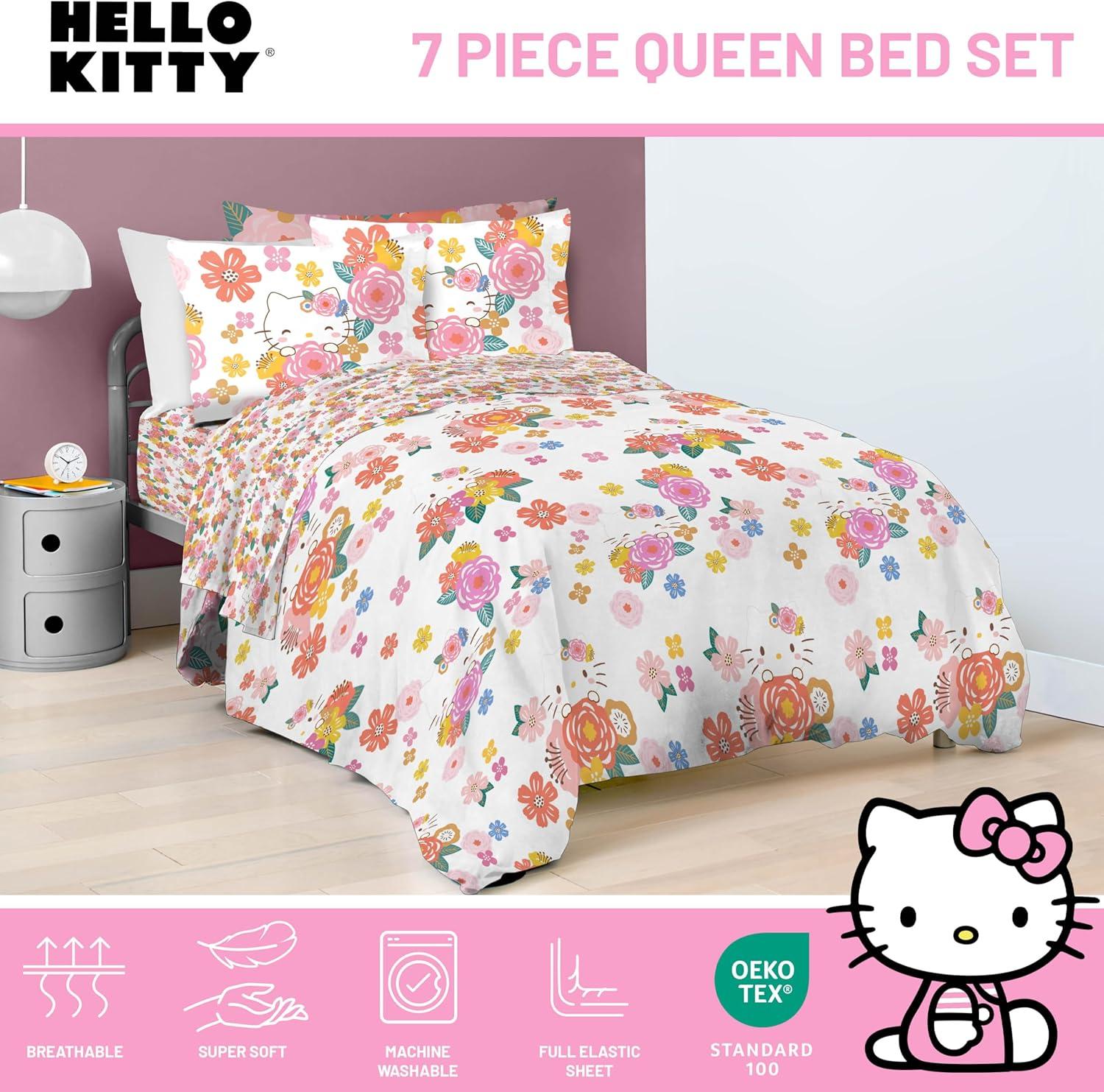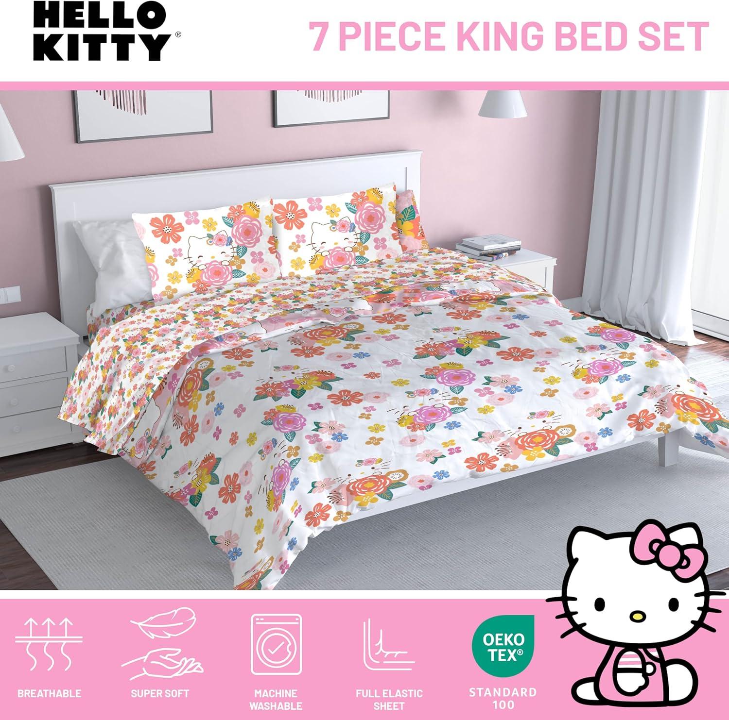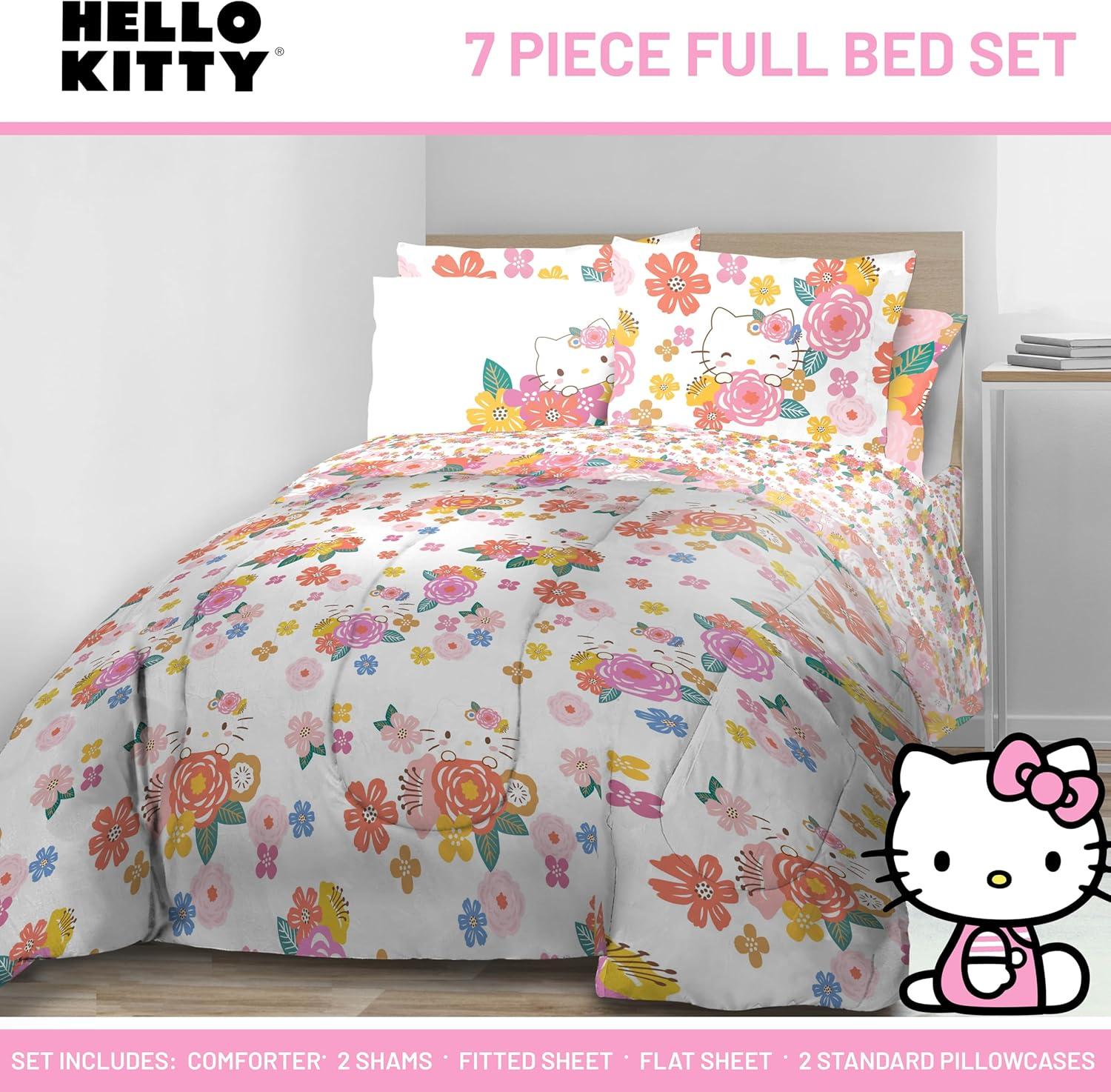 Jay Franco Marvel Avengers Twin Size Comforter Set - 5 Piece Bedding Includes Sheet Set & Pillow Covers - Super Soft Cozy Bedding with Captain America, Hulk, Iron Man and Thor(Multi - Hello Kitty)