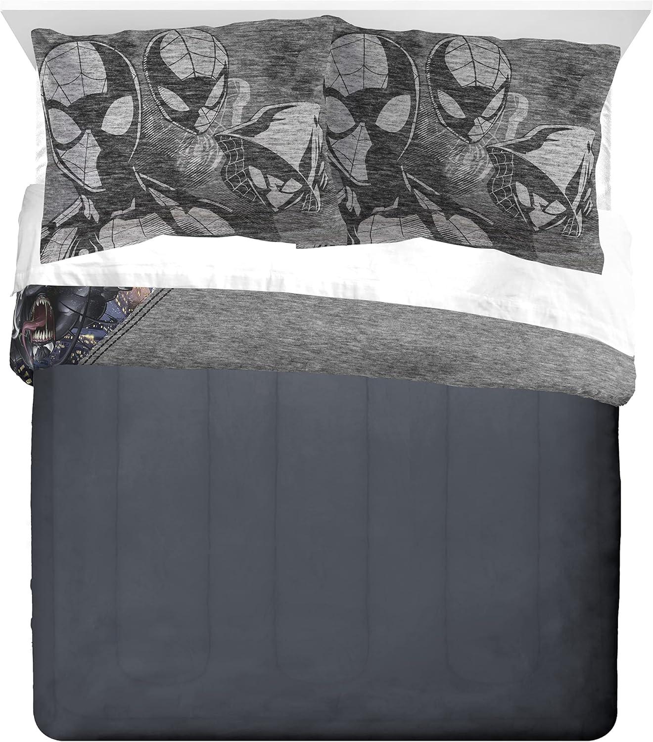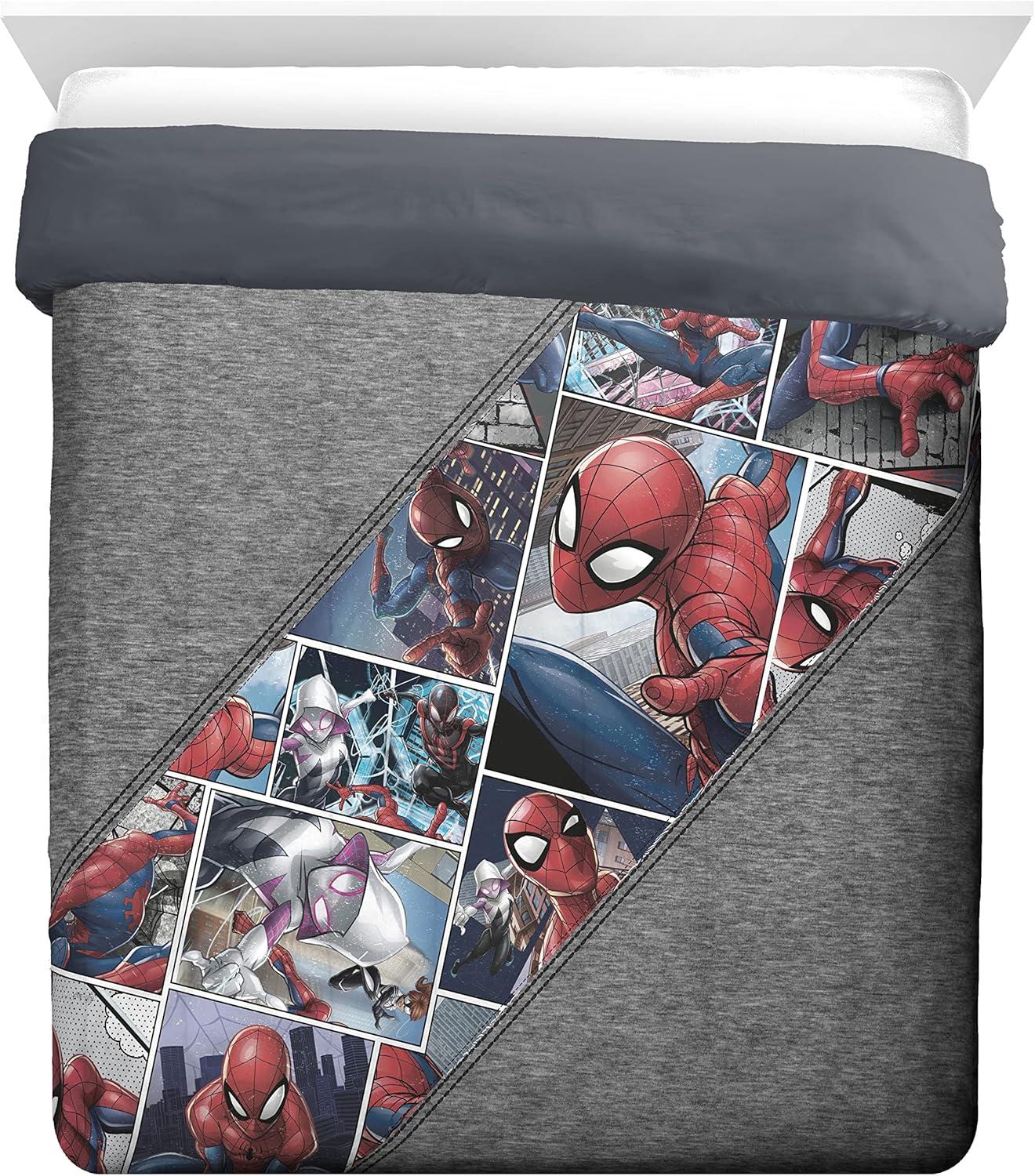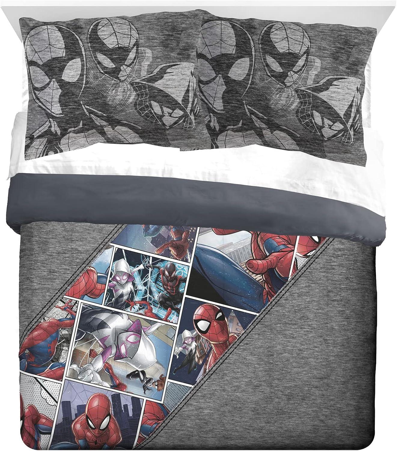 Jay Franco Marvel Comics 80th Anniversary Full/Queen Comforter & Sham Set - Super Soft Kids Reversible Bedding - Fade Resistant Microfiber (Official Marvel Product)(Gray - Spiderman)