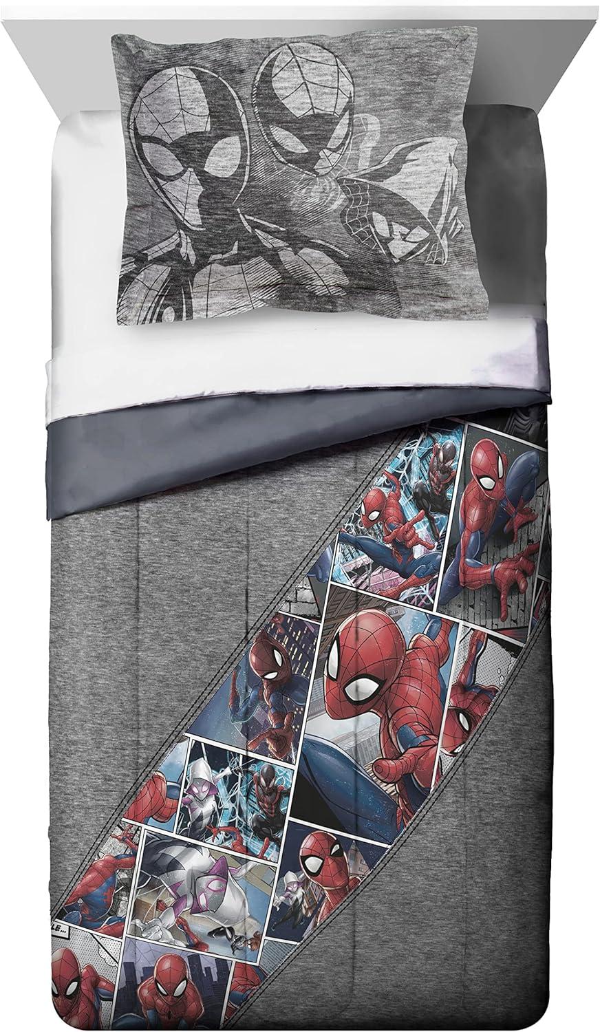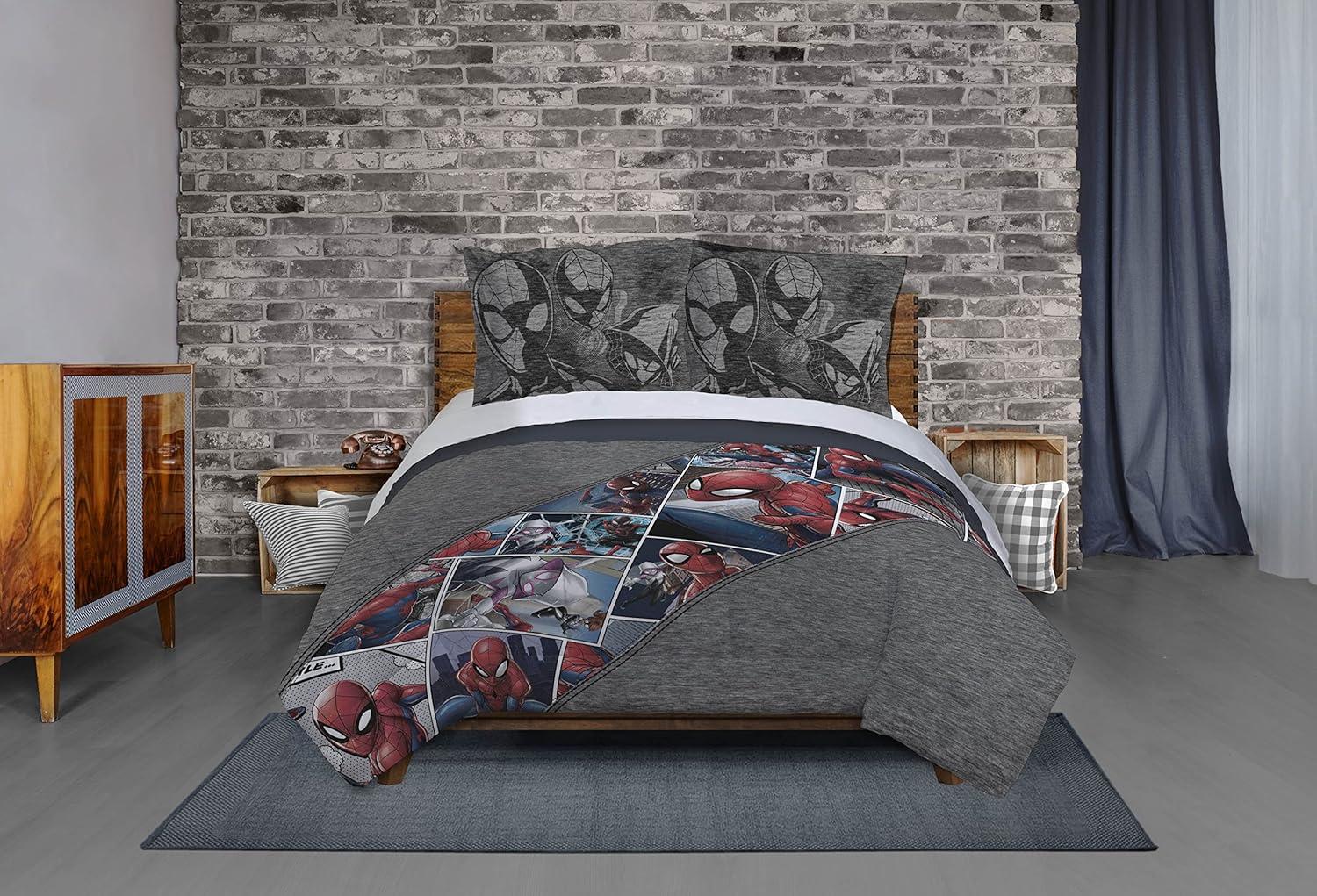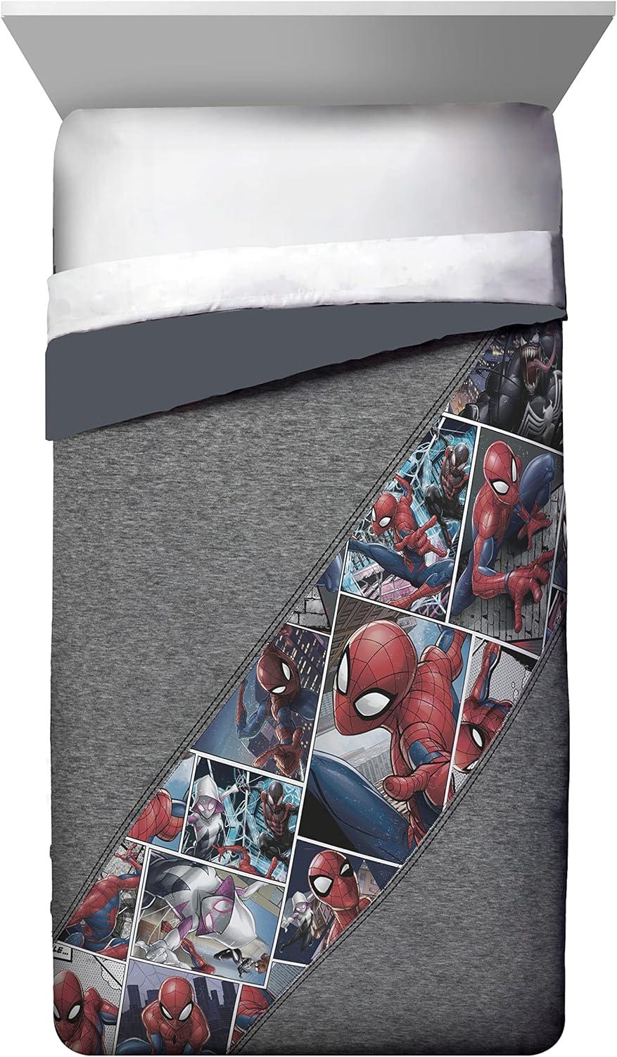 Jay Franco Marvel Comics 80th Anniversary Full/Queen Comforter & Sham Set - Super Soft Kids Reversible Bedding - Fade Resistant Microfiber (Official Marvel Product)(Gray - Spiderman)
