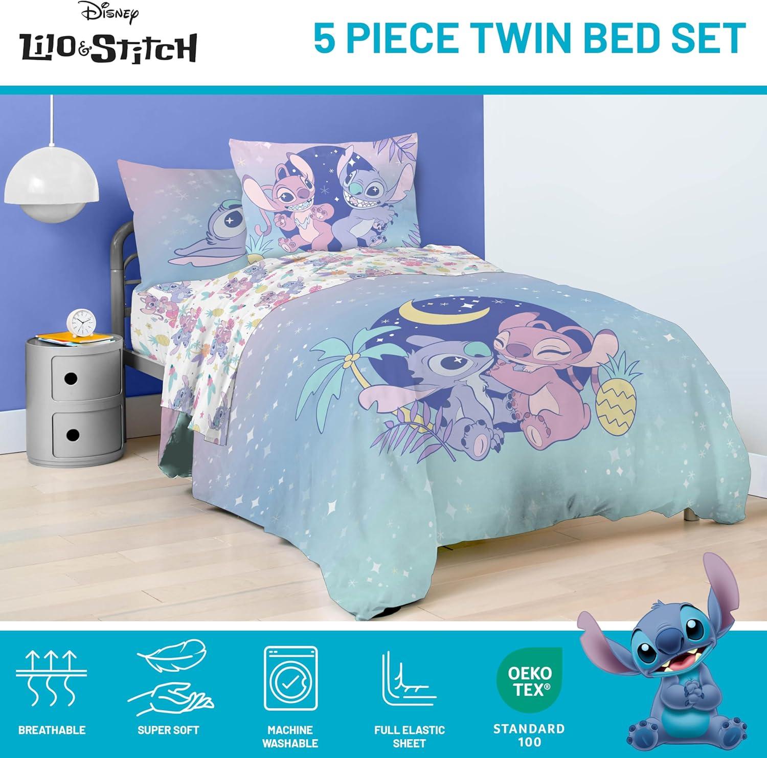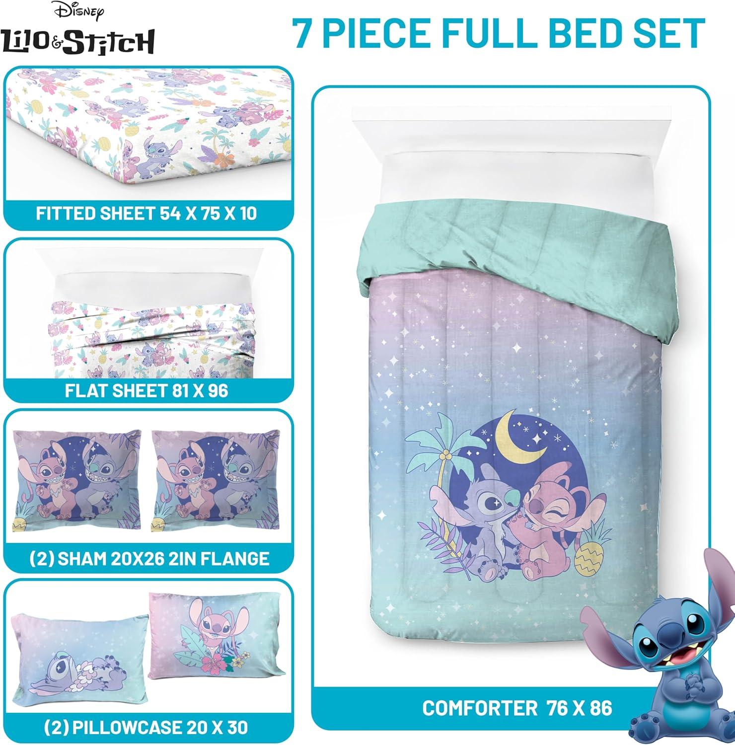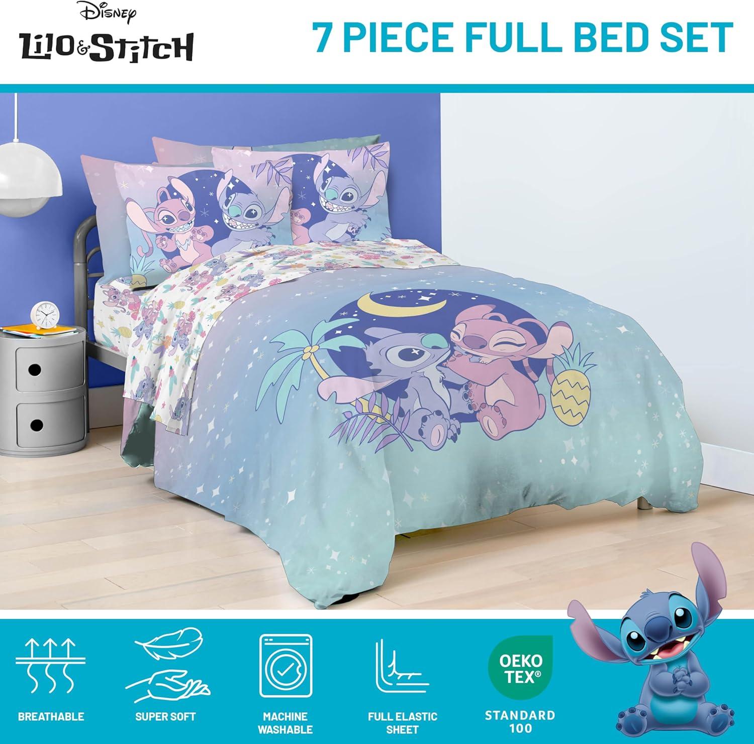Jay Franco Marvel Deadpool Queen Size Comforter Set - 7 Piece Bedding Includes Sheet Set and Pillow Covers - Gray and Red Super Soft Cozy Bedding(Multi - Lilo & Stitch 01)