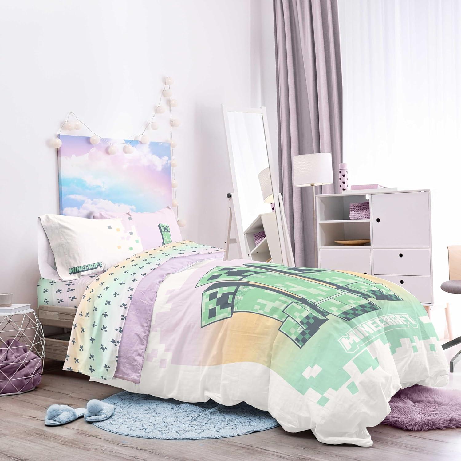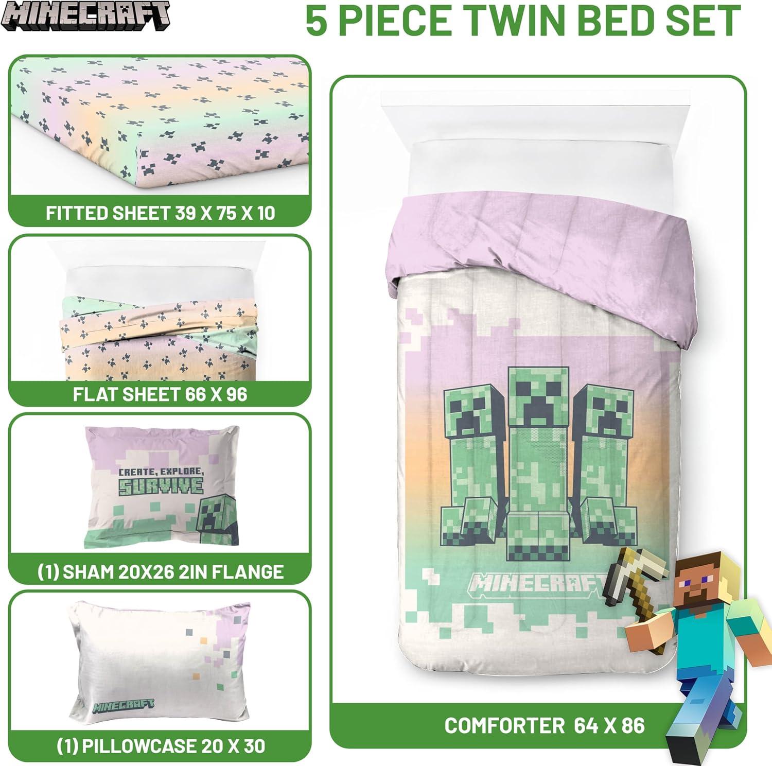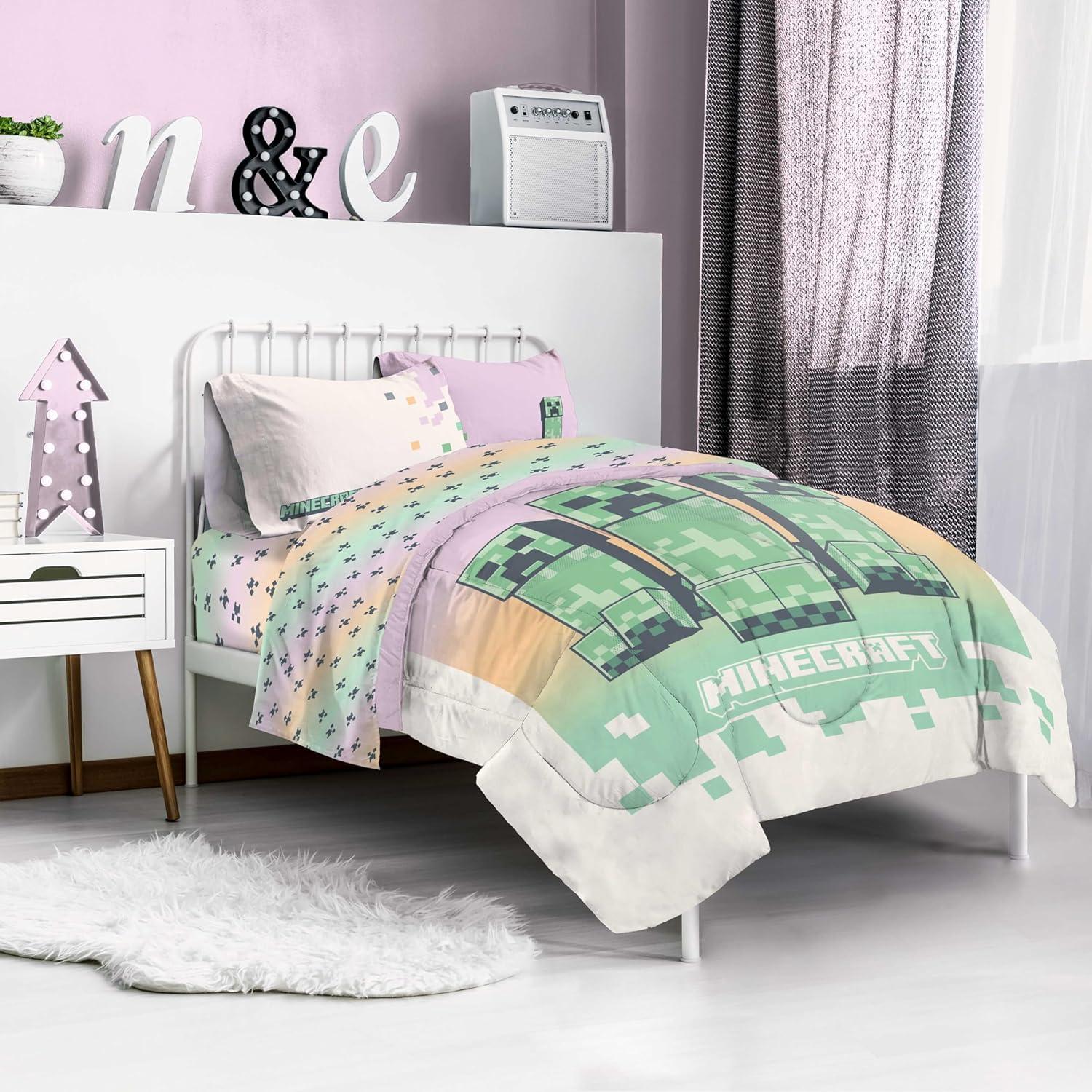 Jay Franco Marvel Deadpool Queen Size Comforter Set - 7 Piece Bedding Includes Sheet Set and Pillow Covers - Gray and Red Super Soft Cozy Bedding(Pink - Minecraft 01)