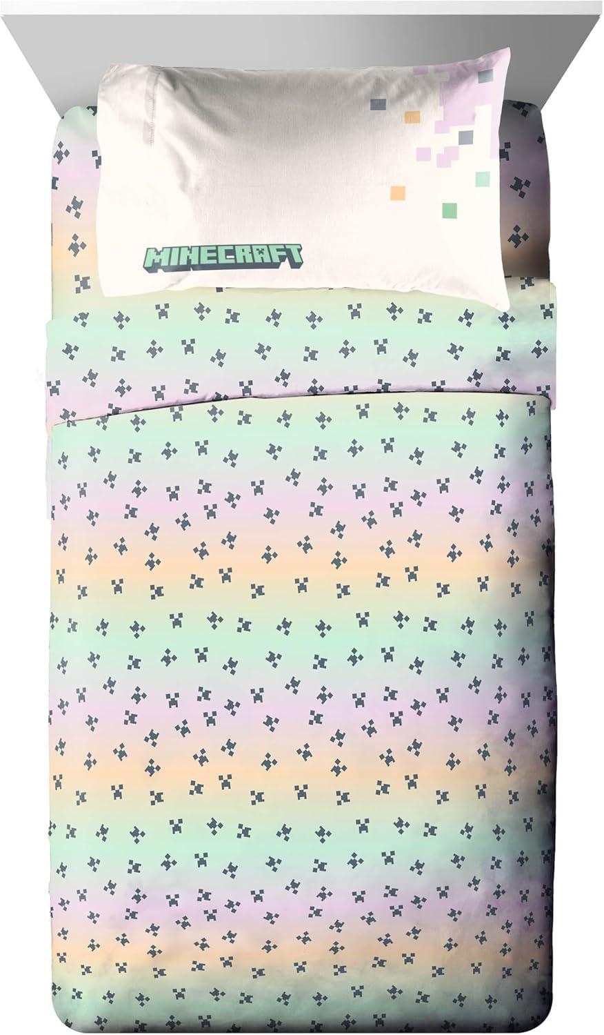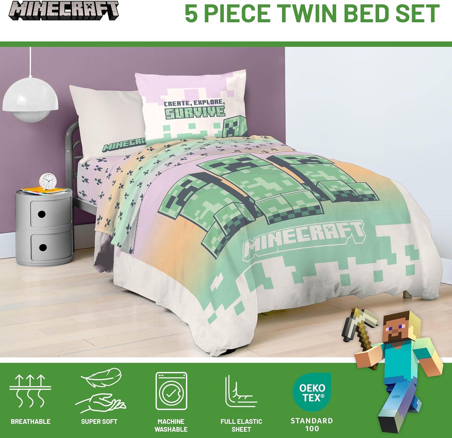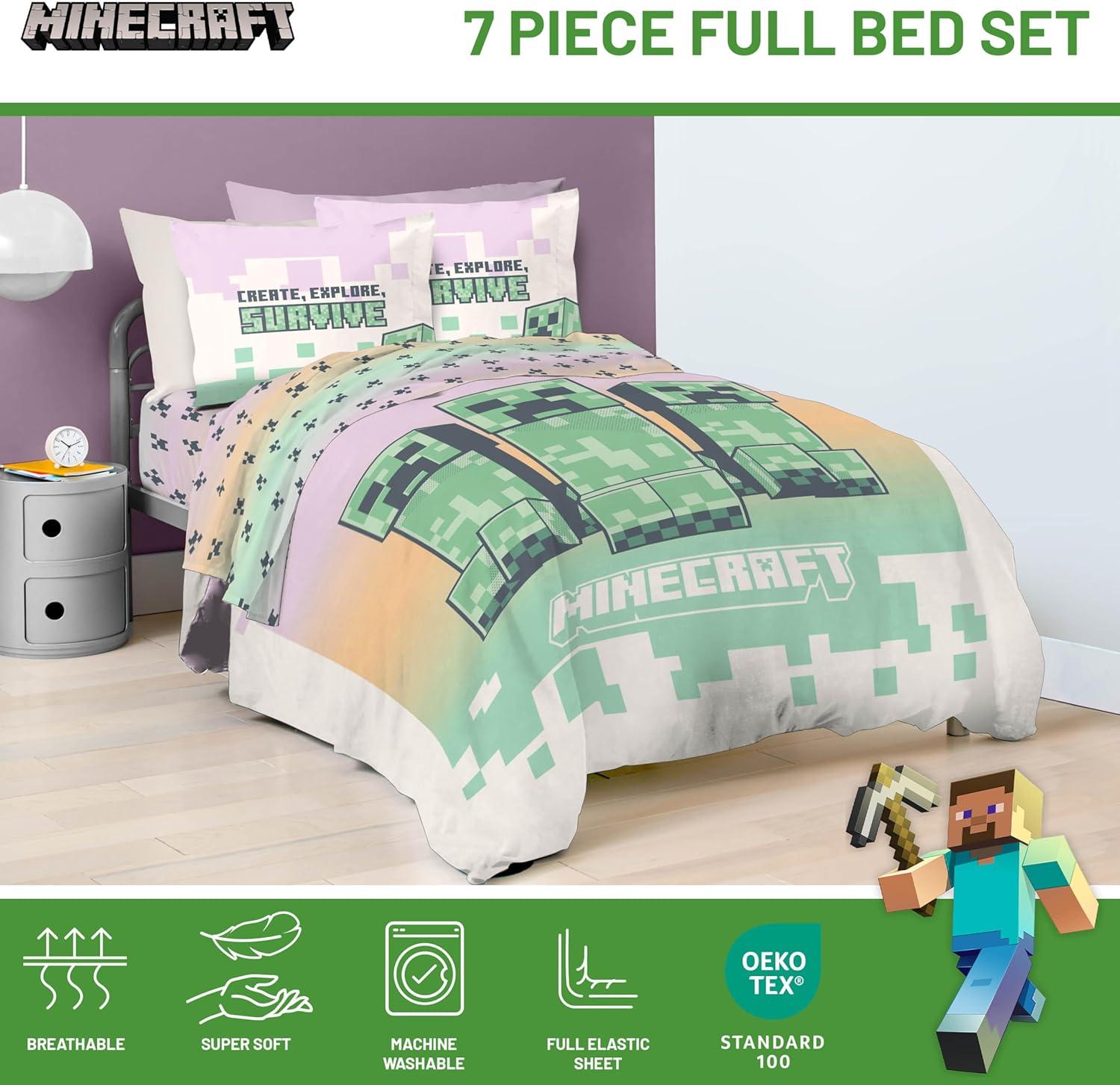 imageJay Franco Marvel Deadpool Queen Size Comforter Set  7 Piece Bedding Includes Sheet Set and Pillow Covers  Gray and Red Super Soft Cozy BeddingPink  Minecraft 01