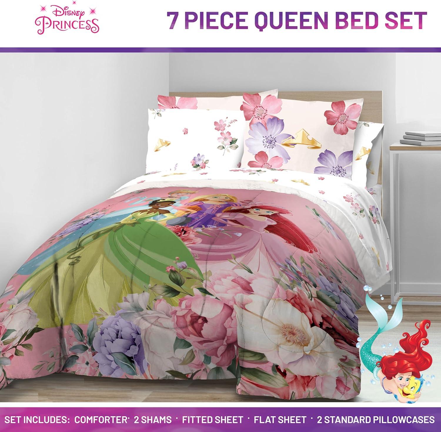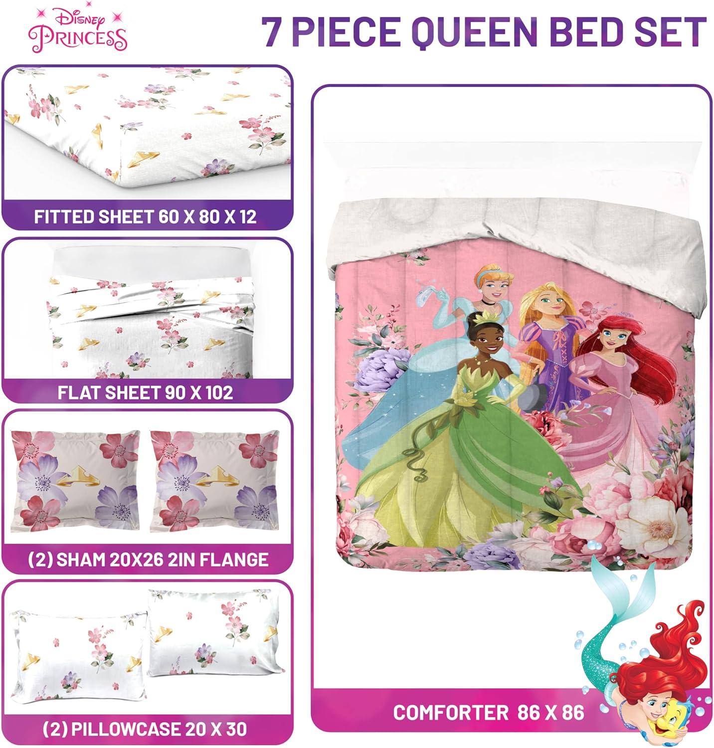 Jay Franco Marvel Deadpool Queen Size Comforter Set - 7 Piece Bedding Includes Sheet Set and Pillow Covers - Gray and Red Super Soft Cozy Bedding(Pink - Princess 01)