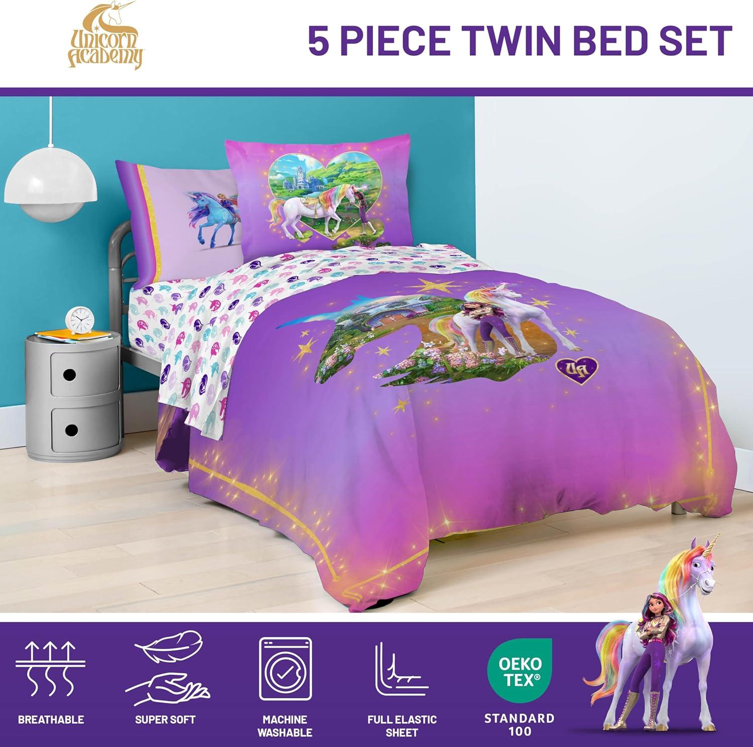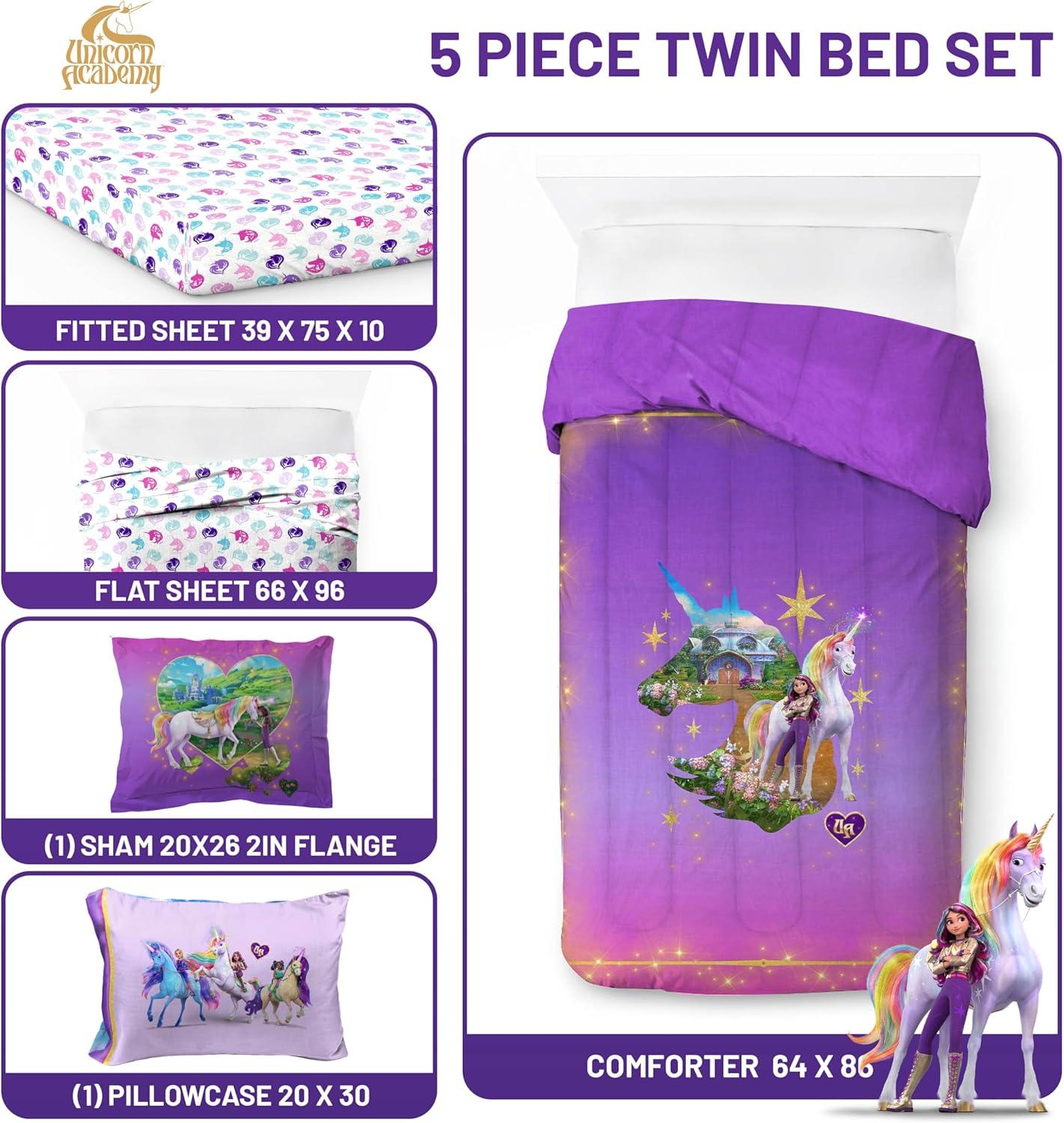PERFECT FIT & FUN DESIGN – Bed set includes (1) 90 x 90 inch queen comforter, (1) 60 x 80 inch fitted sheet, (1) 90 x 102 inch flat sheet, (2) 20 x 30 inch standard pillowcases, and (2) 20 x 26 inch shams With it's vibrant colors and cozy feel, this bed set is sure to make bedtime fun!