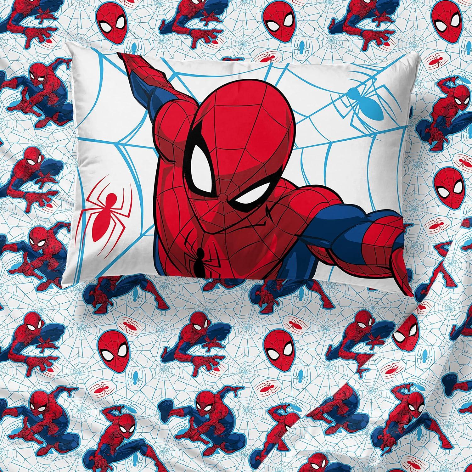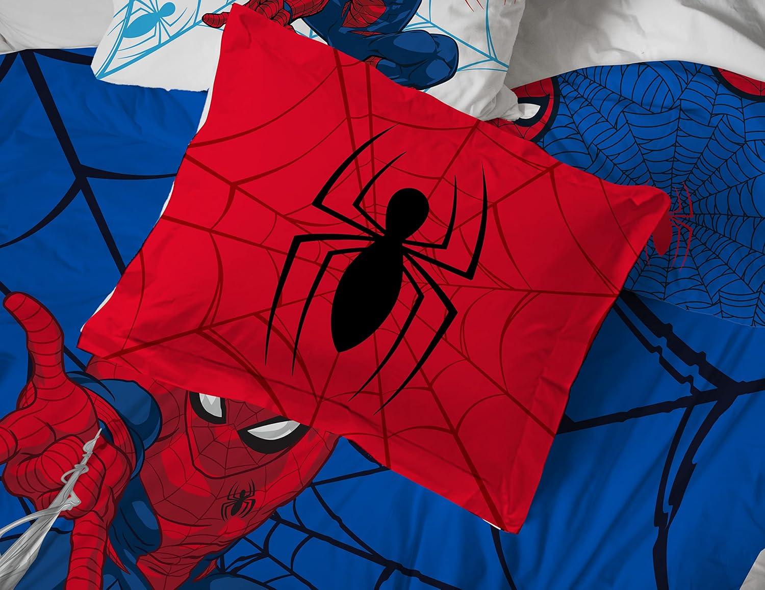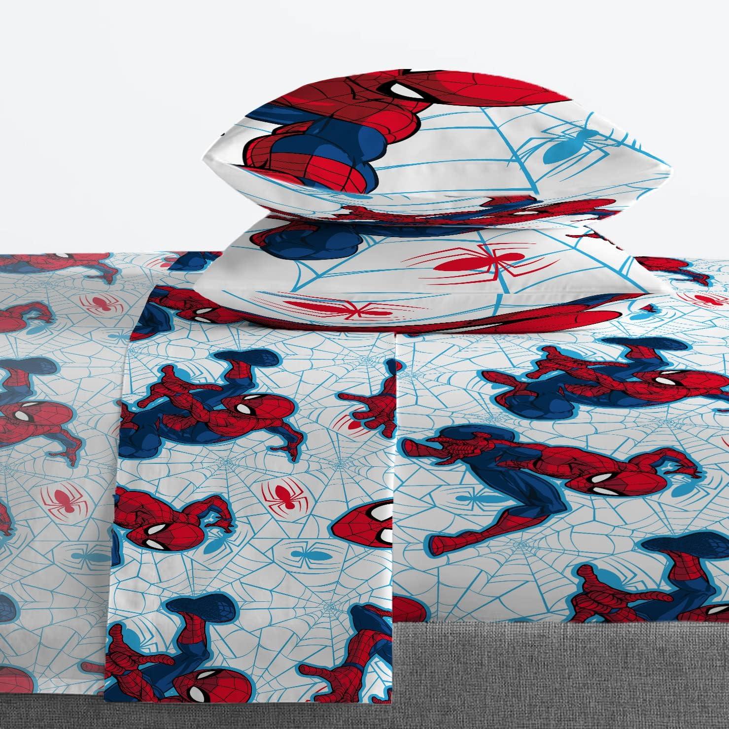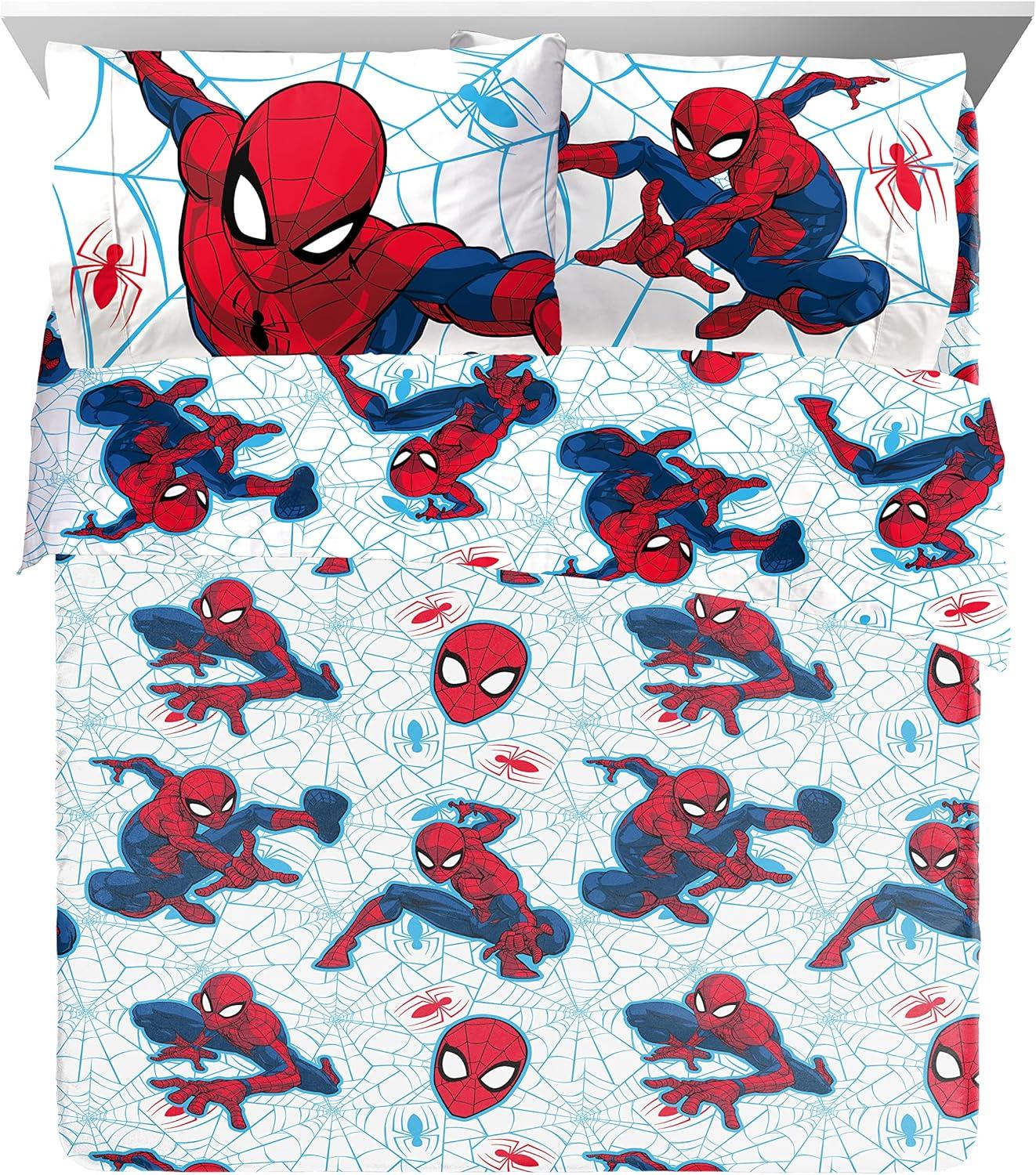 PERFECT FIT & FUN DESIGN – Twin bed set includes (1) 64 x 86 inch twin comforter, (1) 39 x 75 inch fitted sheet, (1) 66 x 96 inch flat sheet, (1) 20 x 30 inch standard pillowcase, and (1) 20 x 26 inch sham. Add a touch of decorative enchantment to your room with our fashionable and super soft Spiderman bed set.