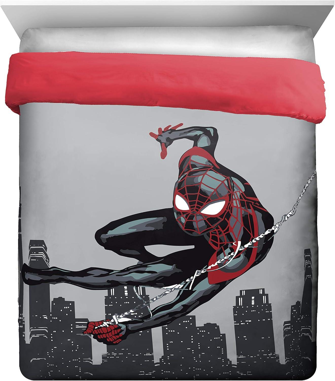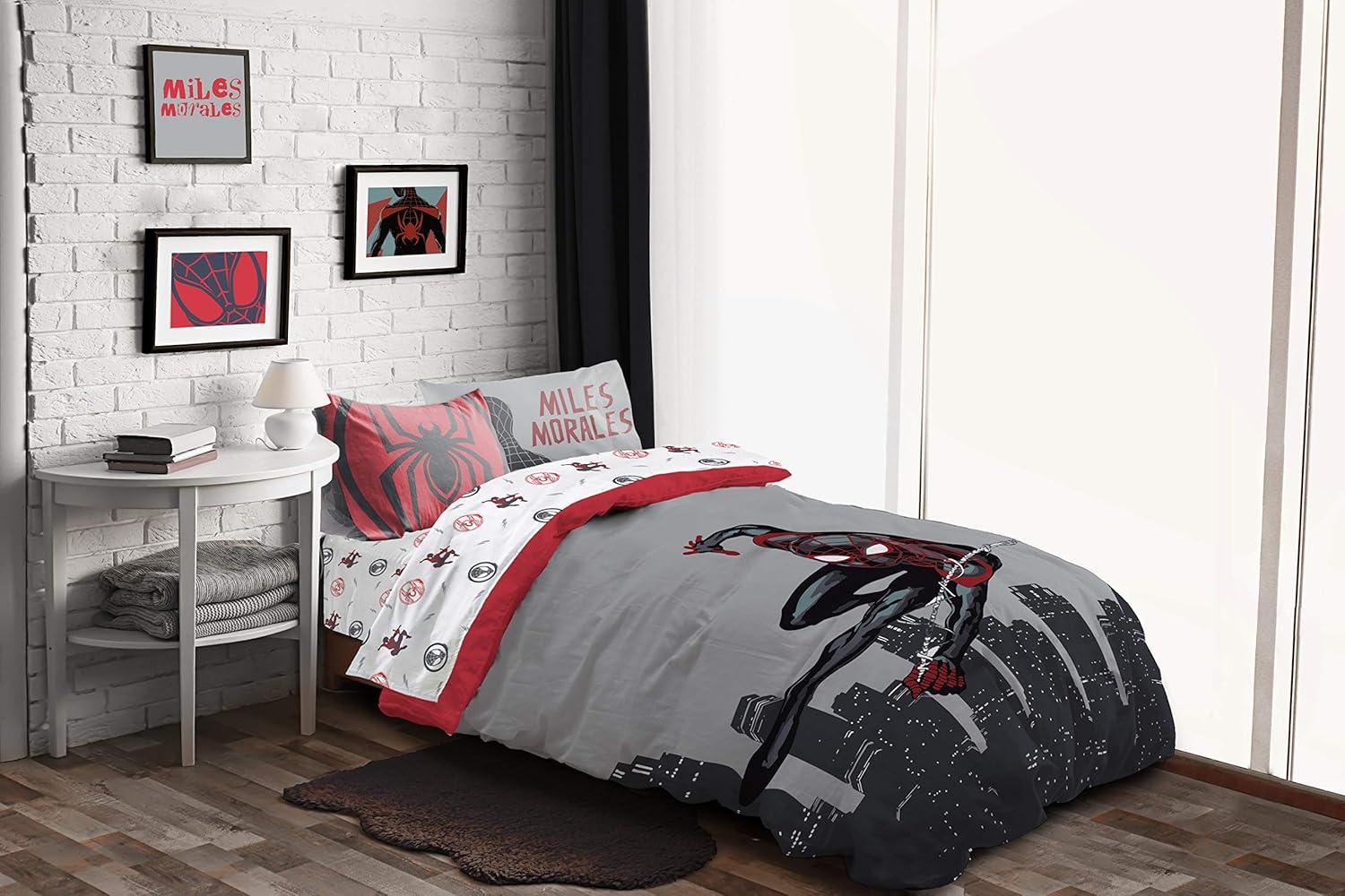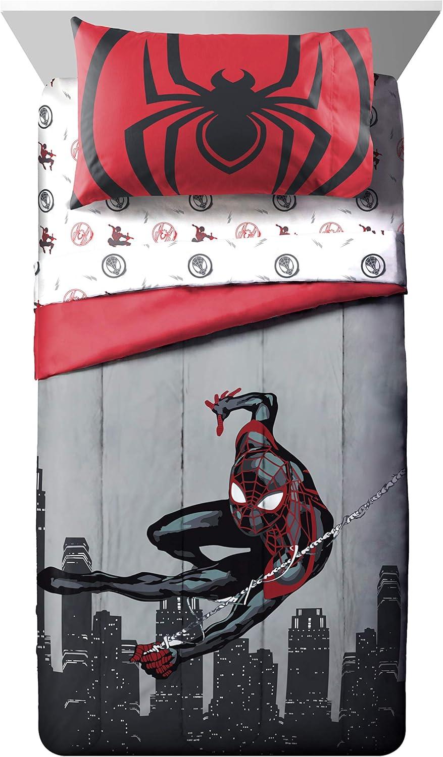 Jay Franco Marvel Spiderman Webtastic 5 Piece Twin Size Bed Set - Includes Reversible Comforter & Sheet Set - Super Soft Kids Bedding Fade Resistant Microfiber (Official Marvel Product)(Gray - Miles Morales)