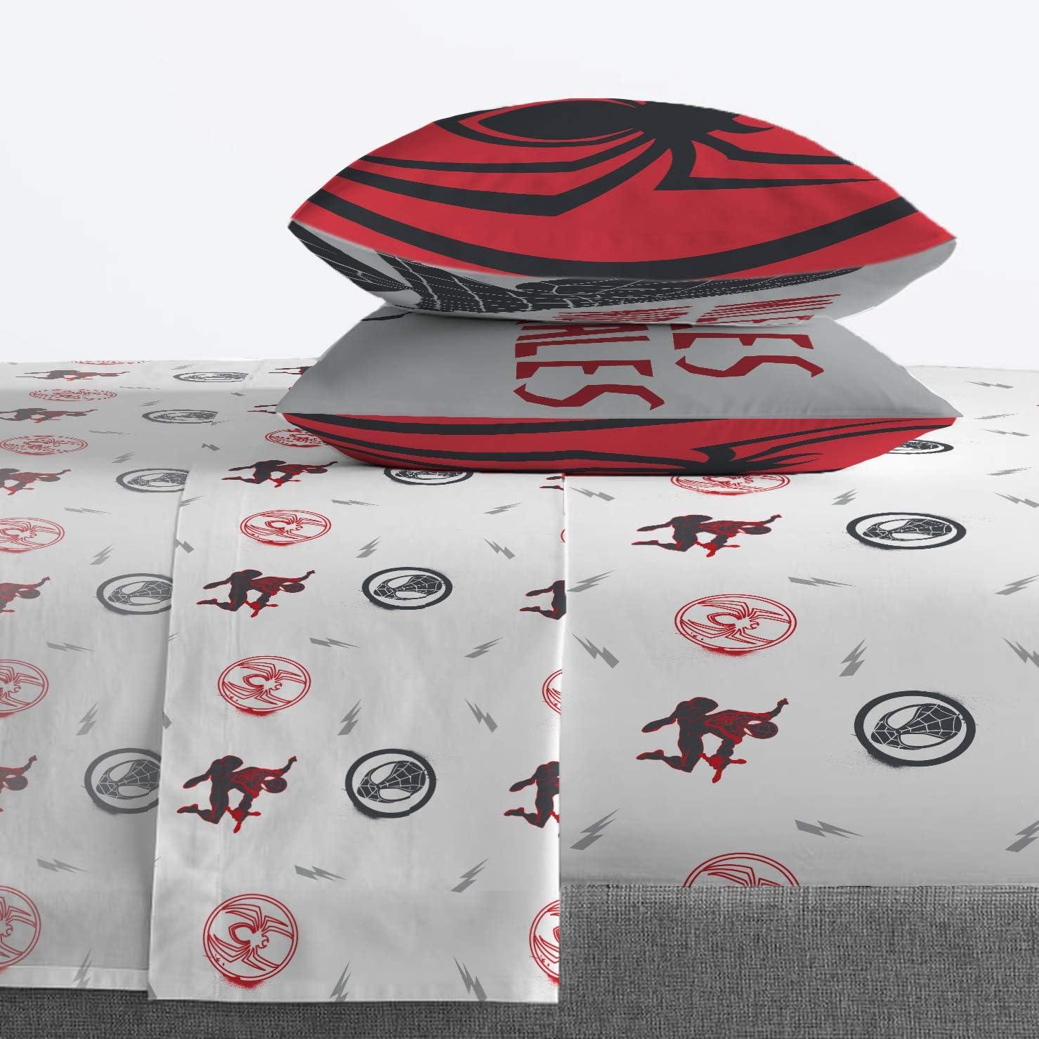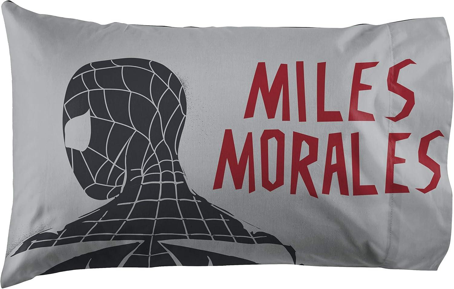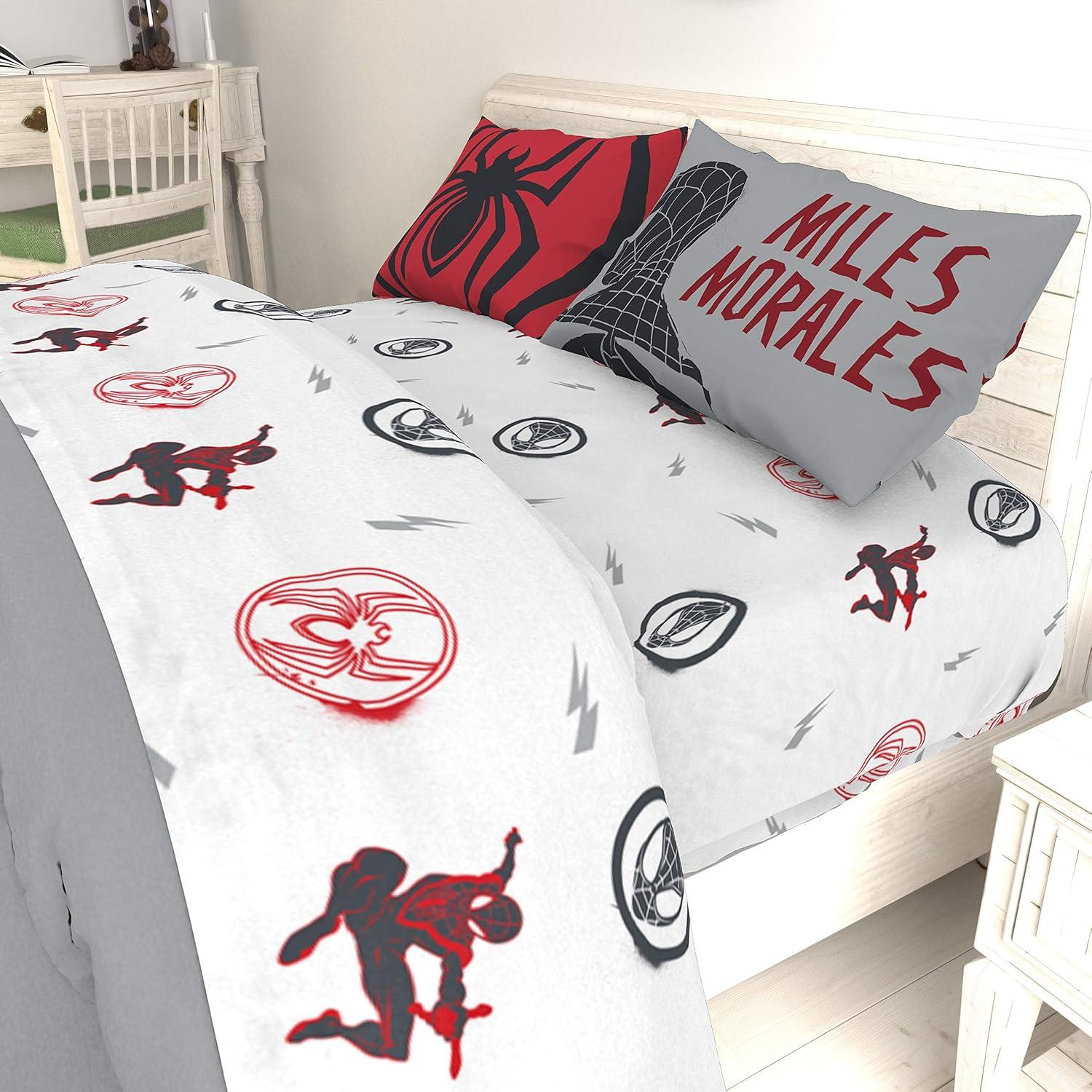 Jay Franco Marvel Spiderman Webtastic 5 Piece Twin Size Bed Set - Includes Reversible Comforter & Sheet Set - Super Soft Kids Bedding Fade Resistant Microfiber (Official Marvel Product)(Gray - Miles Morales)
