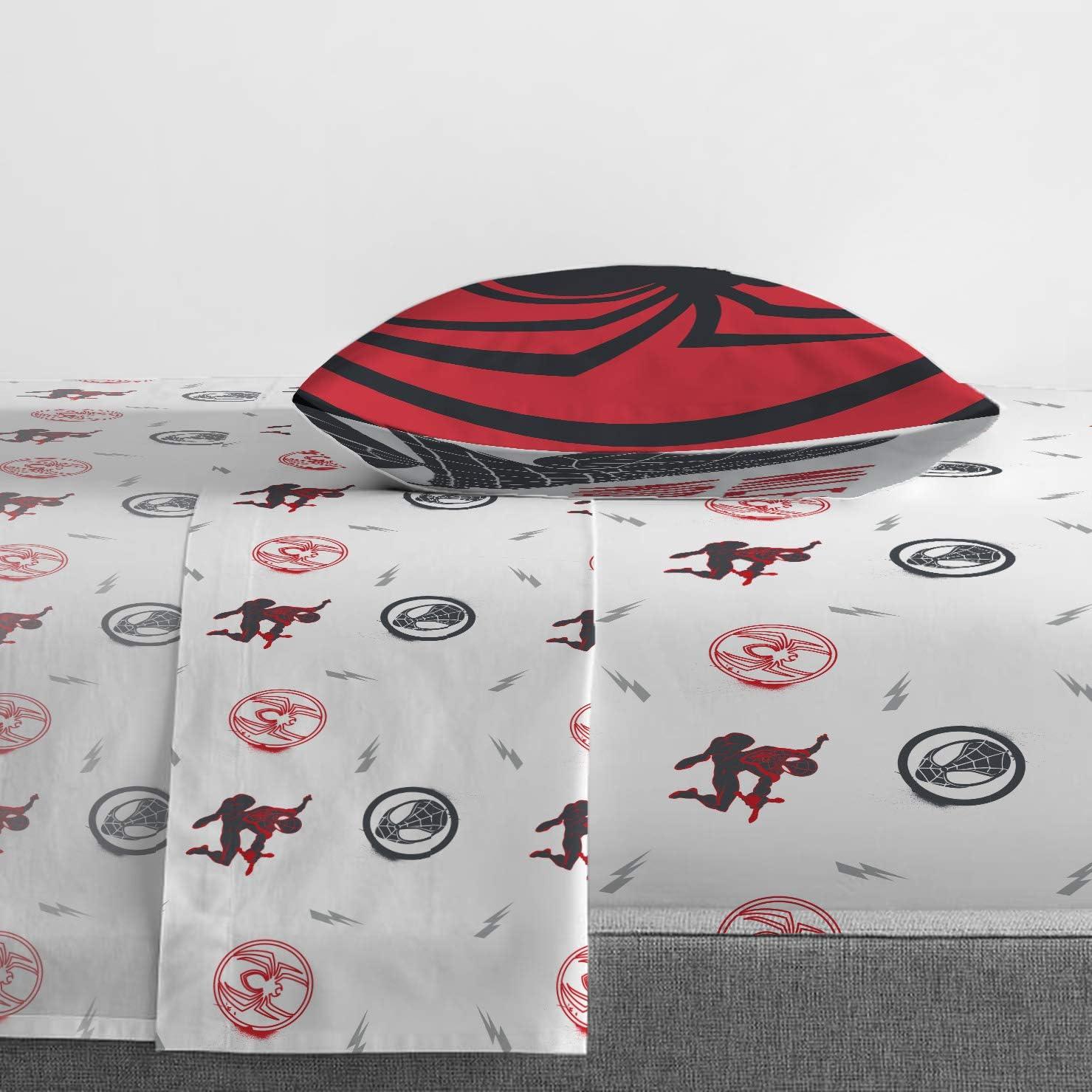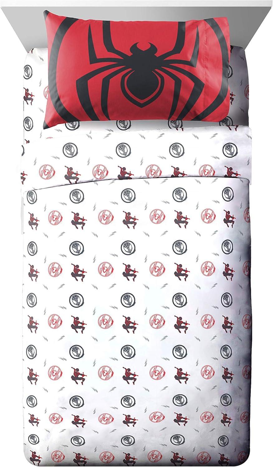 PERFECT FIT & FUN DESIGN – Twin bed set includes (1) 64 x 86 inch twin comforter, (1) 39 x 75 inch fitted sheet, (1) 66 x 96 inch flat sheet, (1) 20 x 30 inch standard pillowcase, and (1) 20 x 26 inch sham. Add a touch of decorative enchantment to your room with our fashionable and super soft Spiderman bed set.