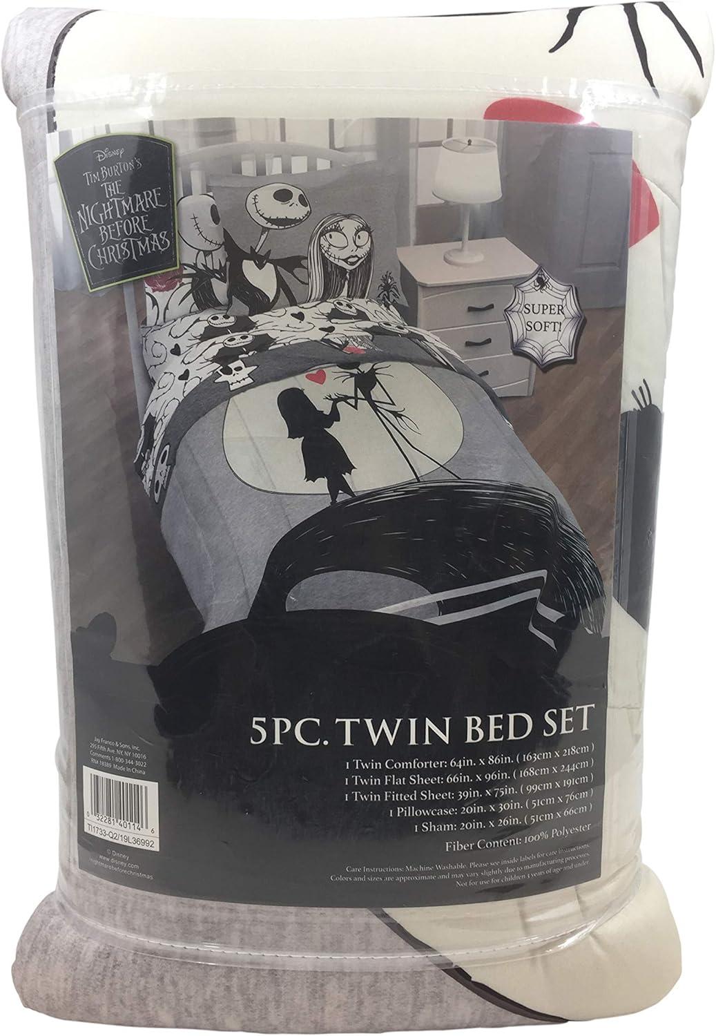 Jay Franco Marvel Spiderman Webtastic 5 Piece Twin Size Bed Set - Includes Reversible Comforter & Sheet Set - Super Soft Kids Bedding Fade Resistant Microfiber (Official Marvel Product)(Gray - Nightmare Before Christmas)