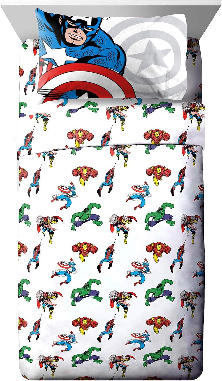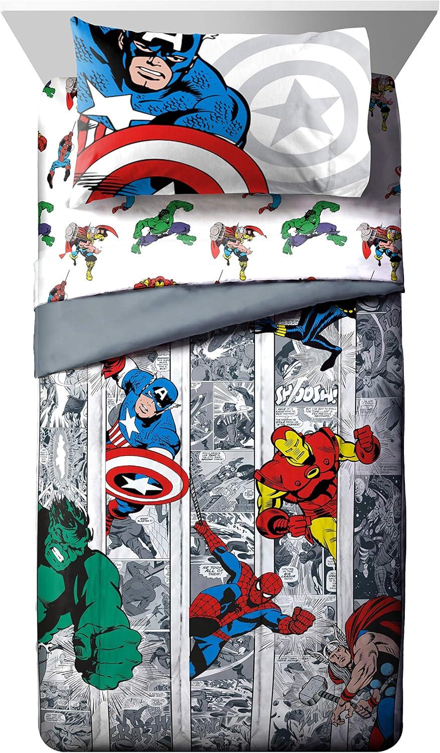 Jay Franco Marvel Spiderman Webtastic 5 Piece Twin Size Bed Set - Includes Reversible Comforter & Sheet Set - Super Soft Kids Bedding Fade Resistant Microfiber (Official Marvel Product)(Multi - Avengers)