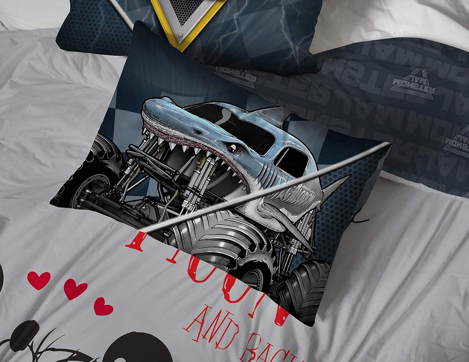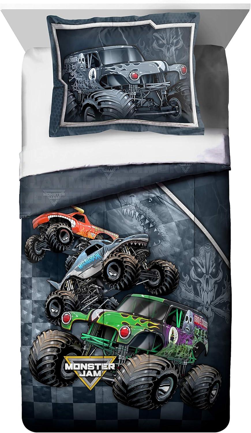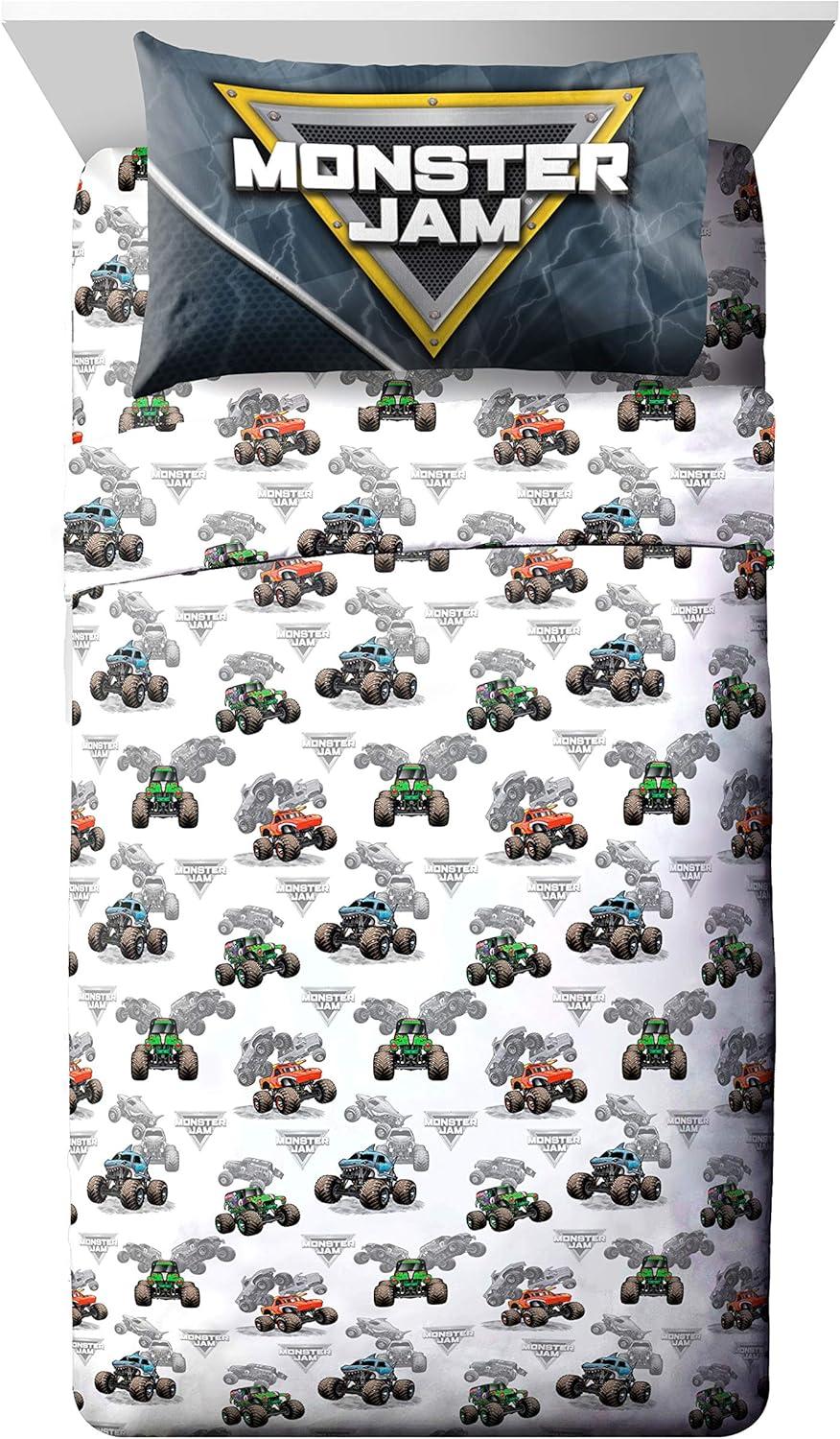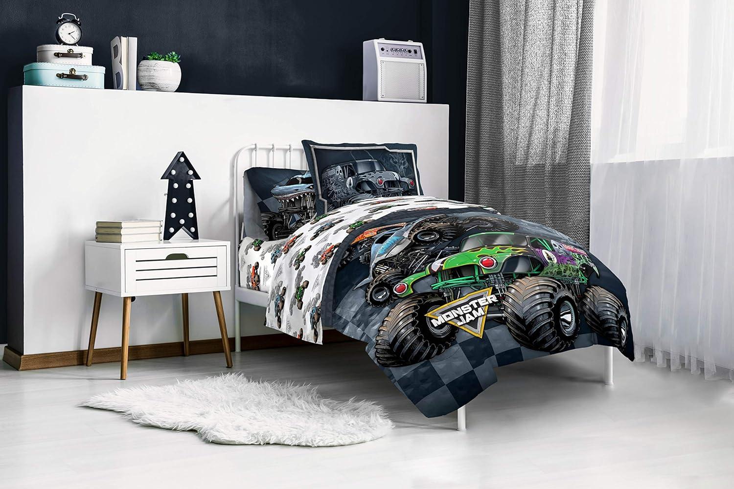 Jay Franco Marvel Spiderman Webtastic 5 Piece Twin Size Bed Set - Includes Reversible Comforter & Sheet Set - Super Soft Kids Bedding Fade Resistant Microfiber (Official Marvel Product)(Multi - Monster Jam)