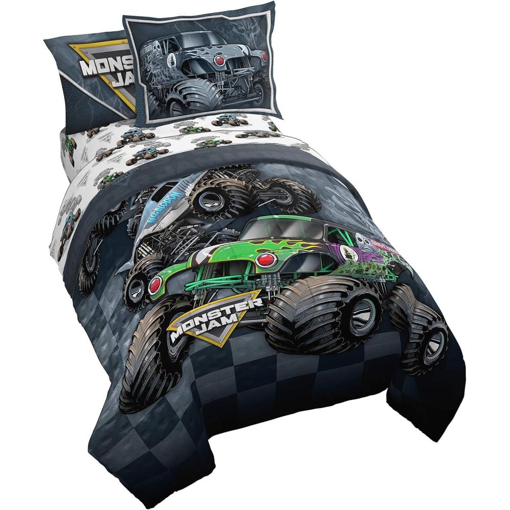 imageJay Franco Marvel Spiderman Webtastic 5 Piece Twin Size Bed Set  Includes Reversible Comforter ampamp Sheet Set  Super Soft Kids Bedding Fade Resistant Microfiber Official Marvel ProductMulti  Monster Jam