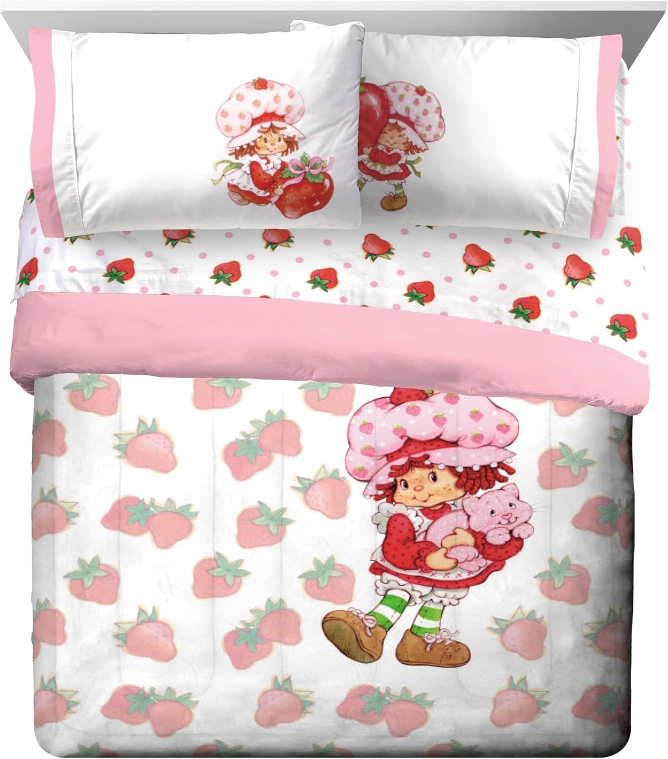 Jay Franco Marvel Spiderman Webtastic 5 Piece Twin Size Bed Set - Includes Reversible Comforter & Sheet Set - Super Soft Kids Bedding Fade Resistant Microfiber (Official Marvel Product)(Pink - Strawberry Shortcake)