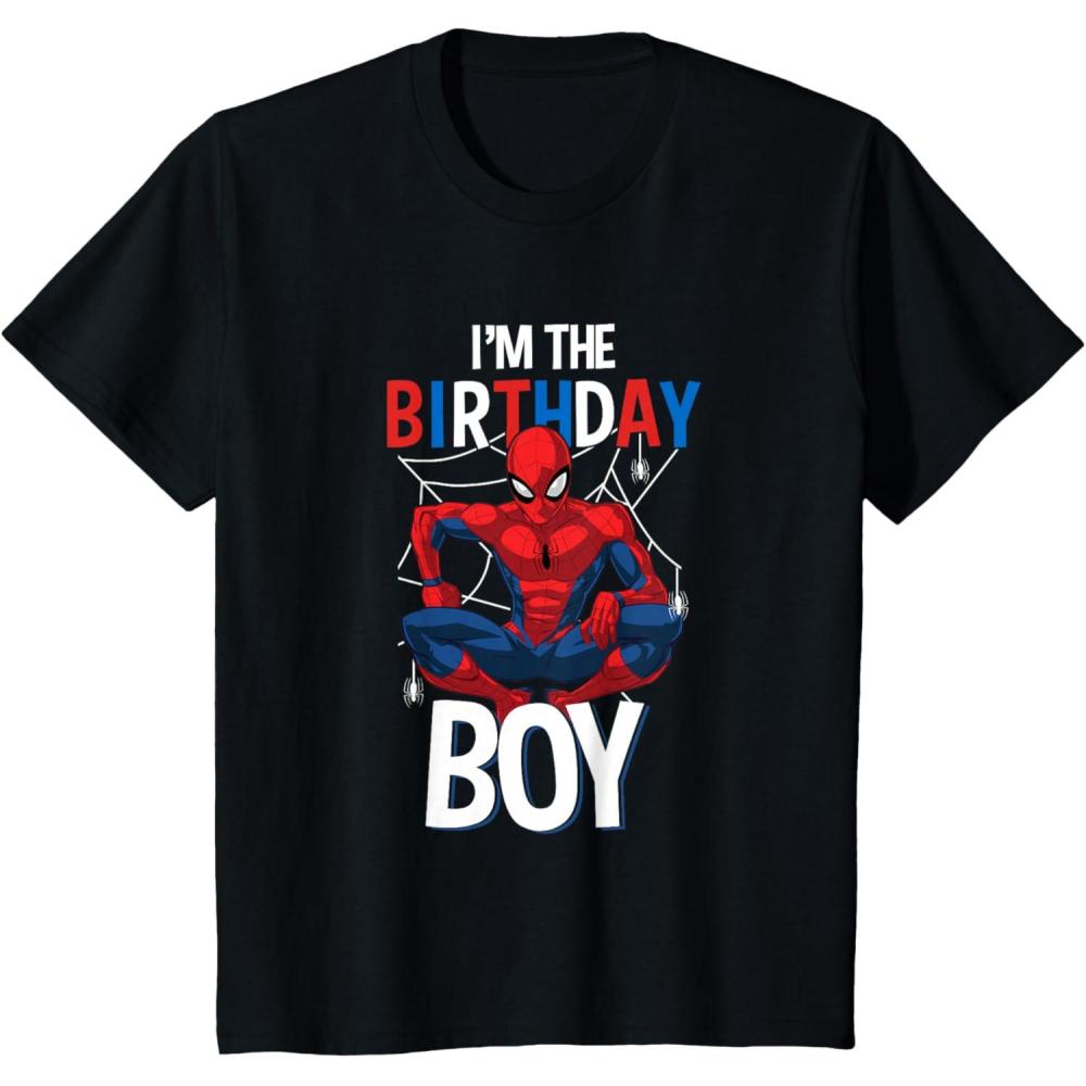 Kids Marvel Comics Spider-Man Classic I’m The Birthday Boy T-Shirt(Black)