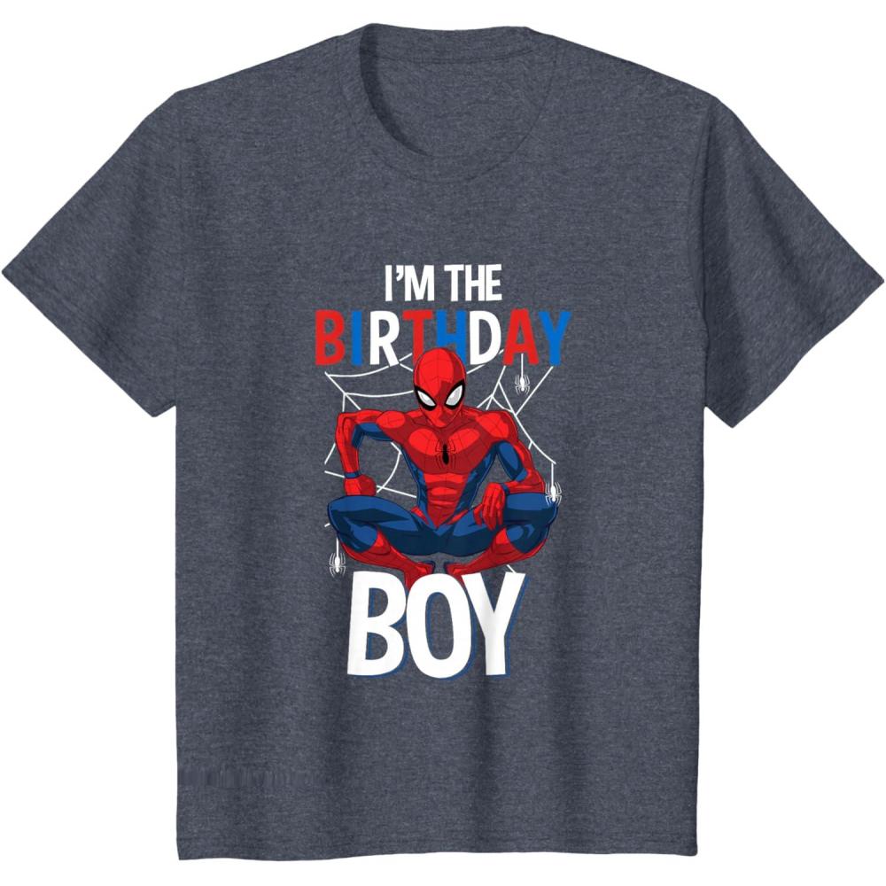 Kids Marvel Comics Spider-Man Classic I’m The Birthday Boy T-Shirt(Heather Blue)