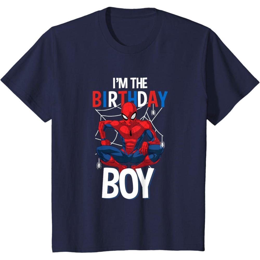 Kids Marvel Comics Spider-Man Classic I’m The Birthday Boy T-Shirt(Navy Blue)