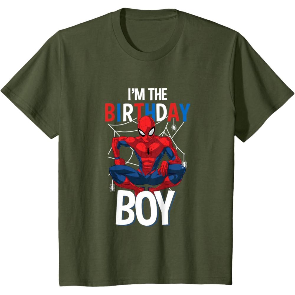 Kids Marvel Comics Spider-Man Classic I’m The Birthday Boy T-Shirt(Olive Green)