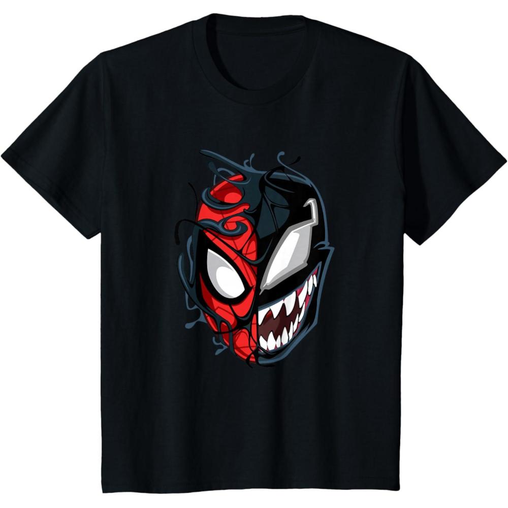 Kids Marvel Spider-Man Classic Venom Peter Parker Split Mask T-Shirt(Black)