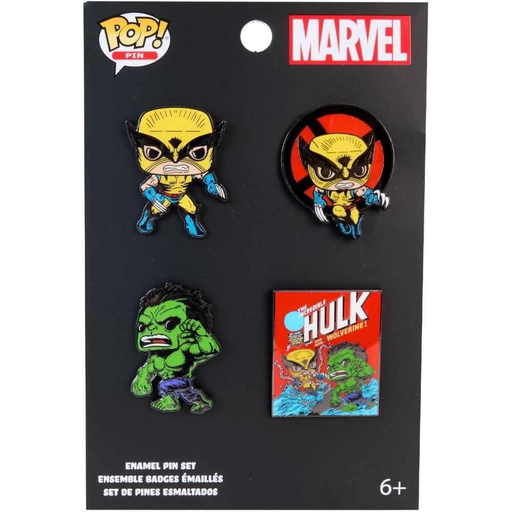 This 4-pack assortment features Pop! Hulk, Pop! Wolverine, Pop! Wolverine (X-Men Logo), and the cover of The Incredible Hulk #181.