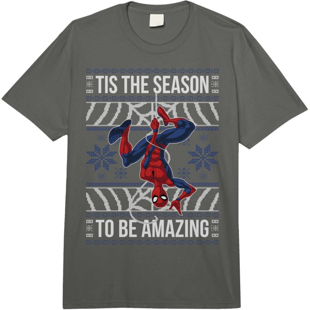 Marvel Amazing Spider-Man Ugly Christmas Sweater Comfort Colors Adult Heavyweight T-shirt(Dark Grey)