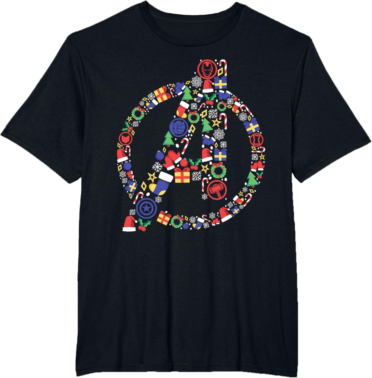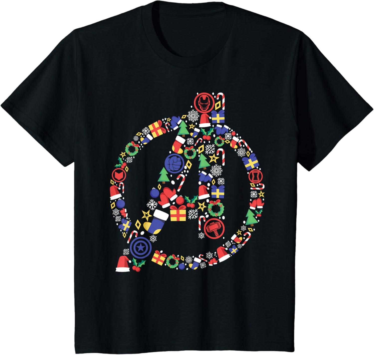 Marvel Avengers A Logo Symbol Holiday Christmas Icons T-Shirt(Black)