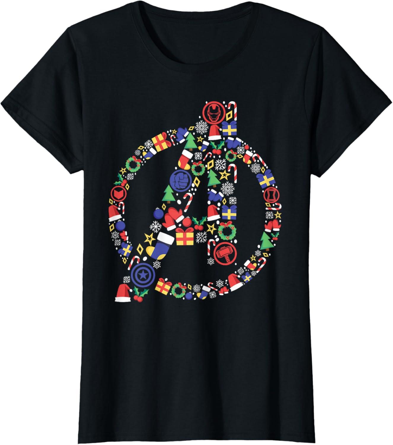 imageMarvel Avengers A Logo Symbol Holiday Christmas Icons TShirtBlack