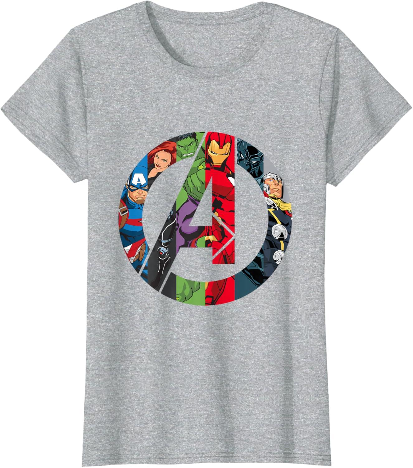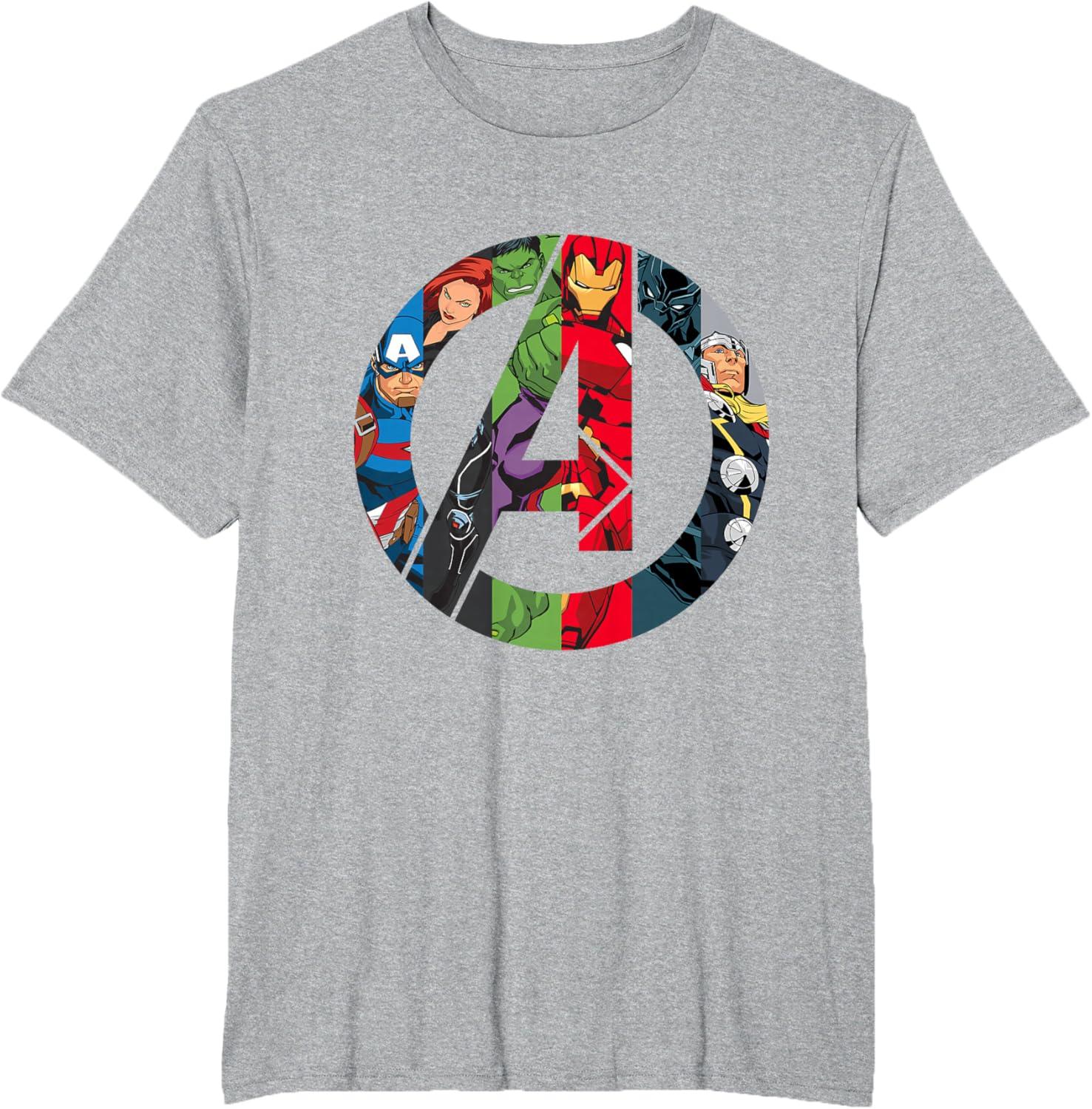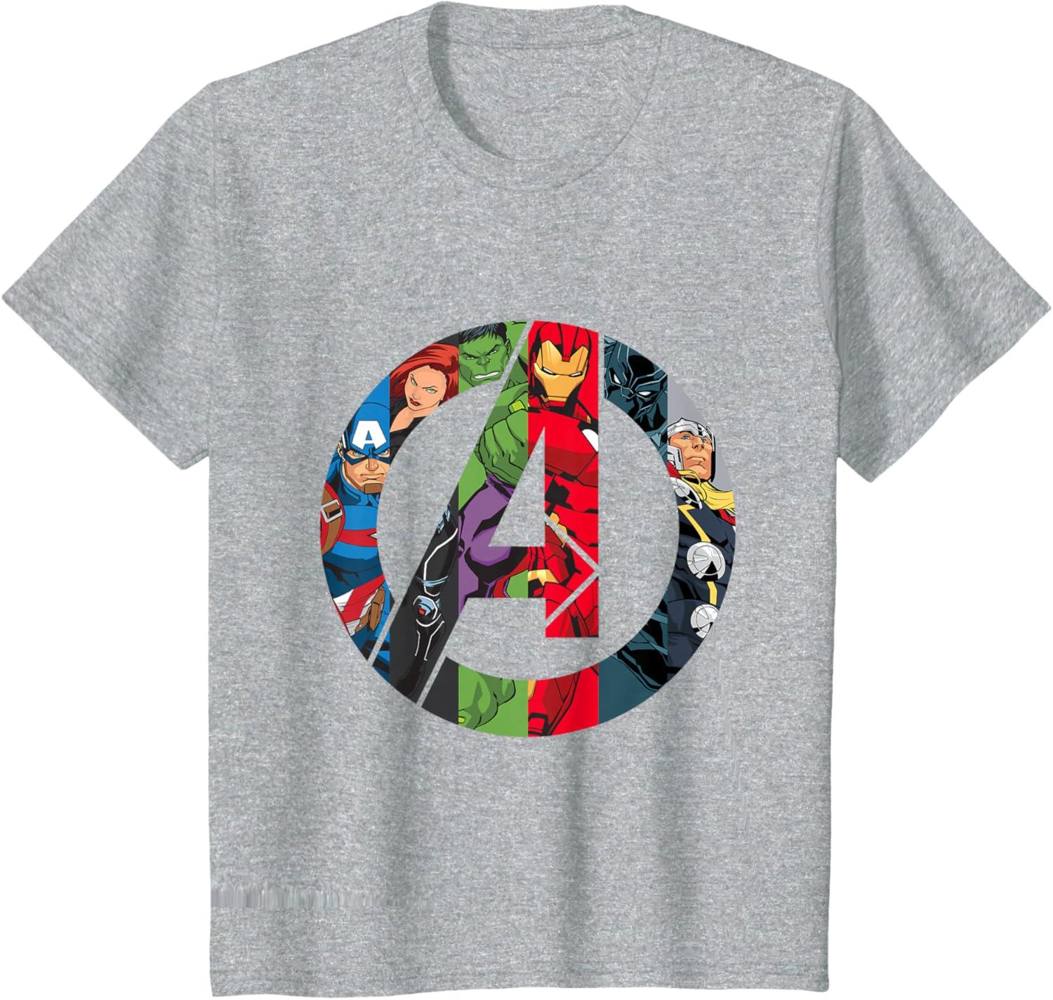 The Avengers come together on this awesome “A” logo graphic tee shirt. Captain America, Black Widow, Hulk, Iron Man, Black Panther, and Thor are illustrated inside the Avengers logo in their classic comic style. This cool t-shirt is sure to add some Super Hero power to your wardrobe.