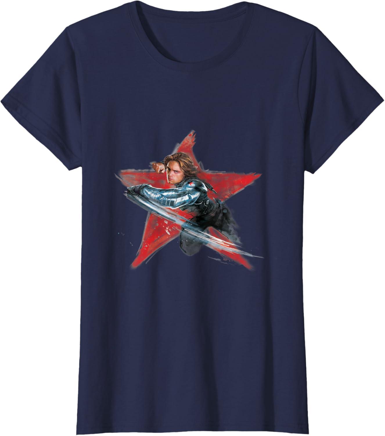 You’ll pack a powerful punch with this bold Bucky Barnes official tee or hoodie featuring a vibrant illustration of the assassin called Winter Soldier. With a stunning art style that showcases his red star Super Hero icon, this Marvel official tee or hoodie is a must-have for fans. Available in youth and adult sizes. Find it in a t-shirt, premium t-shirt, tank top, v-neck, long sleeve tee, hoodie, and sweatshirt.