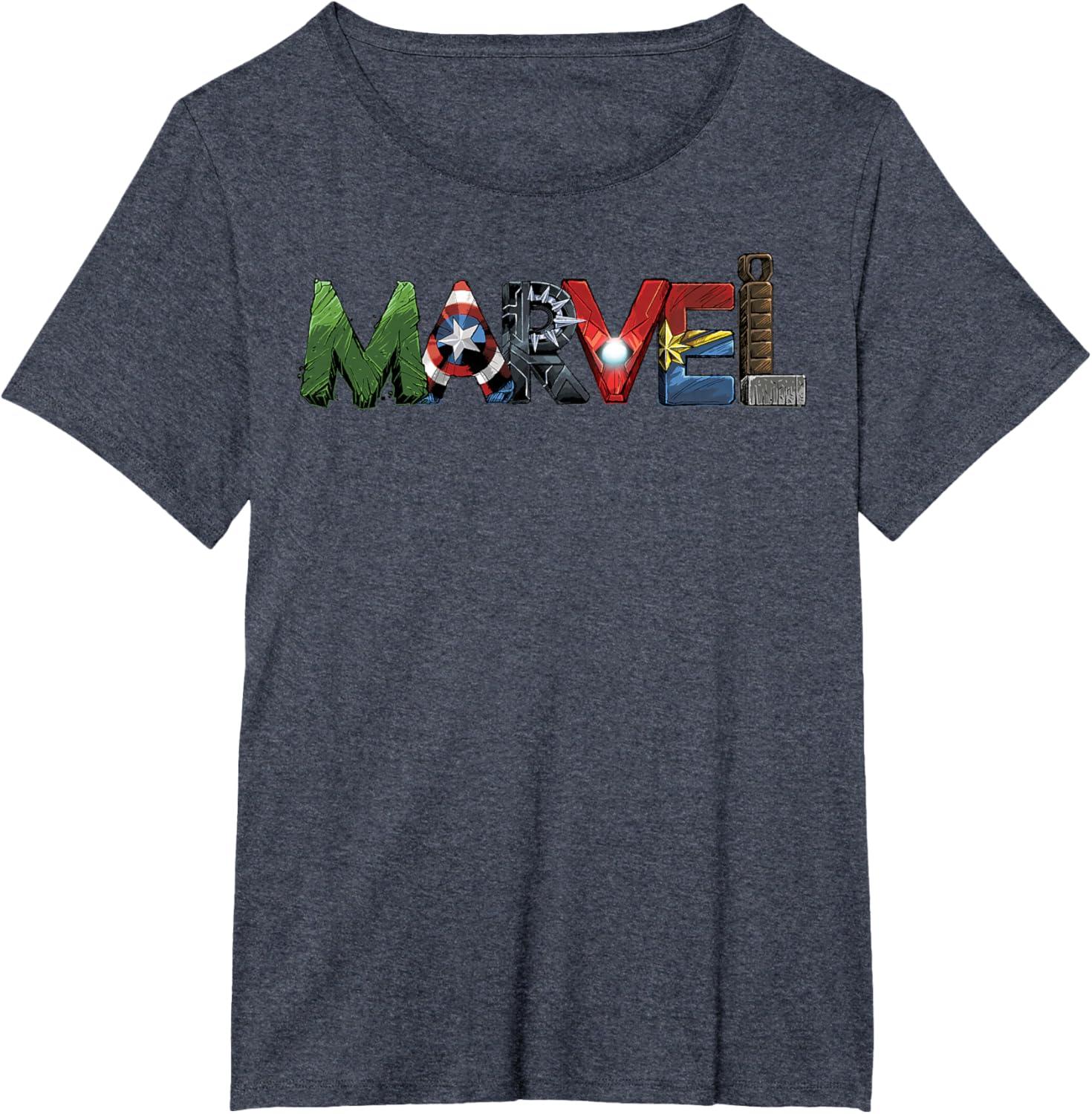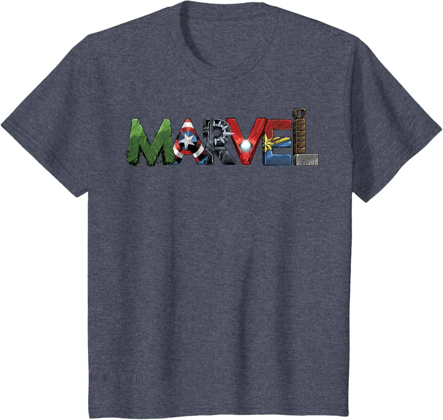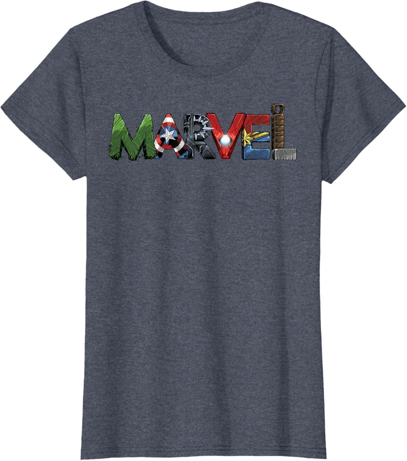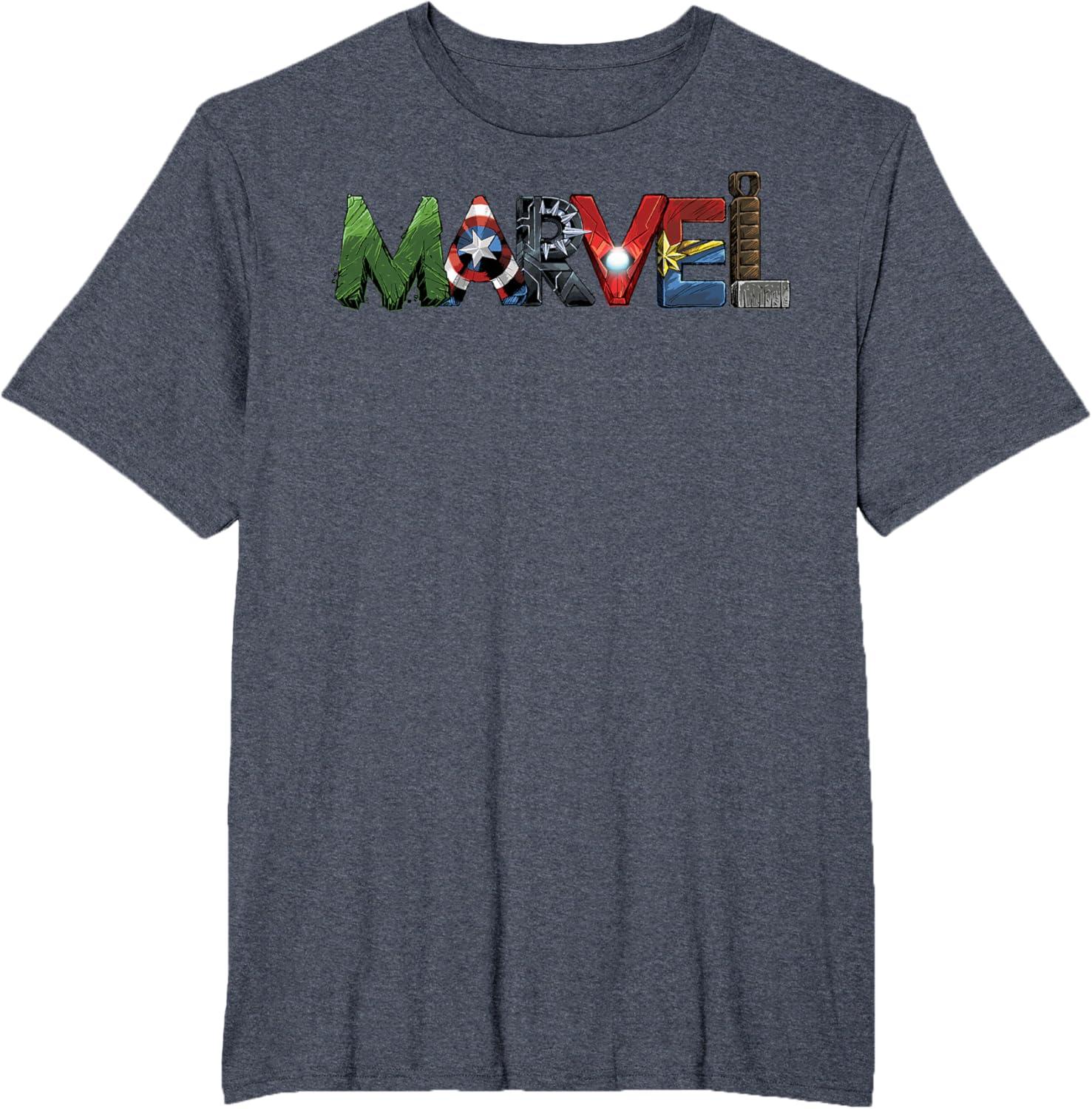 Marvel Avengers Character Text Portrait T-Shirt(Heather Blue)