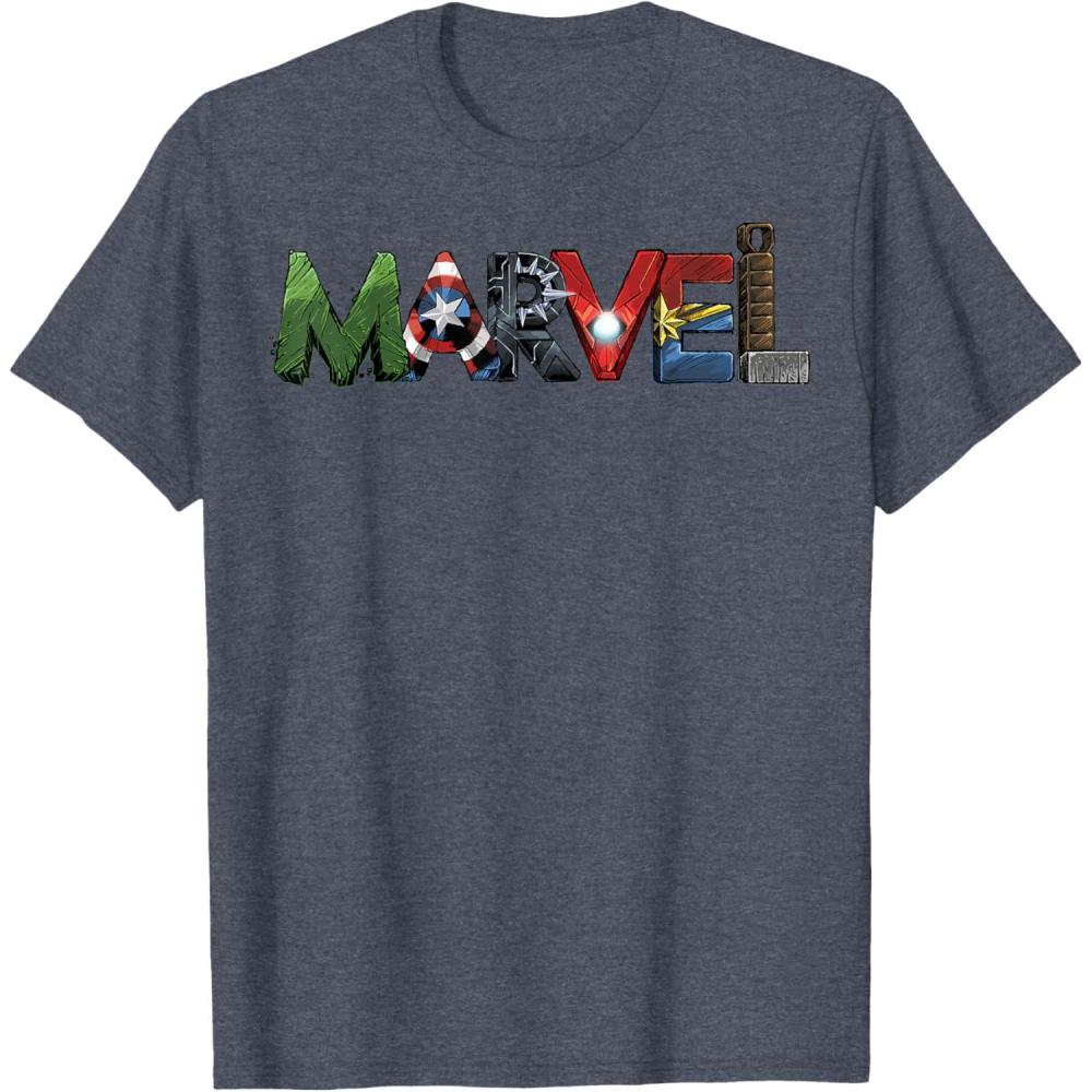 Marvel Avengers Character Text Portrait T-Shirt(Heather Grey)