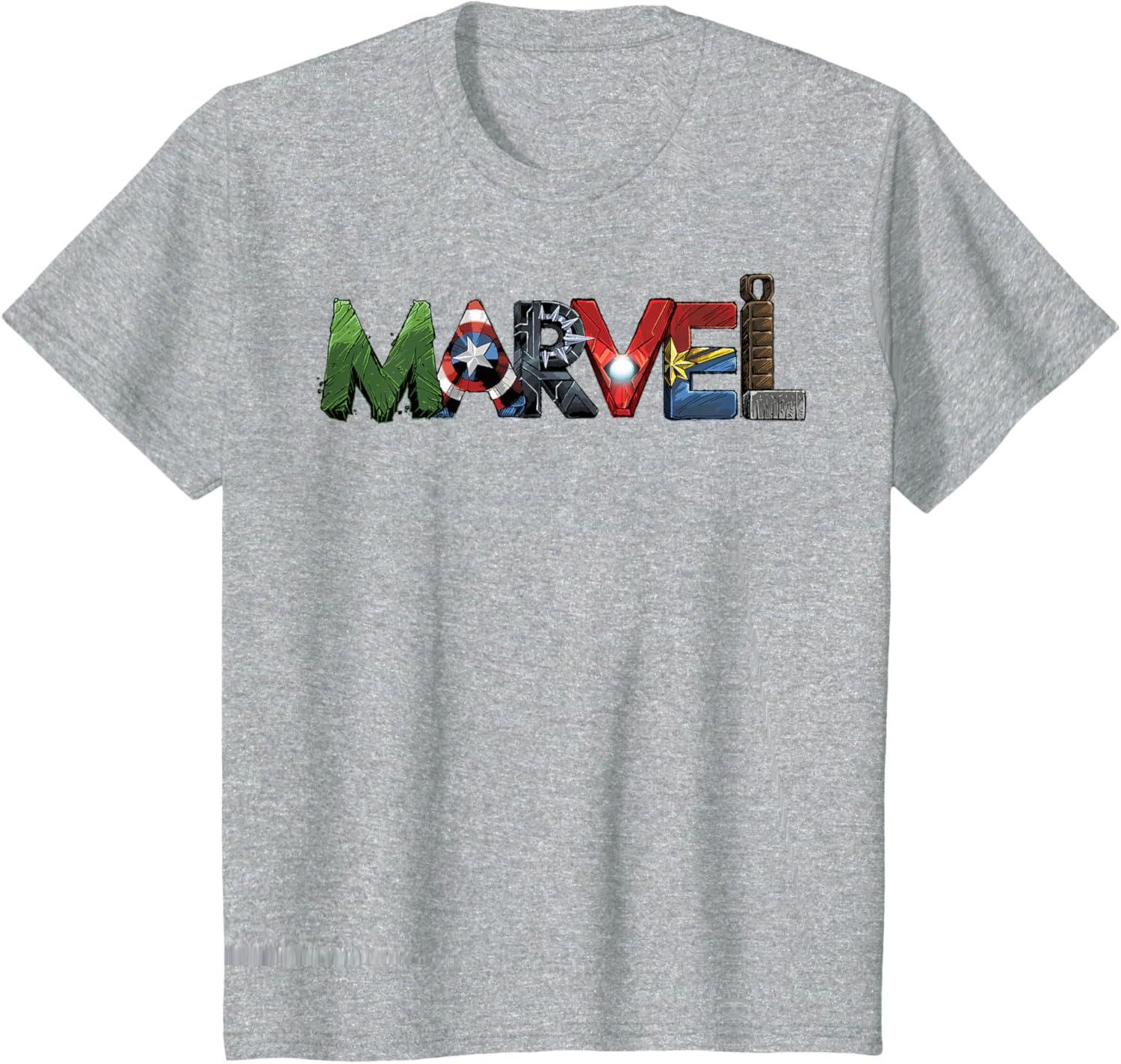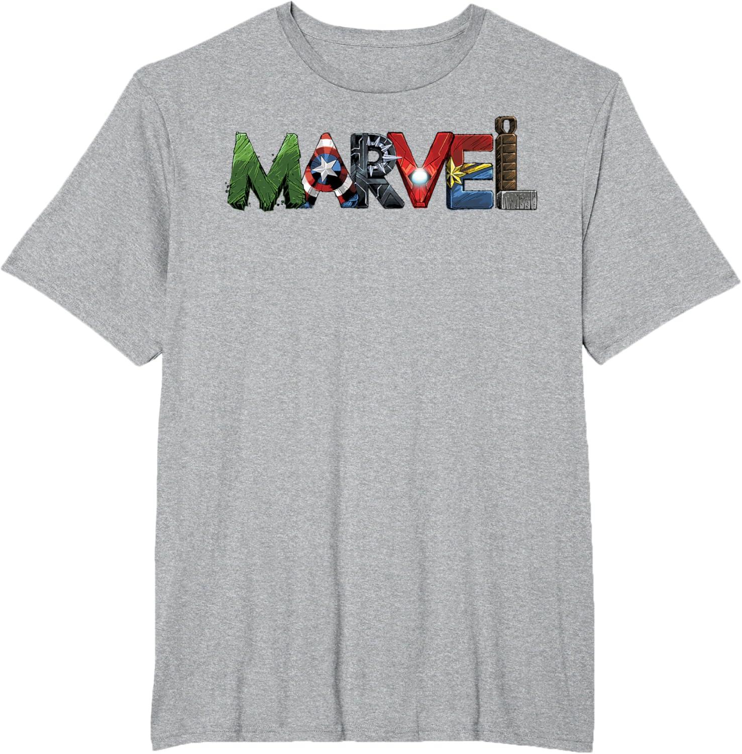 Marvel Avengers Character Text Portrait T-Shirt(Heather Grey)