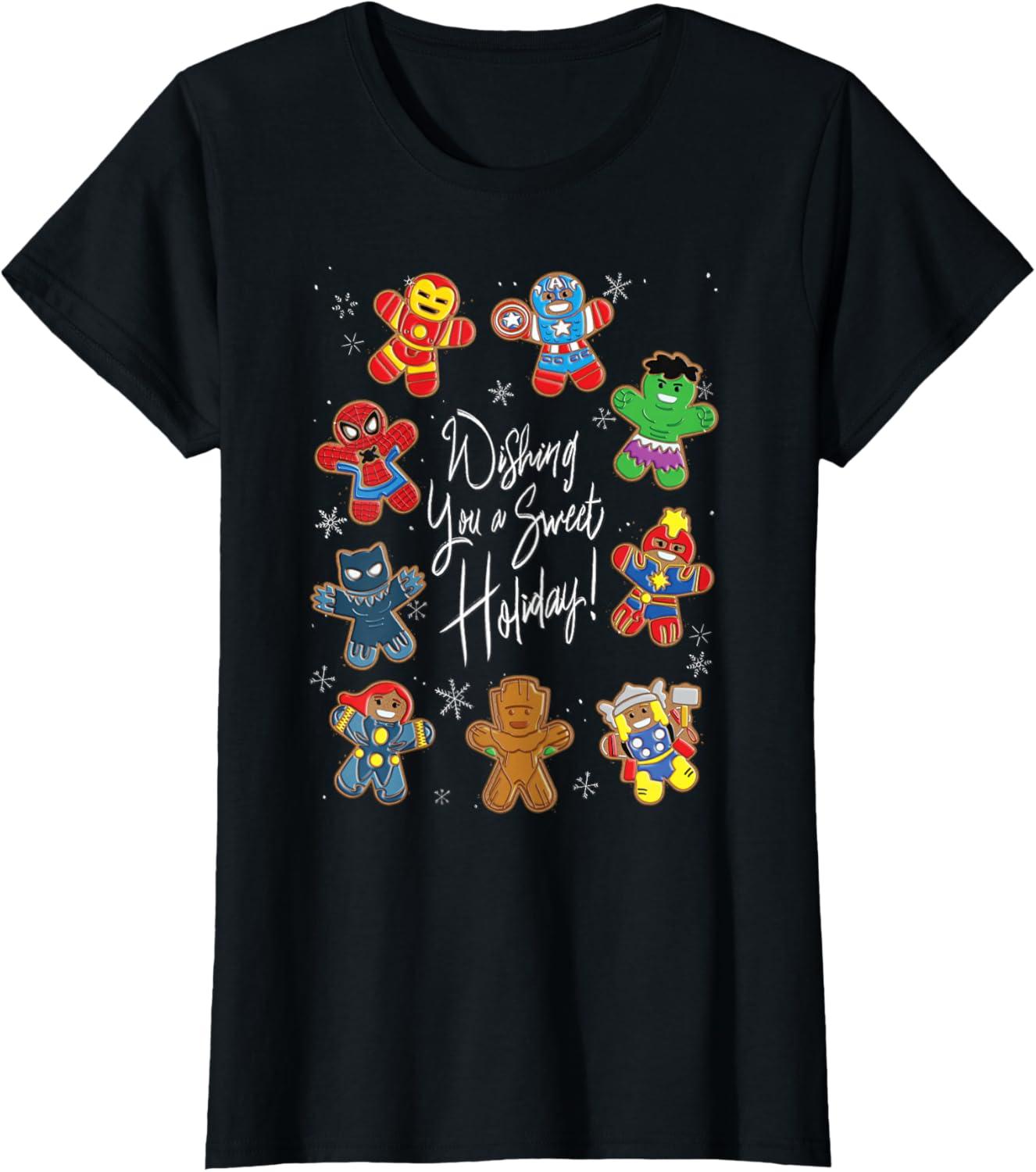 Don’t wait, get up to 50% off on Marvel Avengers Christmas Gingerbread Wishing Sweet Holiday T-Shirt(Black) during our end-of-season sale event.