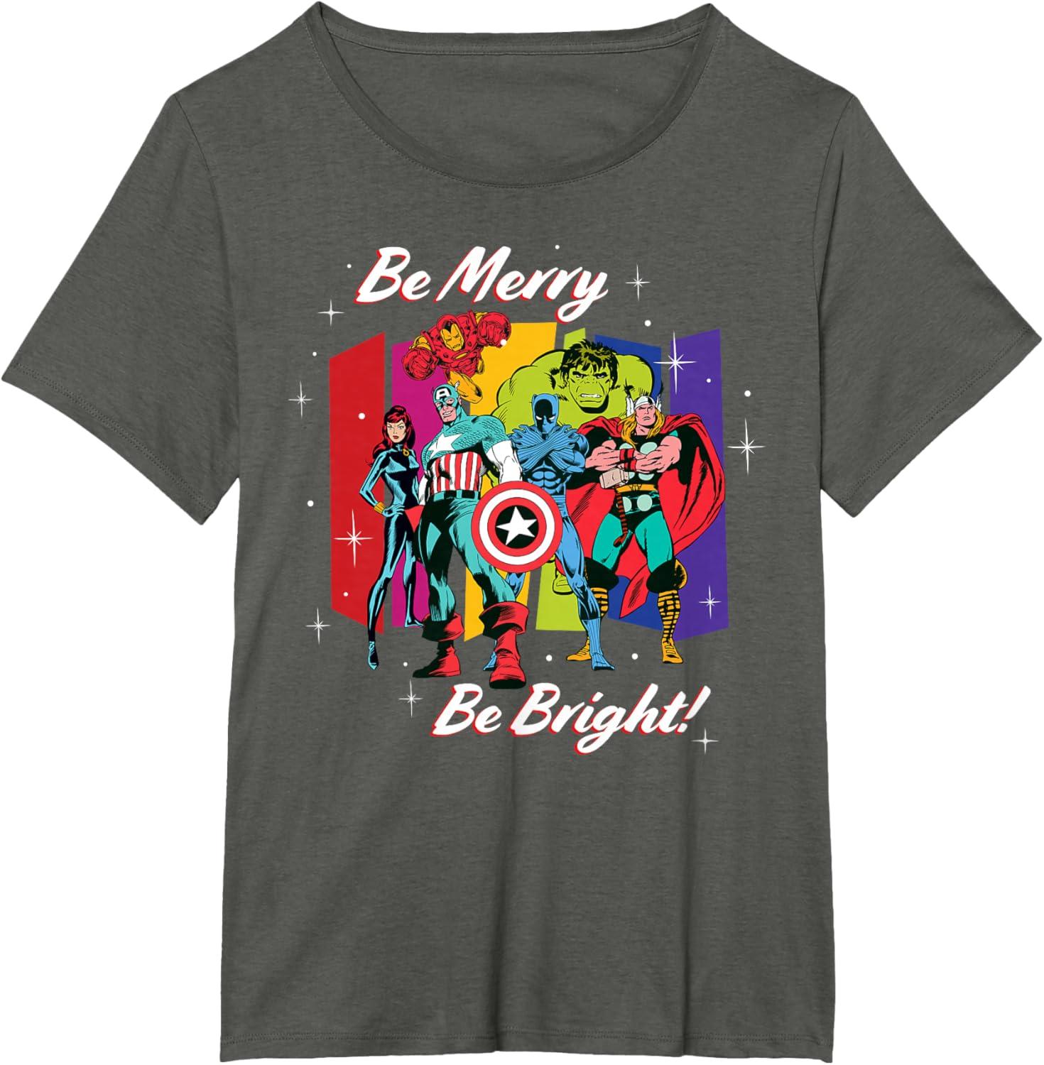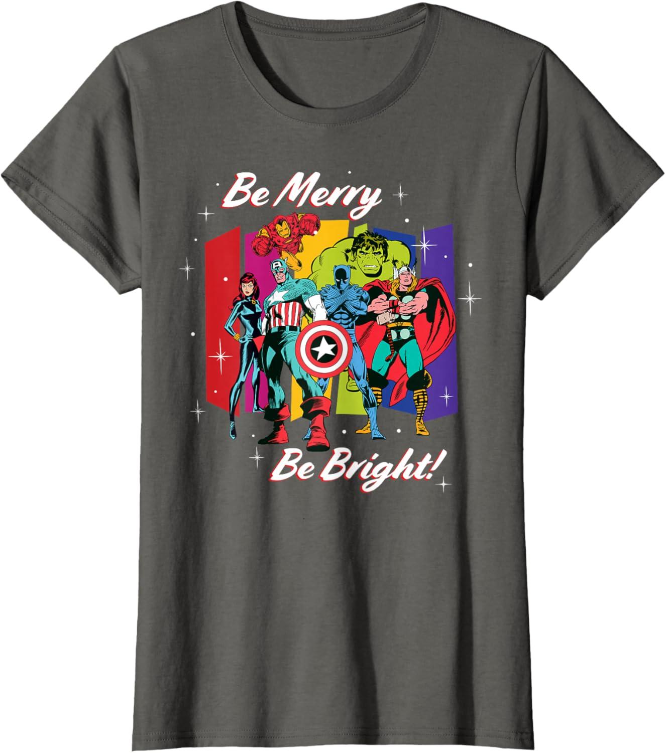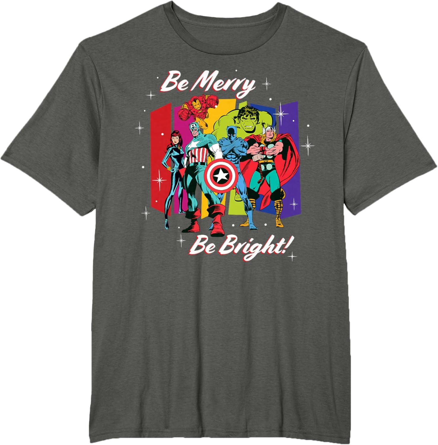 Marvel Avengers Christmas Holiday Retro Be Merry Be Bright! T-Shirt(Asphalt Grey)