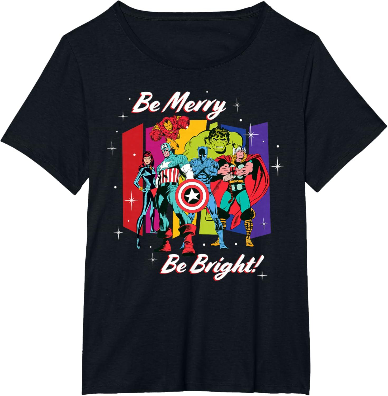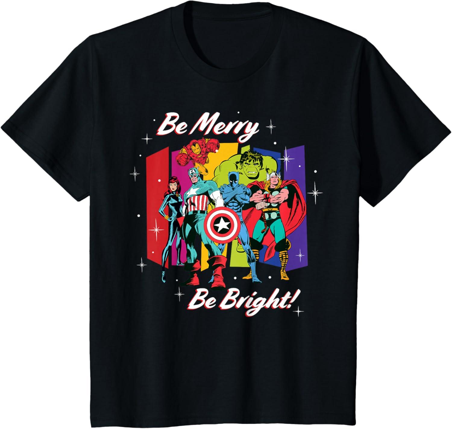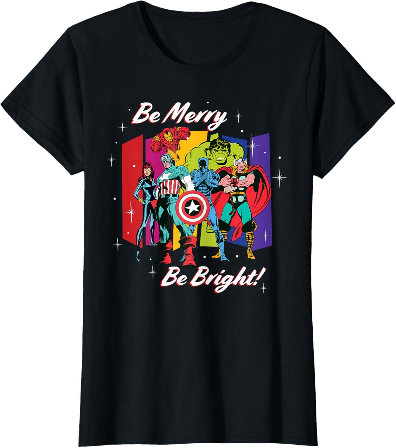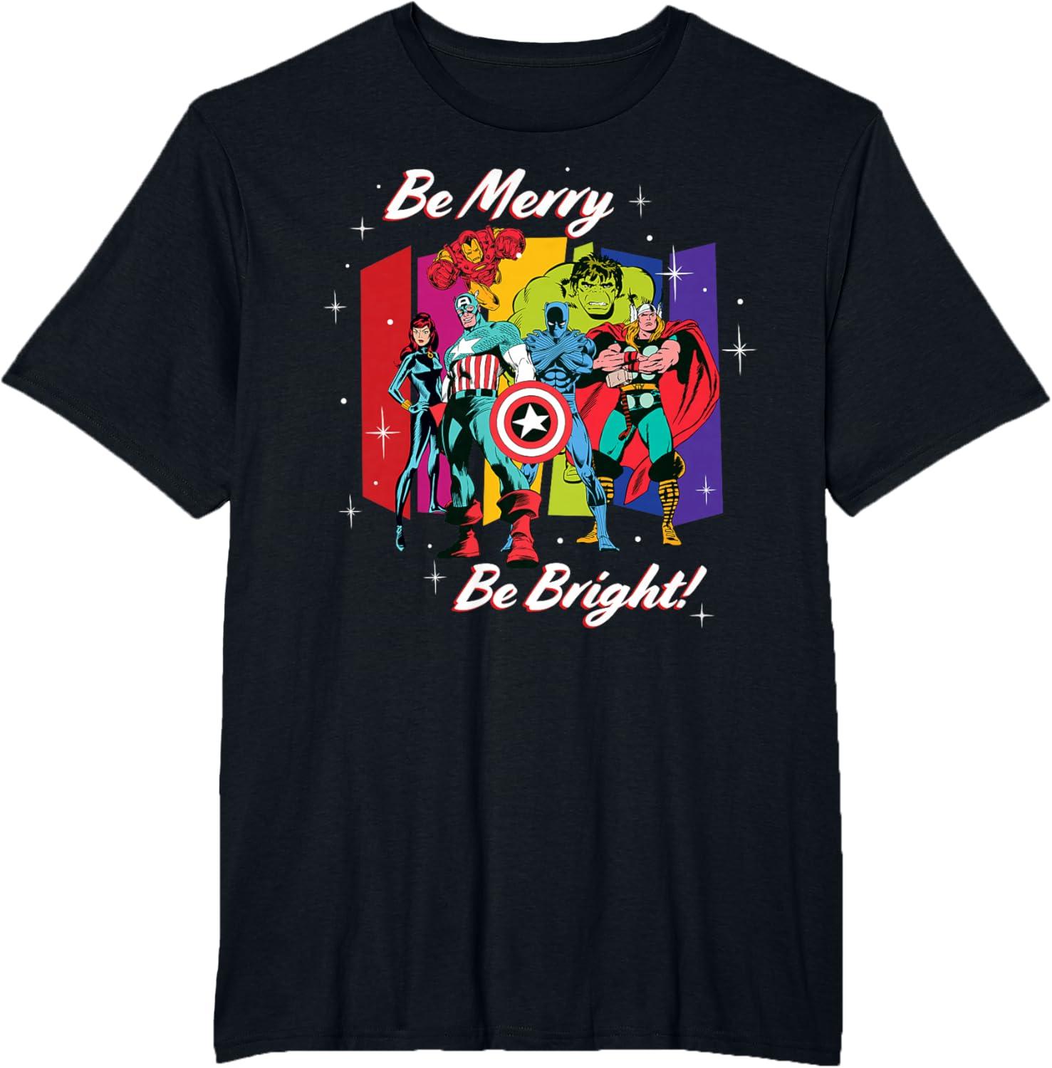 Marvel Avengers Christmas Holiday Retro Be Merry Be Bright! T-Shirt(Black)