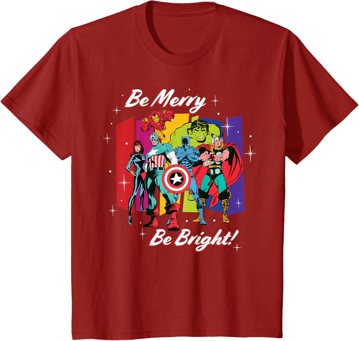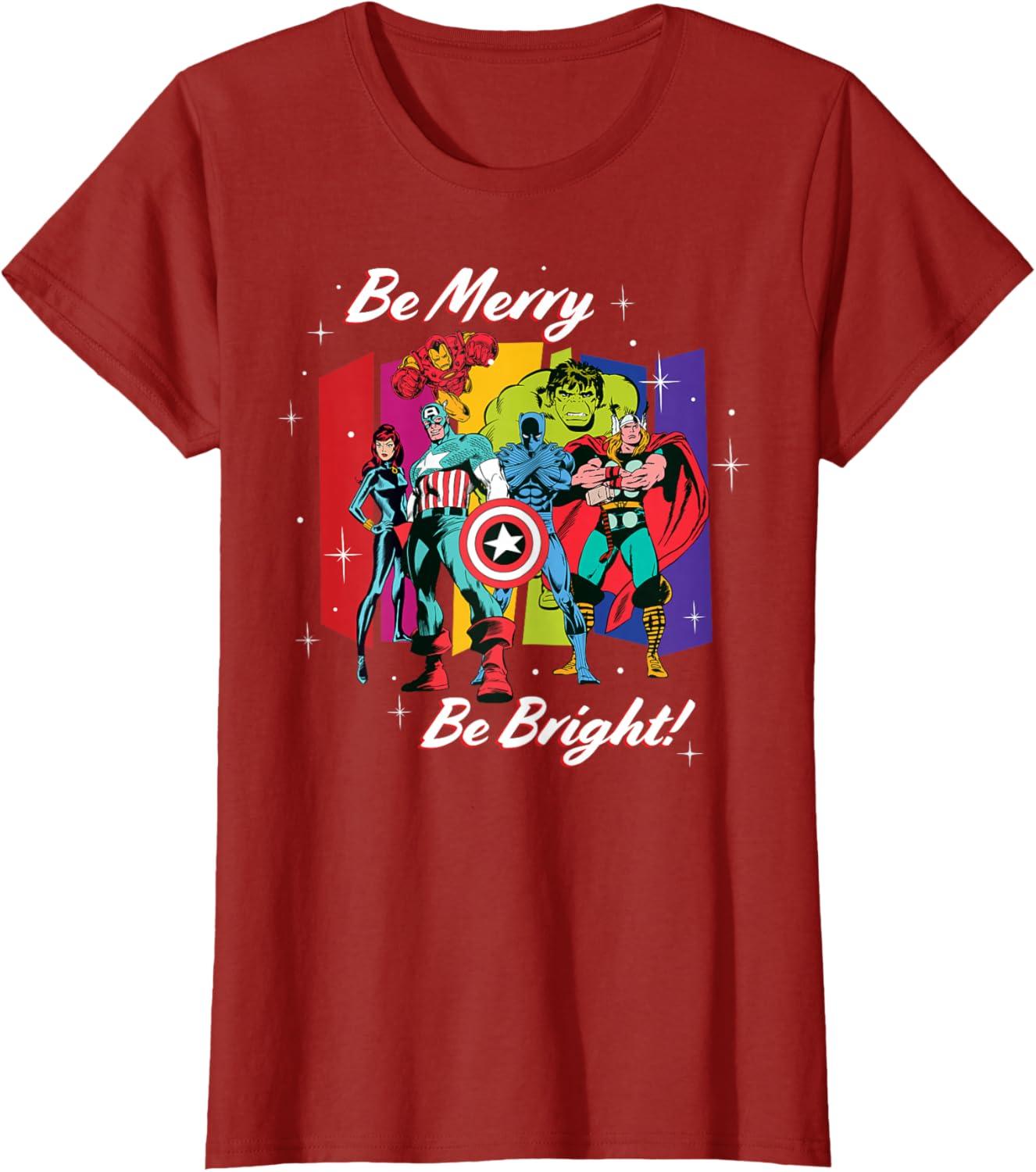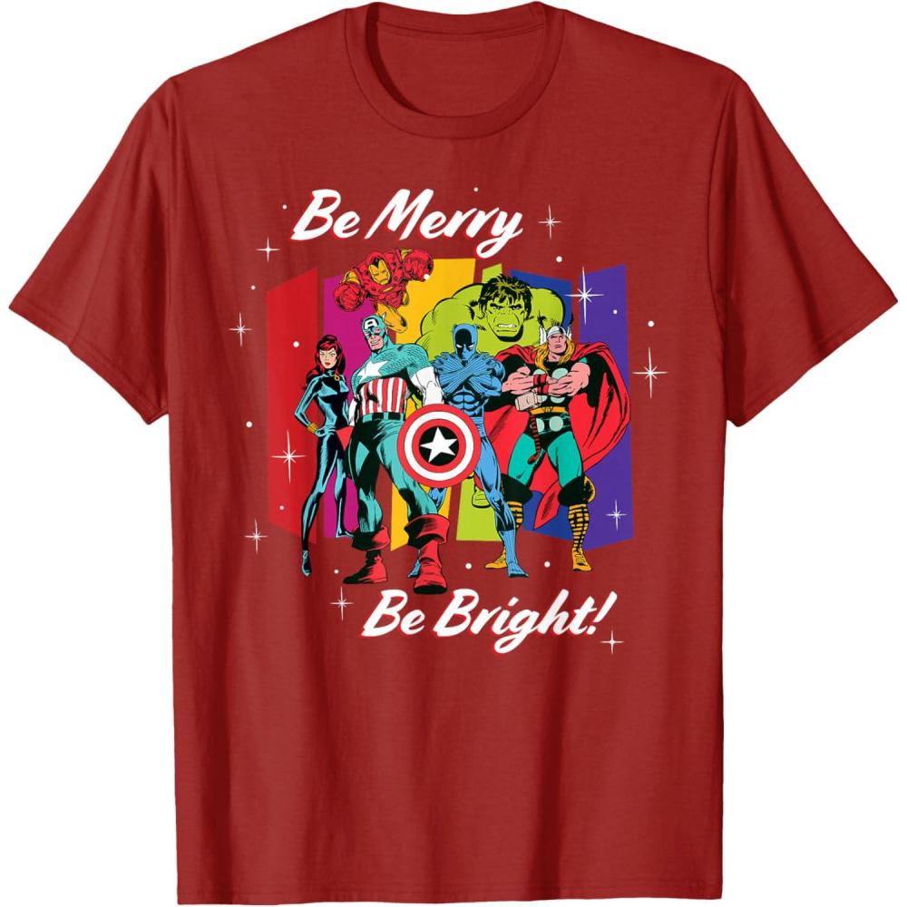 Marvel Avengers Christmas Holiday Retro Be Merry Be Bright! T-Shirt(Cranberry Red)