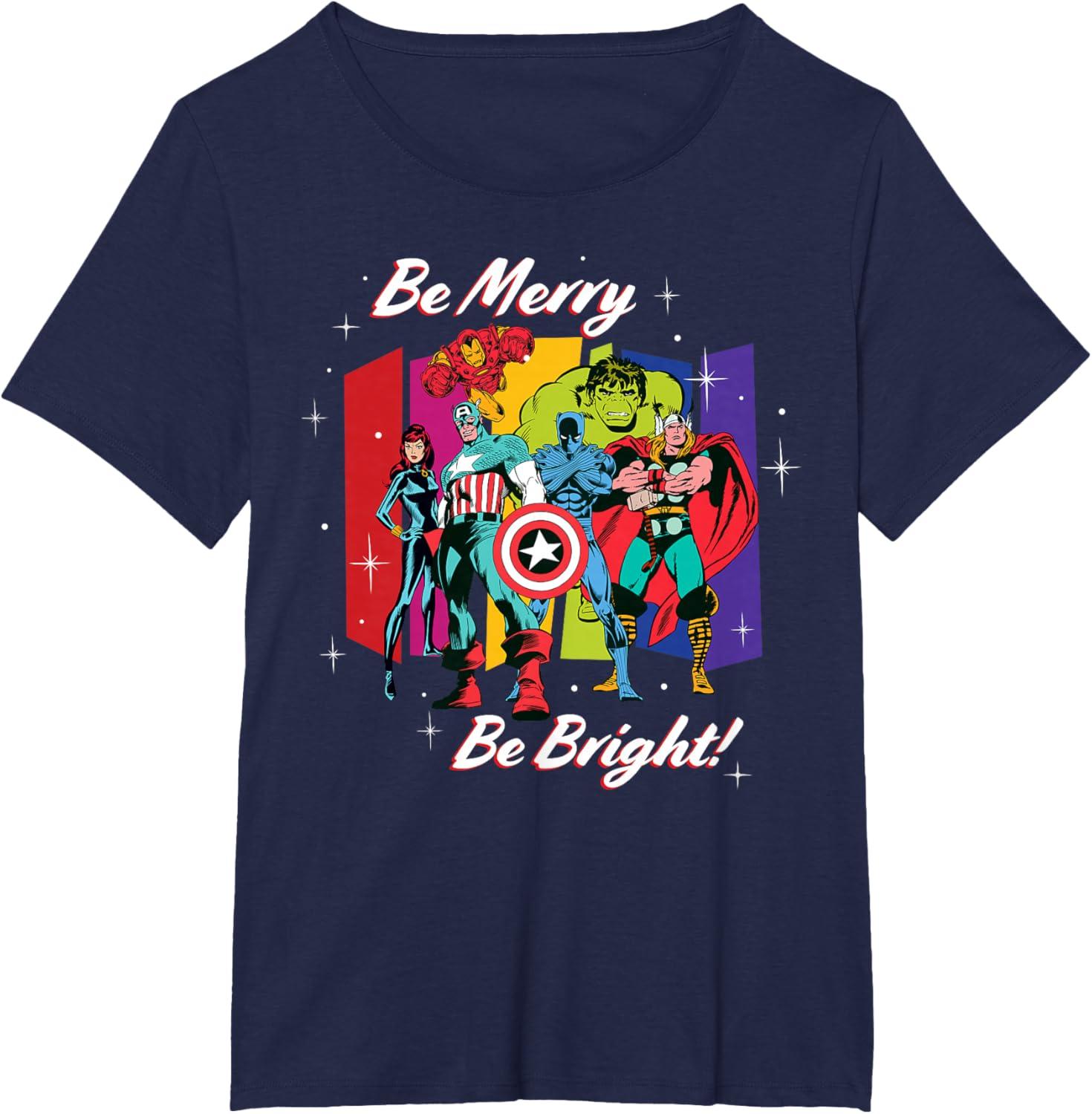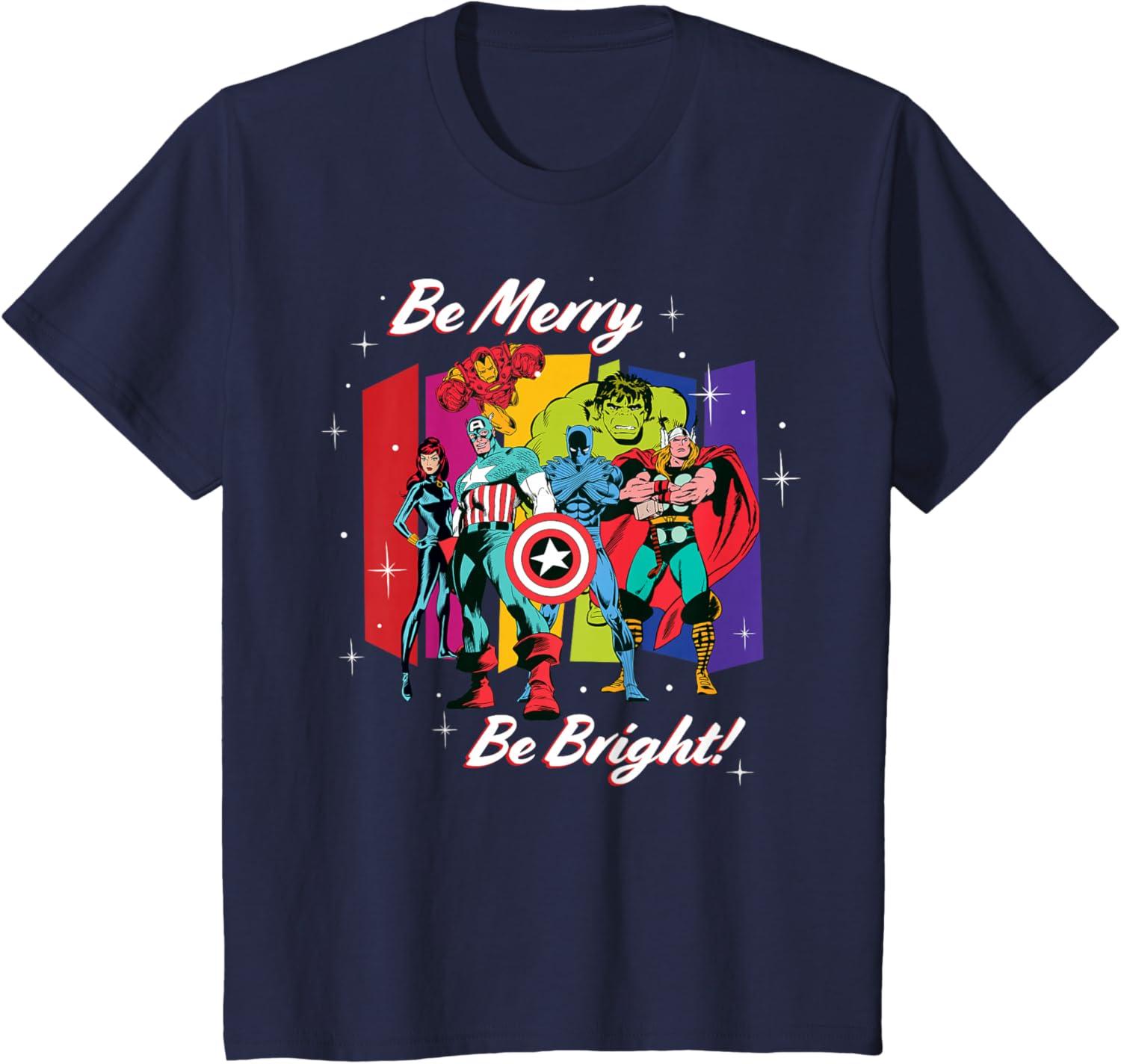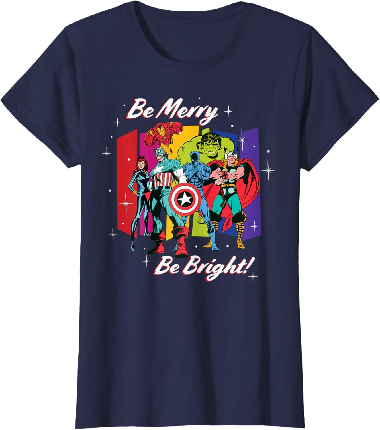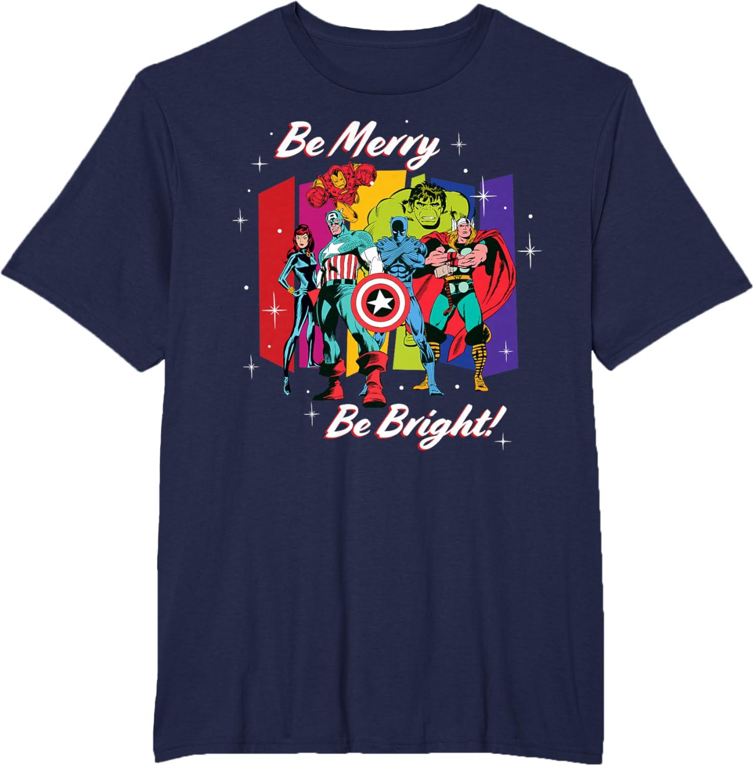 Marvel Avengers Christmas Holiday Retro Be Merry Be Bright! T-Shirt(Navy Blue)